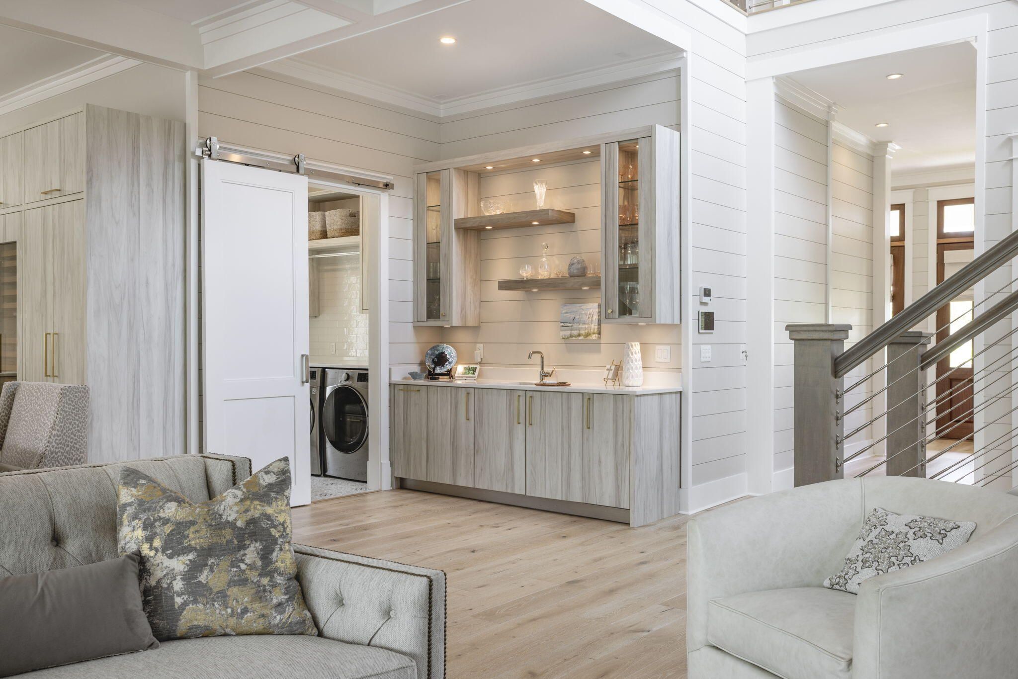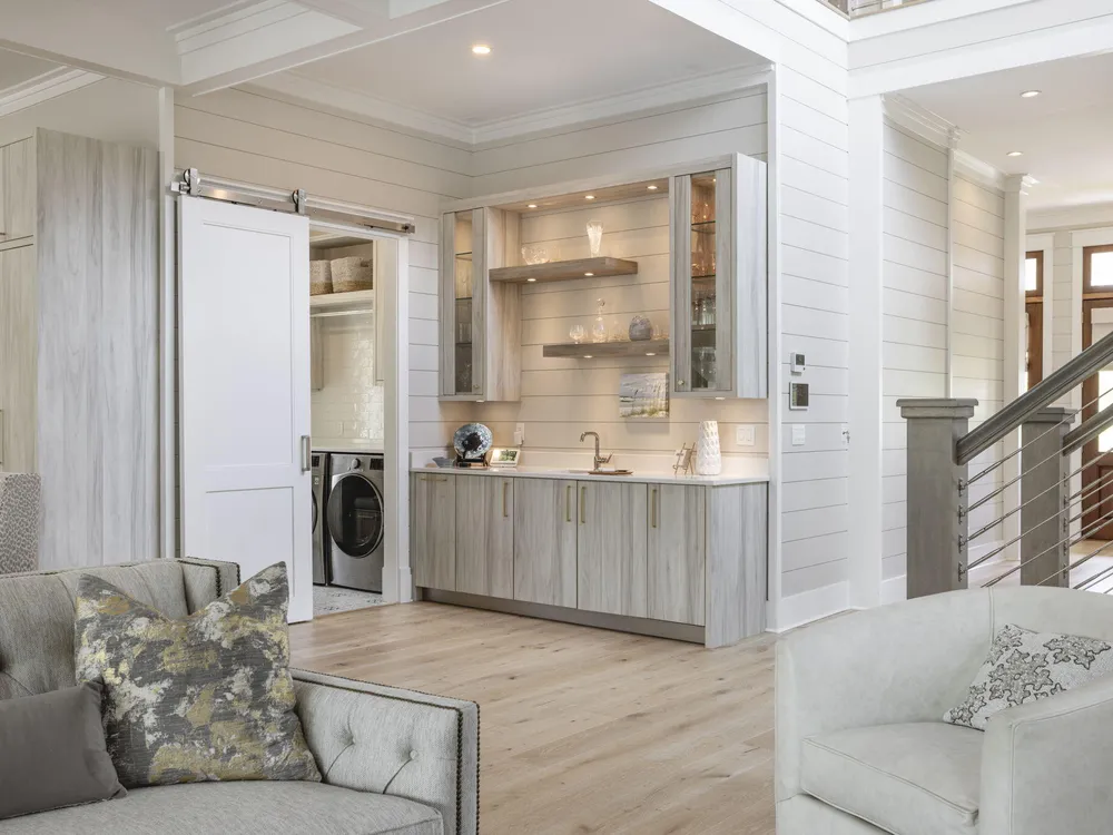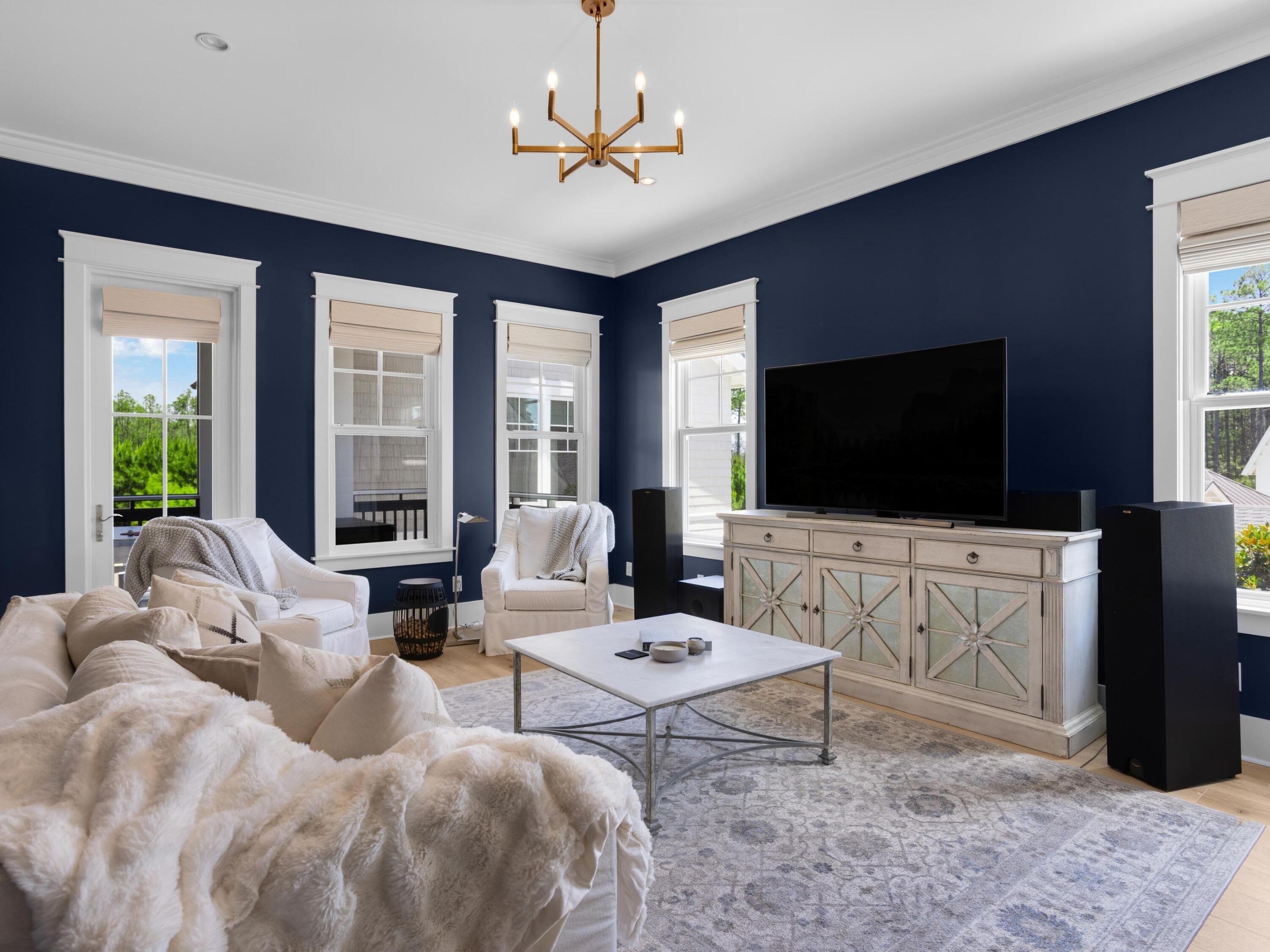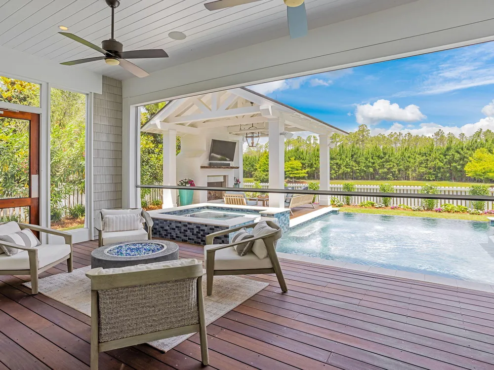 Now offered with an exceptional selection of high-end furnishings for a move-in ready experience of unparalleled quality. Designed by acclaimed architect Chris Stoyles and masterfully built in 2020 by Turner Legacy Homes, 55 Seastone Court is one of the few truly custom estate homes located within the sought-after WaterSound Origins community. Tucked on a quiet side street and fronting a wooded pocket park, this five-bedroom residence blends timeless architectural elegance with the relaxed sophistication of modern coastal living.Step inside to discover more than 4,500 square feet of thoughtfully curated interiors. The sale includes all major furnishings. Linens, kitchen provisions and small decorative items are excluded to allow for personalization.