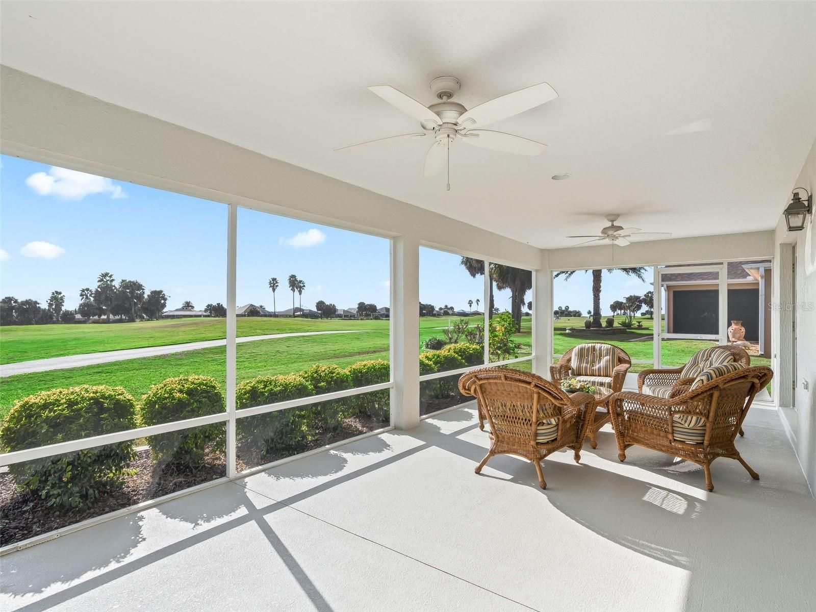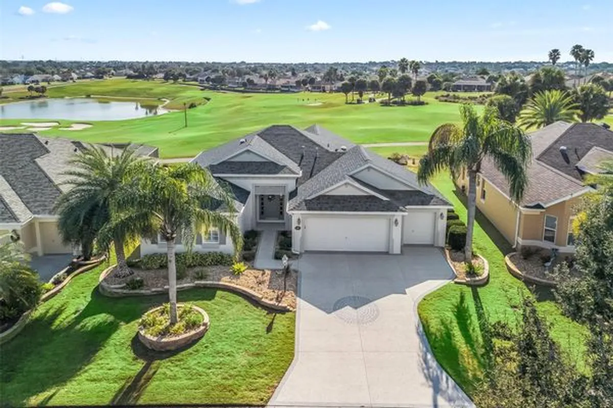 Welcome to this ever popular and stunning "Lantana "model offering an open and airy floor plan designed for comfort, convenience and entertaining. Expansive living spaces flow seamlessly, creating a bright and inviting atmosphere throughout the home. Arriving at the home, situated on the "Amelia" Nine Holes of the Mallory Hill Championship Course, you'll be greeted by Florida Friendly Landscaping and Swaying Palms complimented by Stacked Stone Walls and Flower Bed finished with coordinated stone. The newly sealed driveway leads to the Two Car Garage and the ever-popular Golf Cart Garage. Entering the Front Door complete with Two Sidelights and a Transom Window, you are perfectly positioned to capture breathtaking views of the Golf Course through the French Doors lining the rear of the home leading out to the oversized Lanai. A beautiful eat-in cook’s kitchen, additionally with stunning golf course views, anchors this open, light-filled home, featuring impressive volume ceilings. Stainless Steel Appliances and Granite Counters complete the kitchen. A dedicated open Dining Room offers the perfect place to entertain family and friends. Lovely Tile flows throughout the main living area of the home. The Oversized Primary Suite, with a Tray Ceiling, offers a private relaxing oasis with views of the golf course, a magnificent Ensuite Bath with large Tiled Walk-In shower, His and Hers Vanities and a Make-Up Vanity, too. A generously sized Walk-In closet completes the primary suite. The Offset Guest Area features two generously sized bedrooms and a guest bath perfect for visiting family. The Front Bedroom, with a Tray ceiling, is currently being used as a Den and does have an amply large sized closet. Plantation Shutters adorn the windows of the home. A dedicated interior Laundry Room boasts cabinets coordinating with the Kitchen as well as a Built-In Desk Area for use as a Home Office. Whether hosting guests or unwinding at the end of a busy Villages Day, this magnificent home delivers the perfect blend of elegance and functionality in a truly picturesque setting. This home is more than just MOVE-IN READY— START LIVING YOUR BEST LIFE in this Designer located minutes from Golf, Activities, Music, Sports, Swimming, Medical, Shopping and Dining. Call today to schedule your private showing and discover why residing in The Villages is all about living life to the fullest. Sellers have meticulously maintained and loved this one owner home. Pride of Ownership is abundantly seen everywhere in the home. Buyers will love residing in "the SWEET SPOT" between 466 and 466A. The Roof was replaced in 2023, HVAC replaced in 2025 and Hot Water Heater replaced in 2026. I 'd love to show you all the wonderful features of this Golf Course Home. Call me for your private tour today.