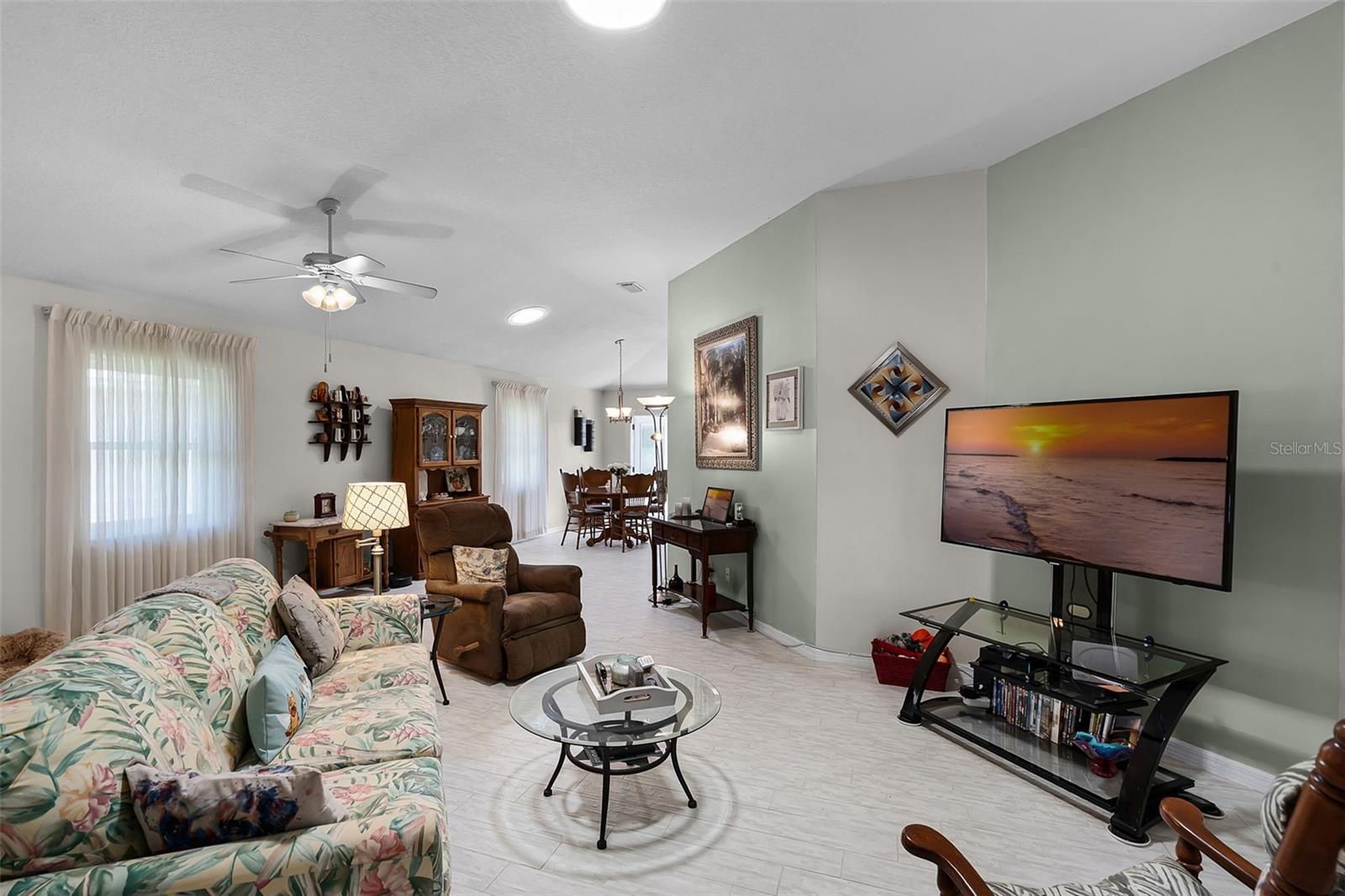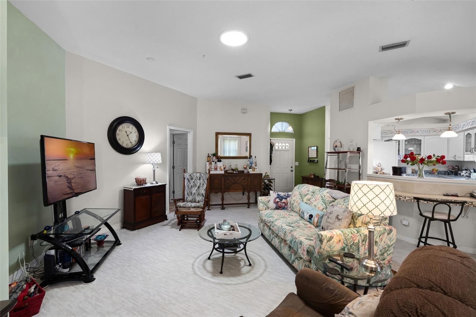 Welcome home to this beautiful *CORNER LOT* on almost a 1/4 Acre, Private View, BLOCK & CONCRETE HOME in beautiful Highland Lakes! This home is surrounded by pretty trees and luxurious landscaping, including a custom rock & waterfall fountain in the back screened-in lanai! The lanai even has custom motorized shades for you to enjoy all year round as you relax in the shade and watch the birds. This gorgeous 3 bedroom/2 bath home is an OPEN CONCEPT with upgrades including high ceilings, ceramic tiles in the living areas & pristine LVP Flooring in the bedrooms - **NO CARPET!** The kitchen has white cabinets with glass inserts & under-cabinet lighting, lots of counterspace, and also an eat-in bar that overlooks the dinette & living area. The living area and dining room overlook your PRIVATE SCREENED-IN Lanai - perfect for entertaining guests, letting your dogs out leisurely, or simply relaxing and enjoying your coffee in the Florida breeze. The Master bedroom boasts a large walk-in closet, and an En-Suite Bath with dual sink vanity and shower. Extra Upgrades include: Water Filtration system throughout the entire home, Solar Panel for heating the water, DOUBLE PANE WINDOWS throughout for Energy Efficiency, Luxury French Doors for the lanai with Built-in Blinds, 2 Solar Tubes in living area for Natural Light, Custom Lighting in Lanai w/ Waterfall Fountain, Oversized Garage with Utility Sink, Custom Shelving in Pantry, and so much more! (Roof - 2010), (AC - 2013), (Electrical Boxes - 2020). Highland Lakes is a Luxury 55+ Community that offers endless amenities including a BEAUTIFUL GOLF DRIVING RANGE, RV/boat storage, indoor and outdoor pools, beautiful Clubhouse with fitness center, craft room, library, catering kitchen, game rooms & meeting rooms, billiard room with pool tables and ping pong, ballroom with stage for tons of outside entertainment & shows, and so much more! Outdoor fun includes walking trails, ponds for catch and release fishing, lighted tennis courts, softball field, shuffleboard, pickleball, golf driving range, Wood-Working Shop, and covered pavilions with grills to enjoy your Florida sunshine picnics! Call today to see this AMAZING home & schedule your private tour!