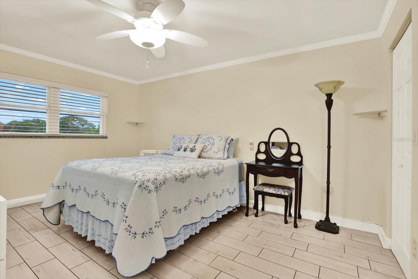 - Ceiling Fan(s), Crown Molding, Thermostat, Walk-In Closet(s), Window Treatments