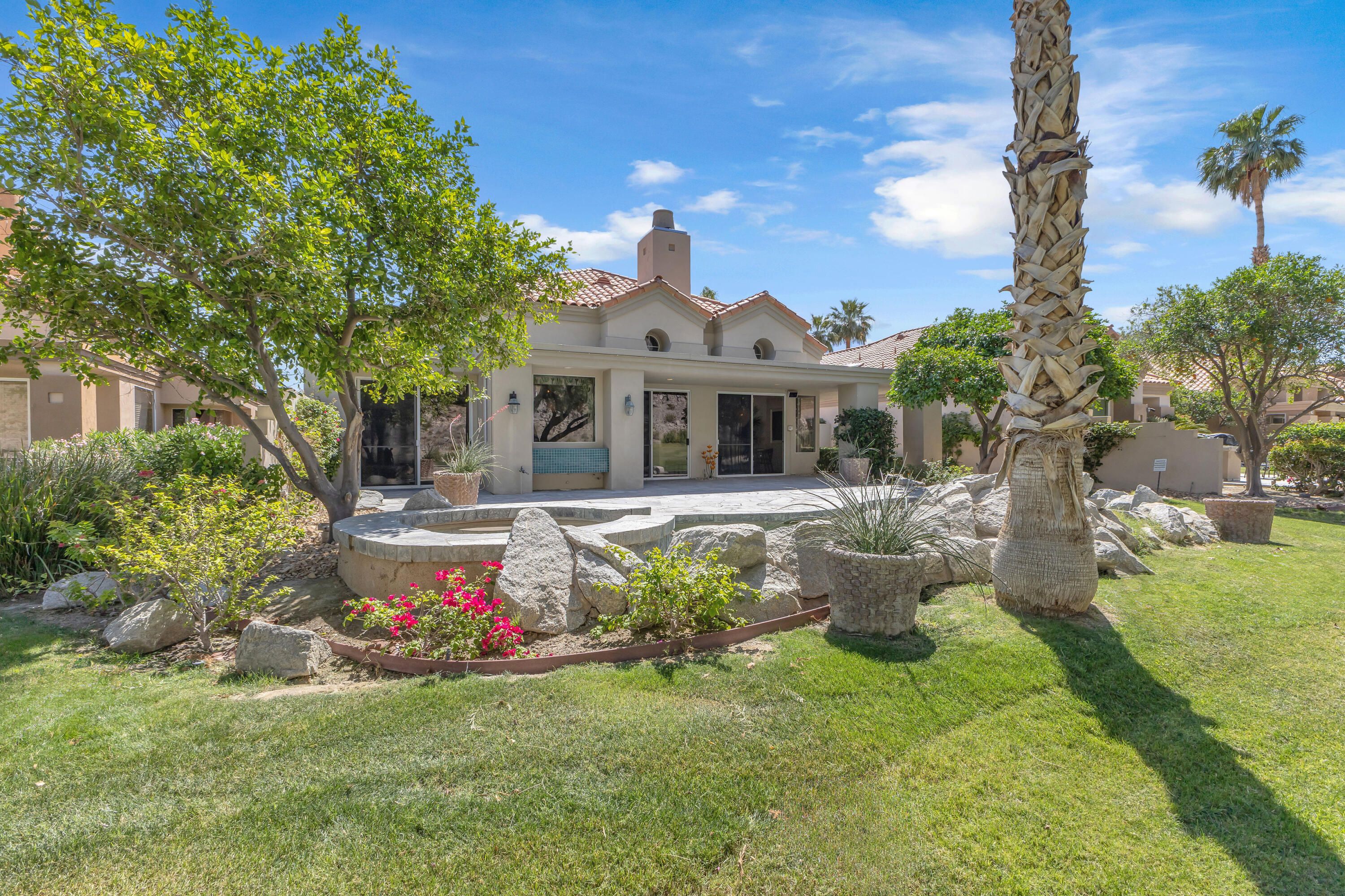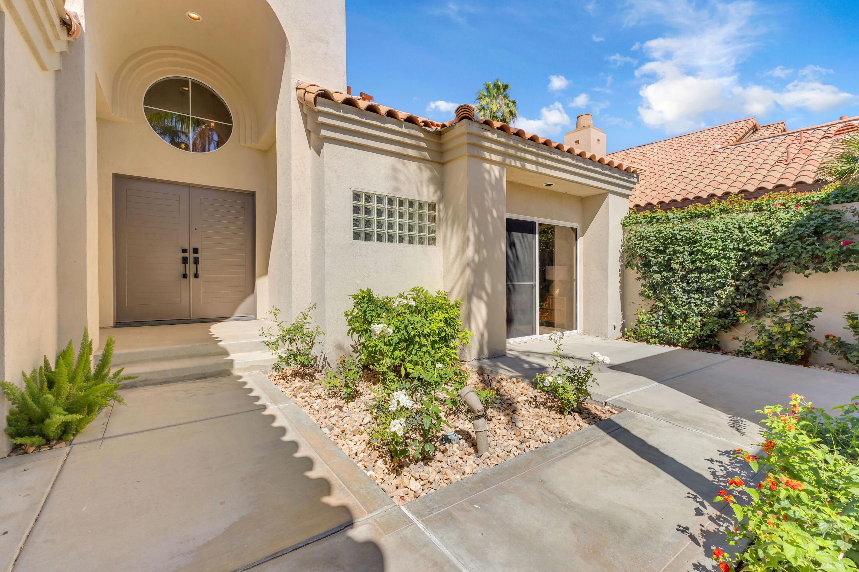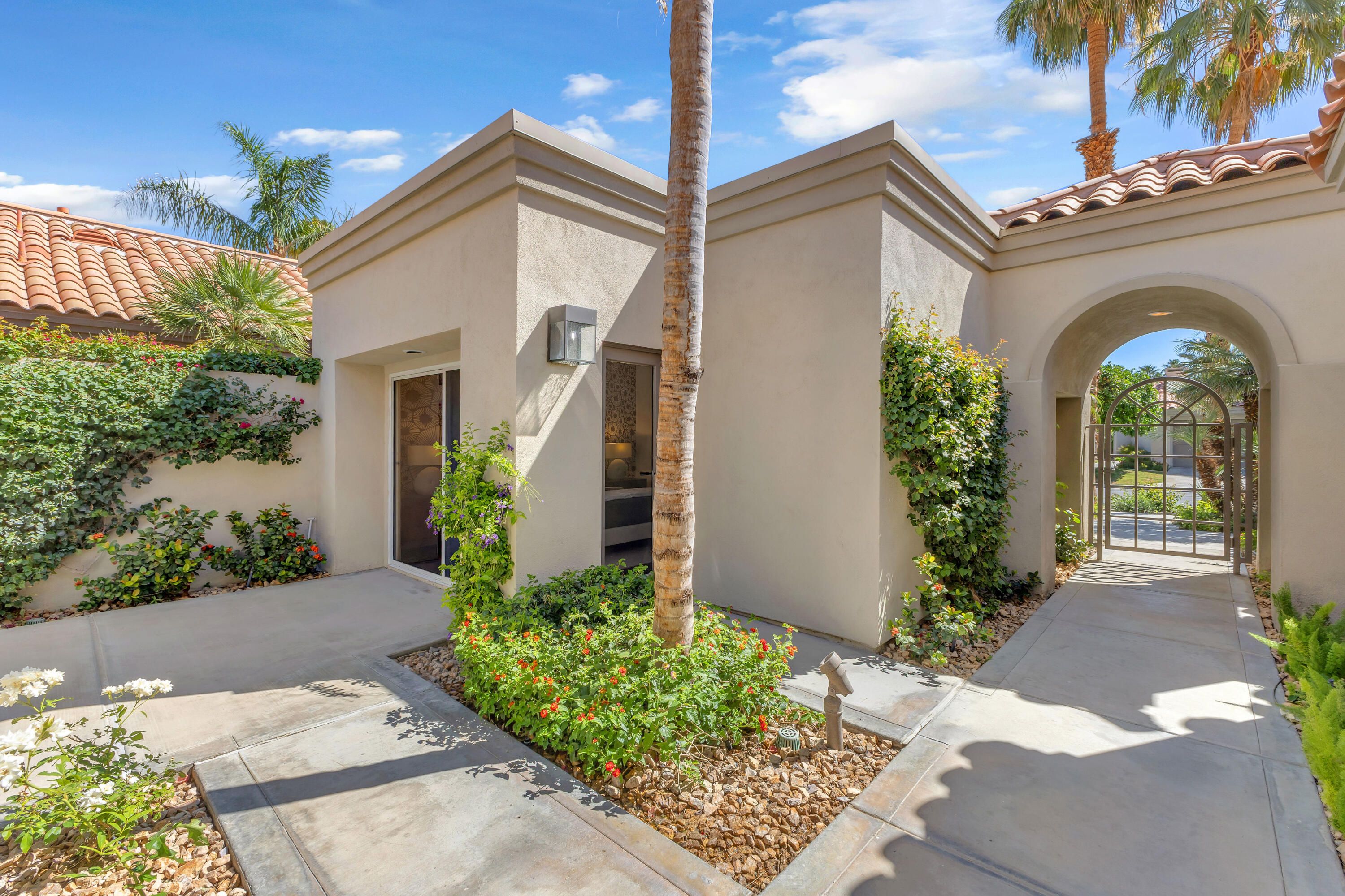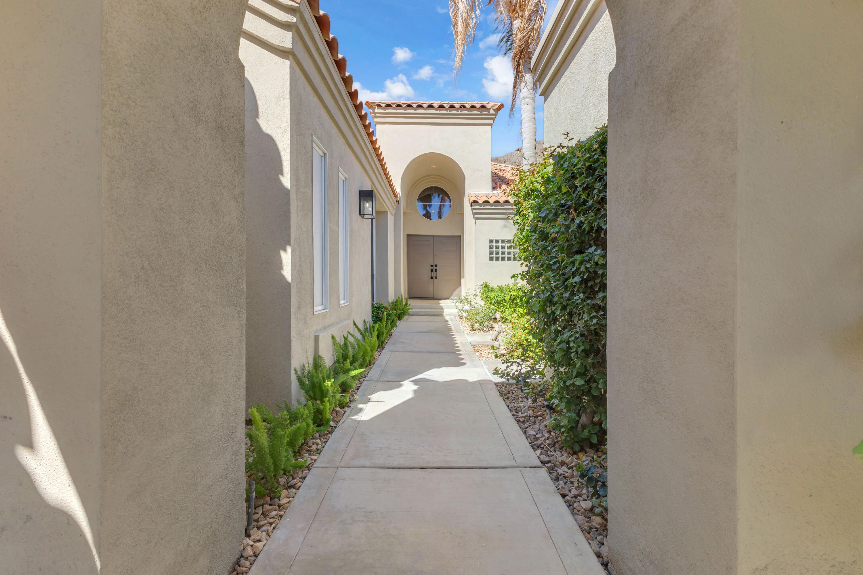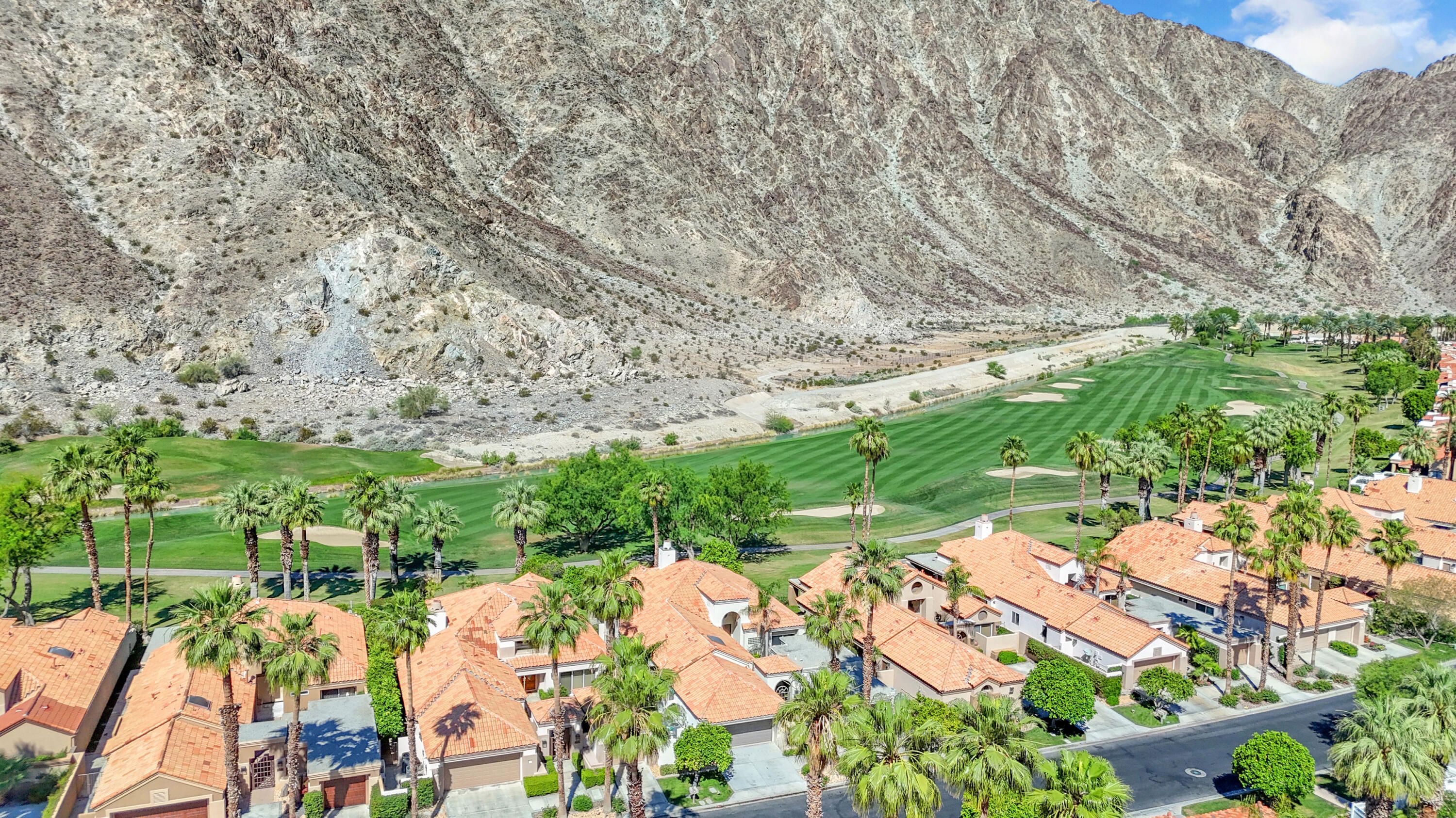 Experience elevated desert living in this exquisitely remodeled luxury residence, where no detail has been overlooked. This home offers 4 bedrooms and 4.5 bathrooms, thoughtfully redesigned with the finest high-end materials and impeccable craftsmanship throughout. New Saltillo flooring flows beautifully through the home, highlighted by custom accents at the step down into the sunken living room--adding warmth, character, and architectural charm. Every bathroom has been exquisitely reimagined with premium fixtures and elegant tile work. The primary suite delivers a spa-inspired retreat, featuring a stunning standalone soaking tub and a separate glass-enclosed shower designed for ultimate relaxation. Professionally curated with designer-selected art and furnishings--all included--this home offers a truly turnkey, move-in-ready experience. The detached casita, equally refined and fully furnished, provides a private and luxurious space for guests or extended stays. Modern upgrades include a new HVAC system for enhanced comfort, as well as a mini-split system in the garage. Both garages feature brand-new epoxy flooring, combining durability with a sleek, polished look. Step outside to your own resort-style oasis, where a sparkling pool overlooks the 15th fairway of the Palmer Private Course within the prestigious PGA West community. Enjoy unobstructed mountain views, lush golf course scenery, and breathtaking sunsets from your own backyard. This is more than a home, it's a seamless blend of luxury, design, and effortless indoor-outdoor living in one of the desert's most sought-after settings. PGA West offers 3 private and 3 public golf courses, tennis, pickleball, 3 clubhouses, restaurants,& 24-hour guard-gated security. HOA dues conveniently cover building structure, exterior paint, roof, ,full landscaping & irrigation, internet, cable, trash, and more making ownership effortless.