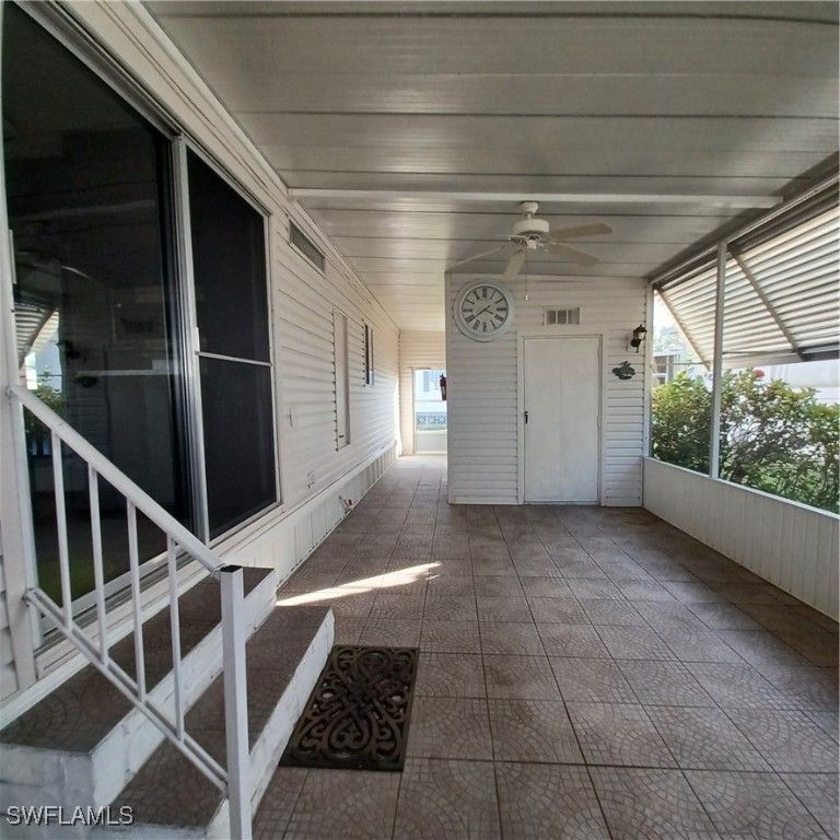 Price reduced. Seller motivated. Welcome in the beautiful, resort-style community of Old Bridge Village with Gulf access! Downtown Ft. Myers is just three miles away, offering a plethora of dining, theater, and shopping experiences. Community Highlights: Secure Living: Enjoy peace of mind with a 24/7 staffed entry gate. Five-Acre Waterfront Park: Features BBQ grills, the new pool with spa, and picnic tables—perfect for gatherings or relaxing days outdoors. Boater’s Paradise: The marina includes boat slip and a ramps, offering easy access to the Gulf of Mexico for boating and fishing enthusiasts. A carport provides covered parking for your vehicles. There is a Sprinkler System on the site. The home boasts modern, energy-efficient windows. Interior Layout: 2 spacious bedrooms 2 bathrooms, including one with a luxurious hydro-massage bath, an open-concept great room, a cozy sun porch, and a screened lanai. Kitchen Features: The elegant modern kitchen features Samsung appliances stainless steel, ideal for cooking and entertaining. Kitchen countertop and backsplash made of granite. The kitchen is equipped with convenient drawers. A Hevea bar counter with elegant lighting is perfect for your fiery parties. The home features LED lighting with a nightlight function, providing a soft amber glow for added ambiance (activated by your wall switch.) This charming Old Bridge Village community an the house in a modern style offer a unique lifestyle that will surely captivate you.