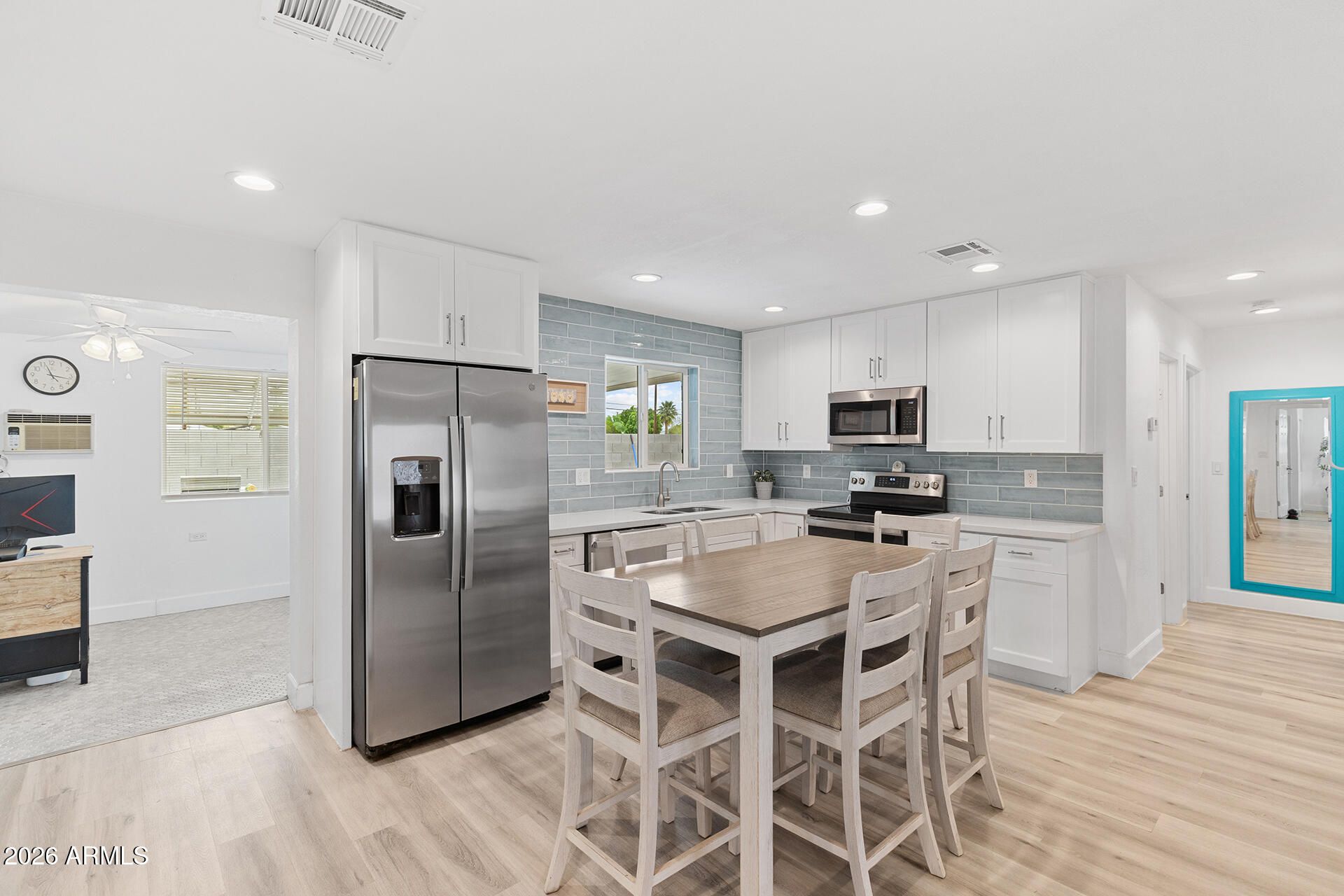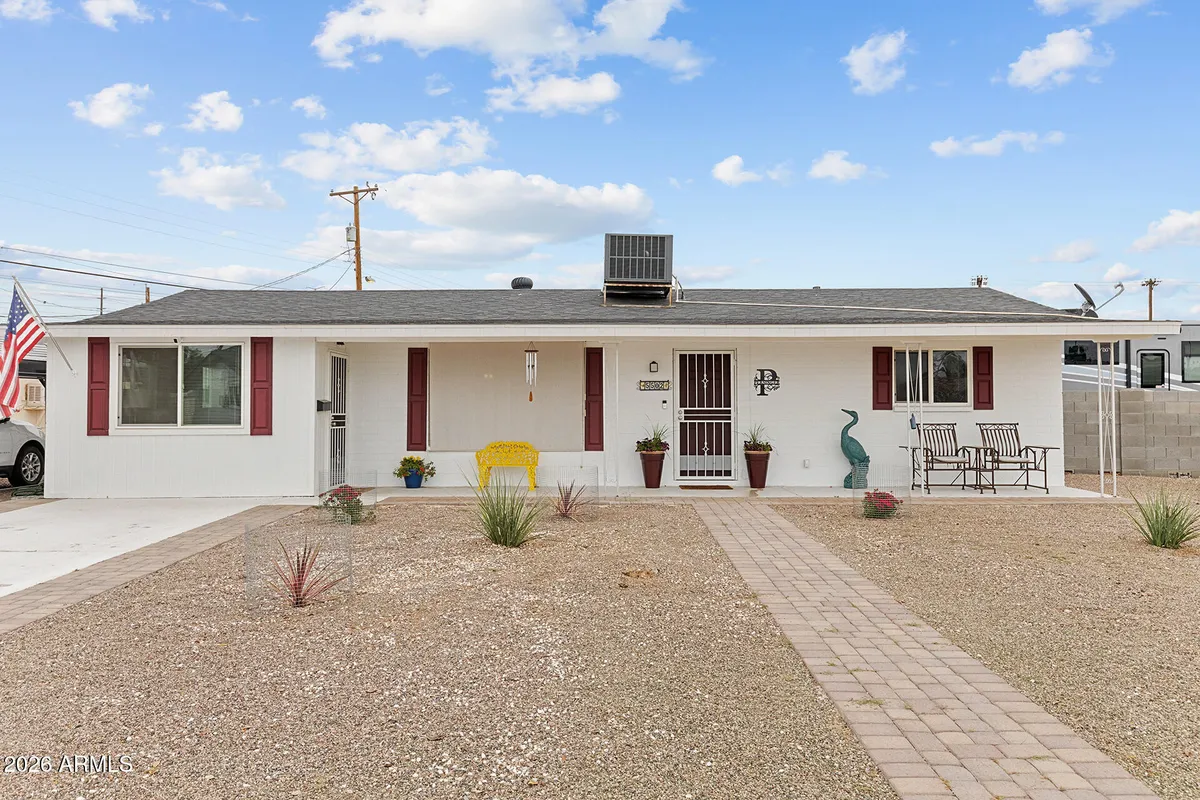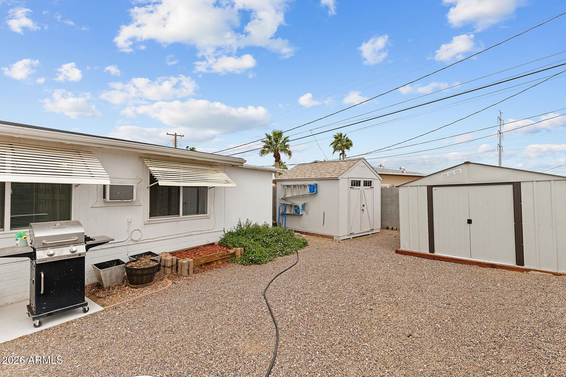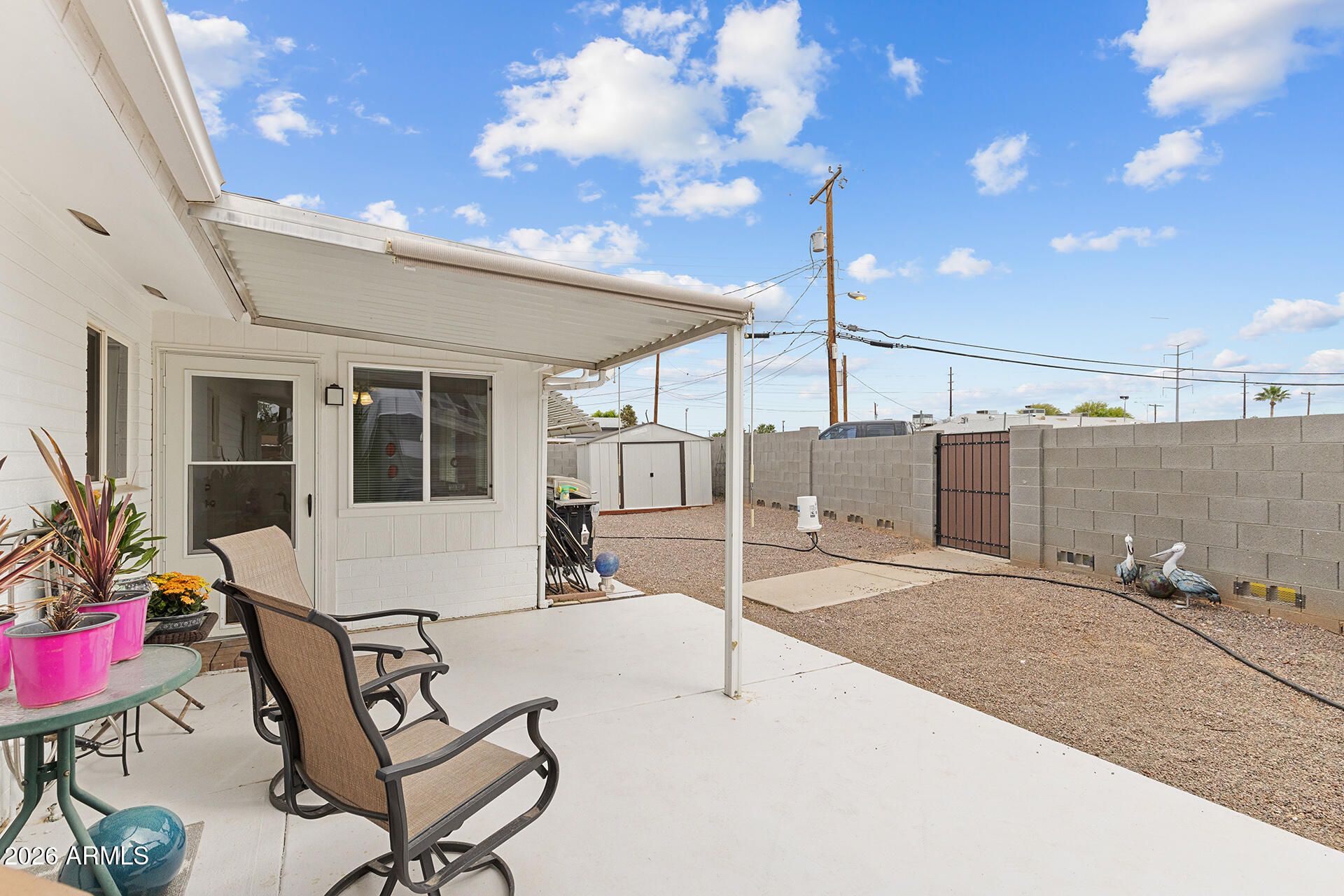 Corner Lot & Move-in Ready in Dreamland Villa! Completely remodeled in 2022, this 3-bedroom home offers a spacious living & dining area that flows into the updated kitchen with stainless steel appliances, tile backsplash, extra cabinetry & a large pantry. Just off the kitchen, the oversized Arizona room with new flooring provides flexible space for a family room, office, hobby room or whatever best fits your needs. All three bedrooms feature new closets, plus updated windows throughout. The backyard is a great size with a blank slate for customization, plus a newly added utility shed & separate garden shed, an RV gate offering RV access & parking, while the front yard features a newly added 2-car carport. Situated on a corner lot with close proximity to Dreamland Villa's voluntary HOA amenities, including pools, spa, pickleball courts, bocce ball, workout facility & community hall. Conveniently located with easy access to the US 60, plus nearby shopping, dining & recreation.