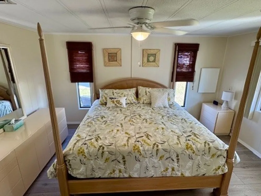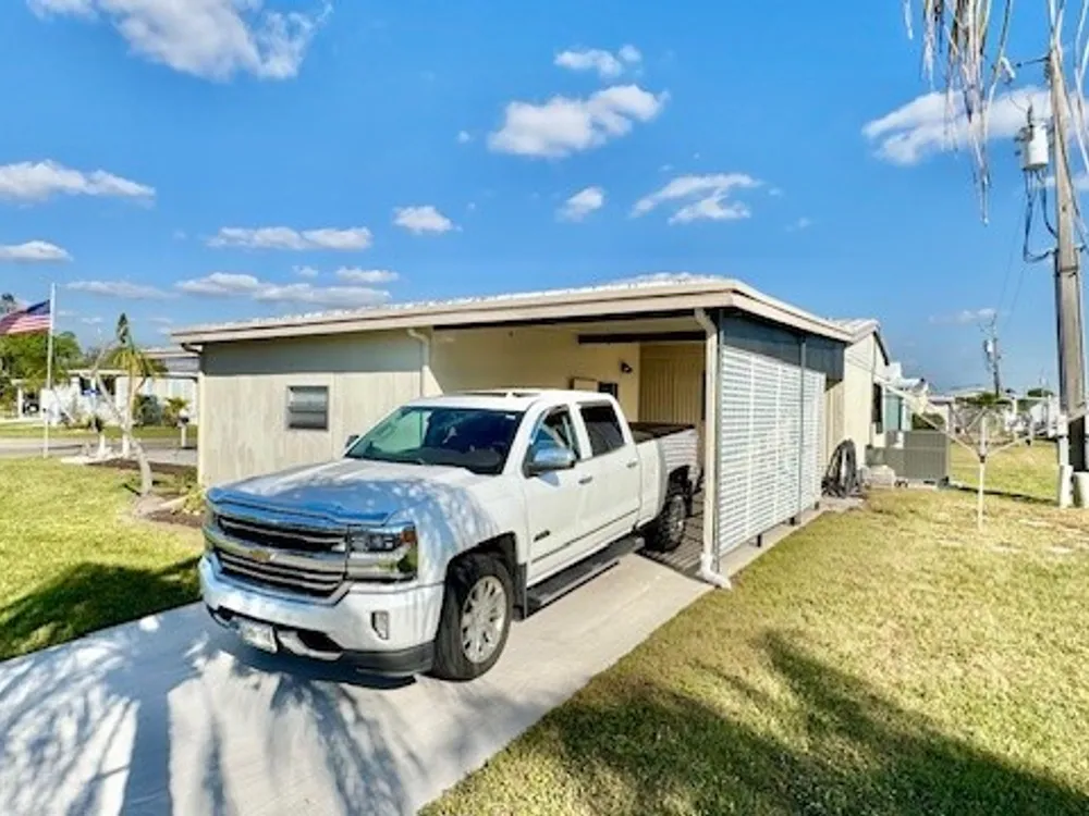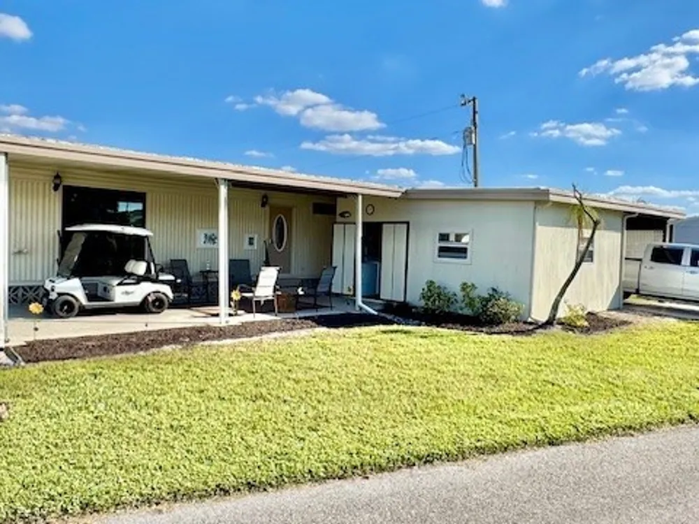 TURNKEY BRING YOUR SUITCASE EVERYTHING ENCLUDED! THIS PROPERTY IS THE DEFINITION OF METICULOUS! GOLF CART ENCLUDED! . Old Bridge Village is a Co-op and this home INCLUDES A SHARE. 1360 sq ft with a New Air Conditioner and Electronic Programmable Thermostat system. Large 16x20 Shed. The Open Concept feeling this home has with Living Room, Dining Room and Family Room or Eat in Kitchen makes for a great space for entertaining family and friends. Two master suites with walk in closets, Corner Lot with covered parking for multiple cars as well as a boat make this a unique property. The 10x35 Lanai with front exterior porch and rear patio gives you all types of options to enjoy the Florida weather. New Moisture Barrier, Newer Roof Over and New Laminate Flooring have this property ready for the next owner. This property is located in the desirable OLD BRIDGE VILLAGE CO-OP (OBV) WITH COMMUNITY GULF ACCESS LOCATED IN NORTH FORT MYERS that boasts its own 81 slip Marina, and BOAT & KAYAK launch. OBV is a friendly, 55+ resident owned community with a 24-7 GUARDED GATE for your SAFETY, and a five-acre park right on the Caloosahatchee River with lots of amenities, activities all year, clubs and entertainment. There is a brand new large pool, hot tub, fitness center, recreation center, bocce ball, pickleball, shuffleboard, tennis, basketball, putting green, horseshoe pits, community clubhouse, kayak and boat launch and an 81 slip marina. Drive your golf cart around the community, to and from your activities or to Palm Point where you can fish, have a picnic, watch the boats or just enjoy the sunset. This community is a hidden gem with just minutes by boat or car to downtown Ft. Myers and right between 2 airports with approximately 30 minutes to both Southwest Florida International Airport and Punta Gorda Airport.