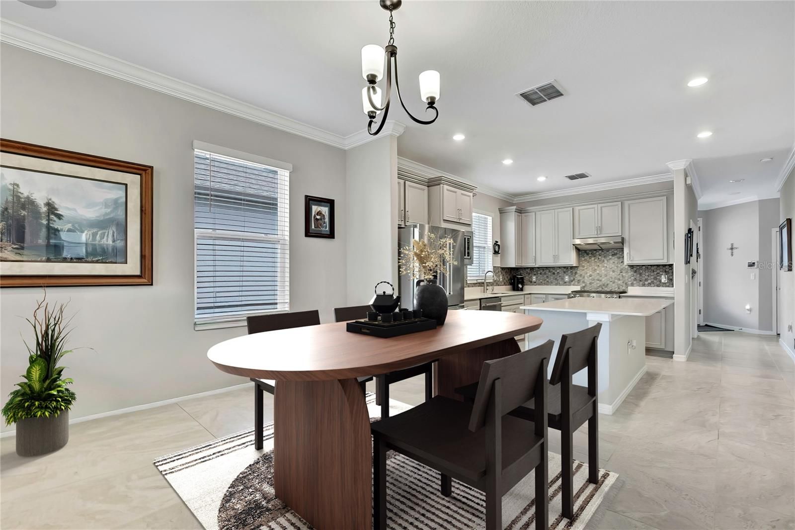 DOWN PAYMENT ASSISTANCE AVAILABLE FOR DOWN PAYMENT AND CLOSING COSTS- NO MONEY OUT OF POCKET. NO INCOME LIMITS. Ask for details. Looking for true peace of mind in a resort-style 55+ community? This home is packed with upgrades designed for comfort, safety, and confidence year-round. Enjoy a GENERATOR-READY SETUP for added security during POWER OUTAGES, along with CUSTOM EASY-CLOSE HURRICANE SHUTTERS ON ALL WINDOWS for STORM PROTECTION. Thoughtful details include ROUNDED INTERIOR CORNERS for added safety, a Kinetico WATER SOFTENER AND CONDITIONER, tankless water heater and a REVERSE OSMOSIS DRINKING WATER SYSTEM. Additional enhancements include an EPOXY-COATED GARAGE FLOOR, INSULATED GARAGE, SOLAR-POWERED ATTIC EXHAUST FAN, and an impressive 32 INCHES OF INSULATION for energy efficiency. Step out to the lanai and take in peaceful LAKE VIEWS, complete with an INDUSTRIAL-GRADE POLYURETHANE LANAI FLOOR and MOTORIZED SCREEN SHADES for comfort and privacy. Inside, you’ll love the CROWN MOLDING throughout, and the spacious primary suite offers serene WATER VIEWS, a tray ceiling with crown molding, a spa-inspired bath with dual sinks, and a large walk-in closet. The chef-inspired kitchen is equally impressive, featuring KITCHENAID STAINLESS STEEL APPLIANCES, a NATURAL GAS RANGE, and a large center island with beautiful QUARTZ countertops—perfect for entertaining or everyday living. Stylish finishes continue with crown-molded cabinetry, sleek hardware, a designer mosaic tile backsplash, and bright recessed lighting. With its open-concept layout and generous gathering spaces, this home truly has it all—perfect for relaxing, entertaining, and enjoying the lifestyle you deserve. Del Webb Bexley offers an unmatched lifestyle with a spectacular clubhouse featuring a bistro & sports bar, fitness center, movement studio, arts & crafts rooms, and a demonstration kitchen. Outdoor amenities include a heated resort-style pool with cabanas, resistance pool, spa, tennis and pickleball courts, bocce ball, dog park, amphitheater, and community garden. Don’t miss this incredible opportunity—visit our 3D TOUR today!