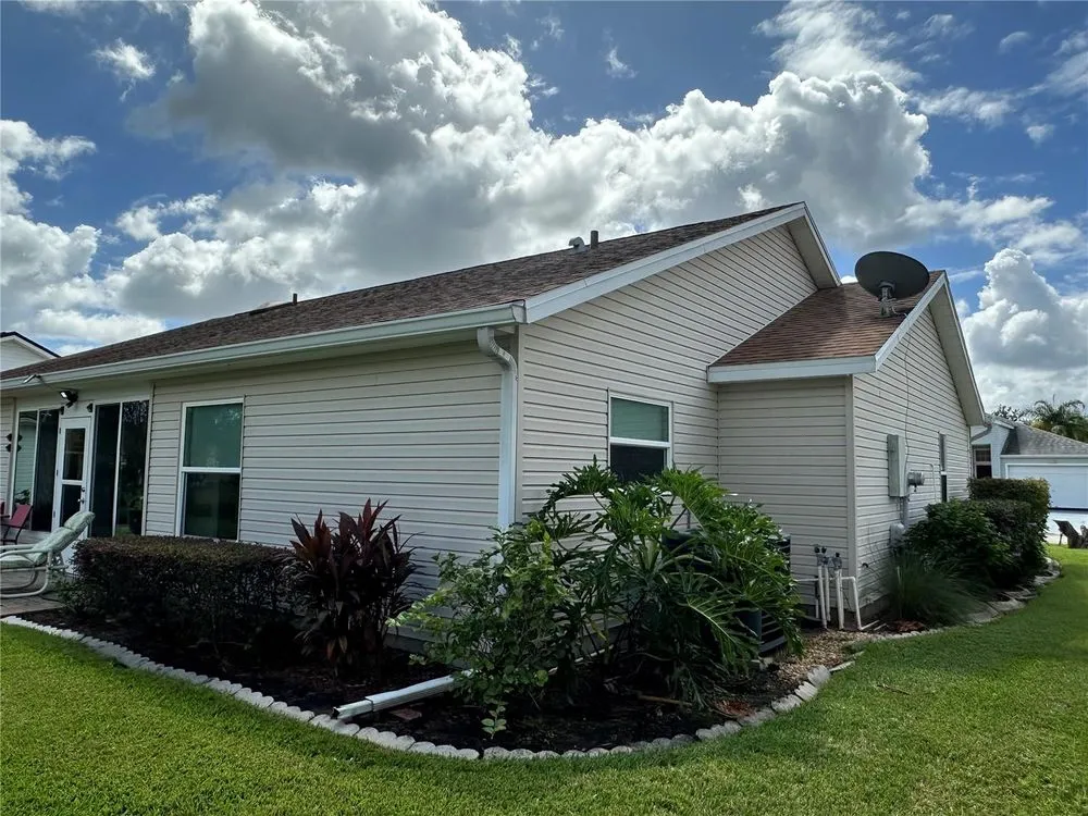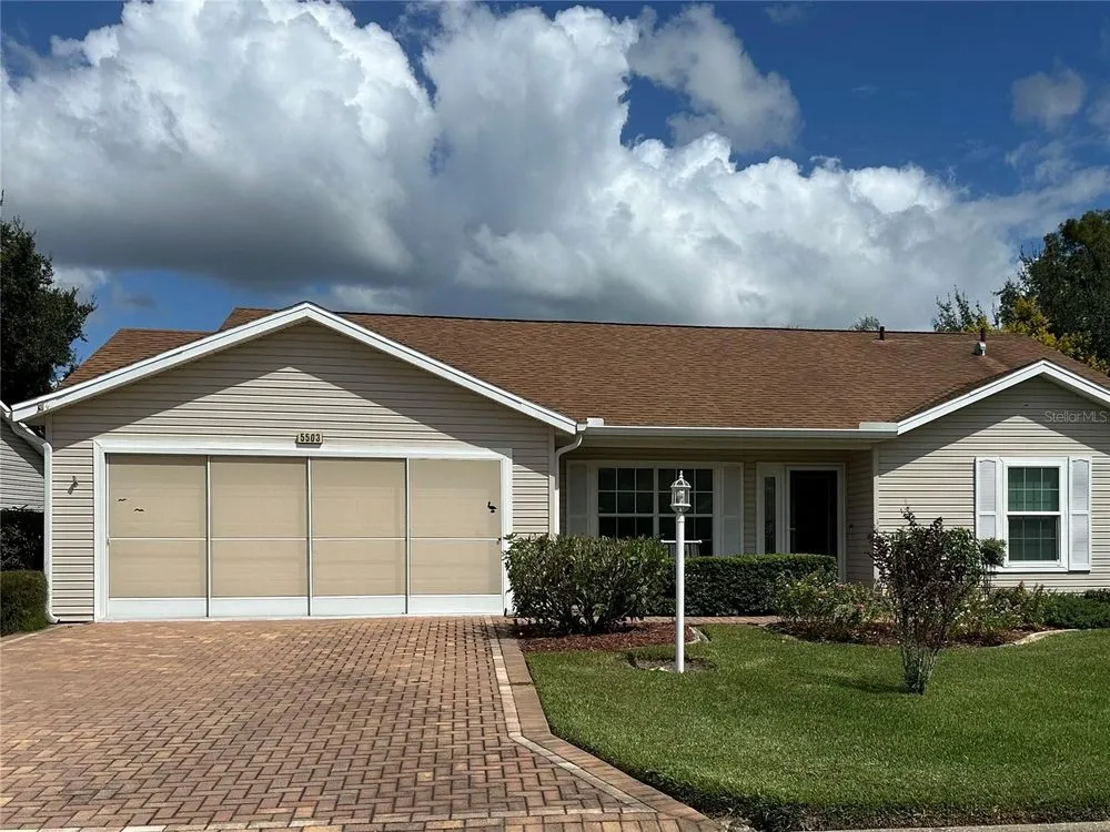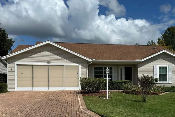 This meticulously maintained 2BR,2b Turnkey home is ready for you to move right in. Great curb appeal with a driveway and walk leads you to the charming front porch. You enter through a beautiful glass front door with matching side lite. The high ceilings and laminate flooring throughout the home provide a classic look. The combined living room/dining room combination give you a large open area that will allow you to create a space to meat your individual style and needs. Currently they are combined to provide a large living room but can be divided to add a more formal dining room. The large kitchen has lots of cabinet and counter space. The eating area opens to the enclosed lanai. The lanai also has doors to the living/dining room and to the primary bedroom. The large primary bedroom has a walk in closet an updated ensuite bath with a walk-in shower and skylite. The second bedroom and guest bath will delight your guests. The private backyard has a great view of nature and NO NEIGHBORS BEHIND YOU. This home is perfect whether you plan to be a full time or part time resident. Schedule your showing soon so you don't miss it. Pack your bags move right in so you can begin living the life you have dreamed of in the Florida sunshine. The Plantation at Leesburg is a a gated 55+ community that offers a great lifestyle and is an active community. It boasts 3 activity center, 3 pools with spas, 2 gyms, tennis and pickleballs courts, a driving range and 2 18 hole golf courses, along with many other amenities, clubs, etc. New AC 2021