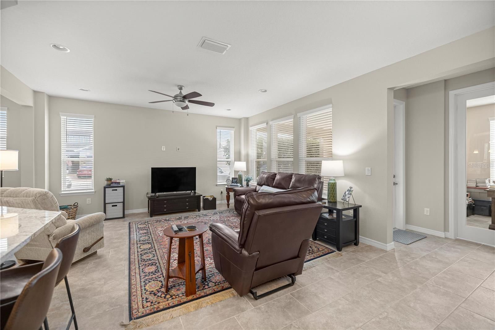 Welcome to resort-style living at its finest in the highly sought-after Ocala Preserve community. This elegant Shea-built Monaco model offers 2 bedrooms, 2 bathrooms, and a private study—perfect for a home office, sitting room, or flex space. Situated on a desirable corner lot, this home provides exceptional privacy and peaceful outdoor living from the inviting back patio. Step inside to soaring ceilings, abundant natural light, and upgrades throughout. The gourmet kitchen features granite countertops, stainless steel appliances, an eat-in dining area, and plenty of storage. The open, split-bedroom floorplan creates effortless flow and comfort whether entertaining or enjoying quiet evenings at home. The primary suite is a true private retreat, offering a spacious walk-in closet and a spa-like en-suite bathroom with a large walk-in shower and refined finishes. The guest bedroom is thoughtfully designed for comfort and privacy, with the study providing additional versatility. An interior laundry room and ample storage add everyday convenience. Outside, enjoy a serene and private back patio perfect for morning coffee, evening wine, or simply unwinding in nature. Living in Ocala Preserve means experiencing a lifestyle beyond compare. Community amenities include a Tom Lehman–designed golf course, resort-style pool, state-of-the-art fitness center, tennis and pickleball courts, scenic walking trails, a dog park, and a full calendar of social clubs and activities. This is a lifestyle—not just a community. Perfectly located near shopping, restaurants, downtown Ocala, medical facilities, WEC, and HITS, with no CDD fees, this home offers the very best of Florida living.