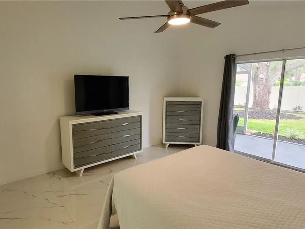 Welcome to this meticulously renovated 3 bedroom, 2.5 bath home located in a Palm-Aire subdivision. Beautifully updated throughout, this home combines modern upgrades with timeless style. This thoughtfully designed split floor plan offers both privacy and functionality. Upon entry you're greeted by an open-concept layout that seamlessly connects the kitchen, living and dining areas for everyday living and entertaining. The kitchen features soft close cabinets, quartz countertops, pantry and smart appliances. The kitchen effortlessly combines the dining & living area with sliders to the screened lanai. The primary bedroom offers superior privacy - features a walk-in closet, ancillary closet, sliders to the screened lanai & en-suite bath. The ample sized guest bedrooms are located on the opposite side of the home featuring an exclusive jack and jill style bathroom. Enjoy many upgrades which include high-end vanities, remote controlled/dimmable ceiling fans, updated electrical throughout, dual ionized HVAC system, laundry room, roof (2024), irrigation system and vinyl privacy fence. The south facing backyard offers beautiful sunrises and sunsets over a serene private setting. Located in the highly sought-after Rosewood at the Gardens subdivision which includes a private community pool exclusive to only 39 homeowners, a restroom facility and outdoor shower. Minutes from UTC, SRQ airport and so much more. Priced for quick sale and under recent appraised value !!!