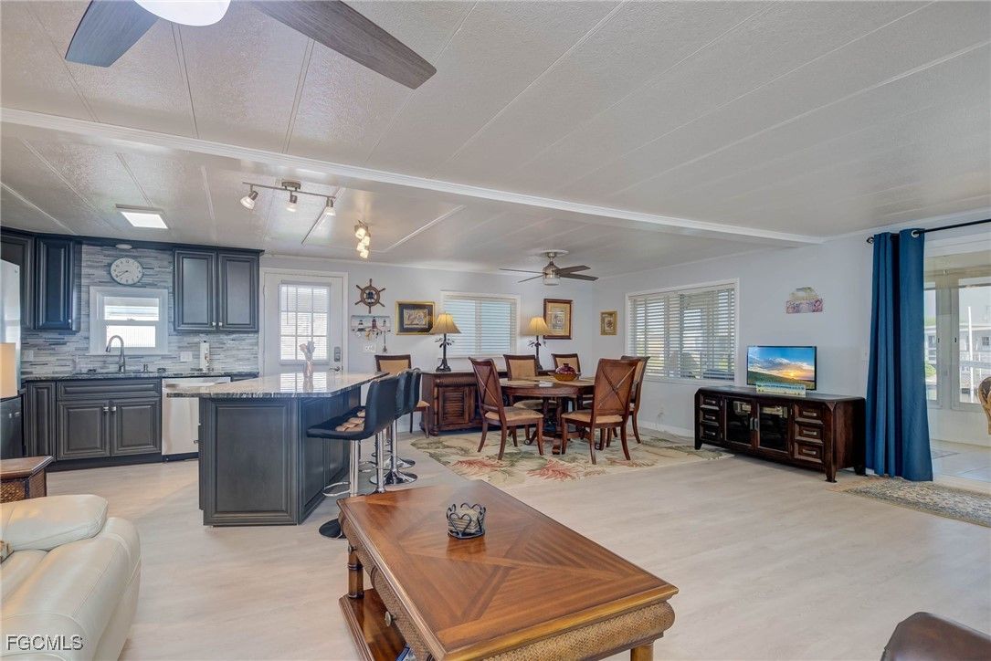 Experience the best of Old Bridge Village a 55+ gated waterfront community where boating, comfort, and peace of mind converge. This fully remodeled in 2023 gem offers direct access to the Caloosahatchee River, making it a dream for avid boaters. Your private boat slip features durable Trex decking captain’s walk, and a 10,000 lb boat lift perfect for launching your next trip with ease. Designed for both privacy and comfort, this home features two master suites, ideal for hosting guests in style! Come inside and enjoy high-end finishes including soft-close cabinetry, granite countertops, LG stainless steel appliances, and luxury plank flooring throughout. Every detail has been upgraded for modern coastal living—new bathroom vanities and toilets, new A/C, water heater, new vapor barrier, and vinyl siding (2021) ensure both style and structural confidence. Newer Pella double-pane thermal windows, a newer slider, and Bahama shutters provide energy efficiency and storm protection, while an assumable flood policy and new portable A/C unit offer added security and savings. This home is being sold turnkey, so you can start enjoying the waterfront lifestyle on day one. Old Bridge Village amenities include a stylish pool, fitness center, clubhouse, 81-slip marina, kayak/boat launch, bocce ball, pickleball, tennis, shuffleboard and even a putting green—all designed for the ultimate Florida lifestyle. Live your best life on the water—no worries, no waiting, just pure Southwest Florida paradise.