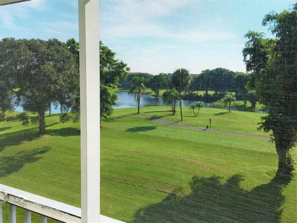 LOOK NO FURTHER! CAN BE RENTED RIGHT AWAY. THIS VERY CLEAN TOP FLOOR 2 BEDROOM 1.5 BATH CONDO FEATURES BEAUTIFUL LAKE AND GOLF COURSE VIEWS, UPDATED KITCHEN WITH STAINLESS STEEL APPLIANCES, TILE AND LAMINATE FLOORING, SCREENED-IN BALCONY WITH HURRICANE SHUTTERS, EXTRA BIG WALK-IN CLOSET AND LOTS OF STORAGE. LAUNDRY IS JUST DOWN THE HALL. COMMUNITY INCLUDES MILLION DOLLAR CLUBHOUSE, 2 FITNESS CENTERS, POOLS, FREE BUS TRANSPORTATION TO SHOPPING CENTERS, 24 HOUR SECURITY, MOVIE THEATER, SHOWS, GOLF, CAFE, PHARMACY, SOCIAL ACTIVITY CLUB. UNIT IS TENANT OCCUPIED TILL AUGUST 31ST, 2026. CALL NOW FOR MORE INFORMATION.