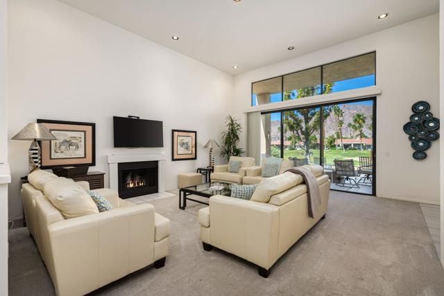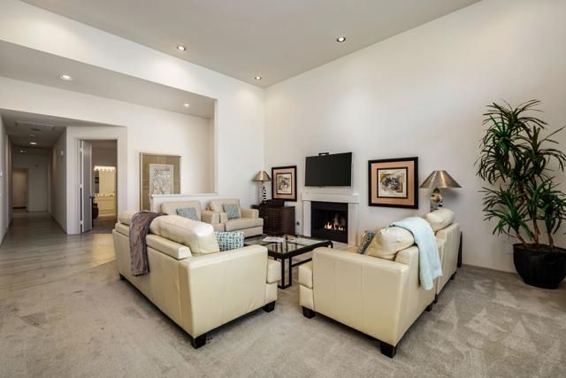 Incredible West facing Santa Rosa mountain views from this Champion 9 Plan located in PGA West! The dining room has been converted to a 4th bedroom and has an attached bathroom with private shower! This home overlooks the stunning views of the 8th green of the Private Palmer Course! Entryway leads to the living room with fireplace, sliding doors that bring in the views, and offers a great entertaining space! The kitchen has ample cabinetry with quartz counters, stainless appliances, walk in pantry, all looking over the dining area! The large primary bedroom offers its own private patio, bathroom with walk in shower, soaking tub, water closet, oversized walk in closet, and double vanity! All 3 of the guest bedroom have en-suites for your family & friends to enjoy! There is a separate laundry room that leads to the attached garage. You will have access to several community pool & spas located throughout PGA West! This home is offered furnished!