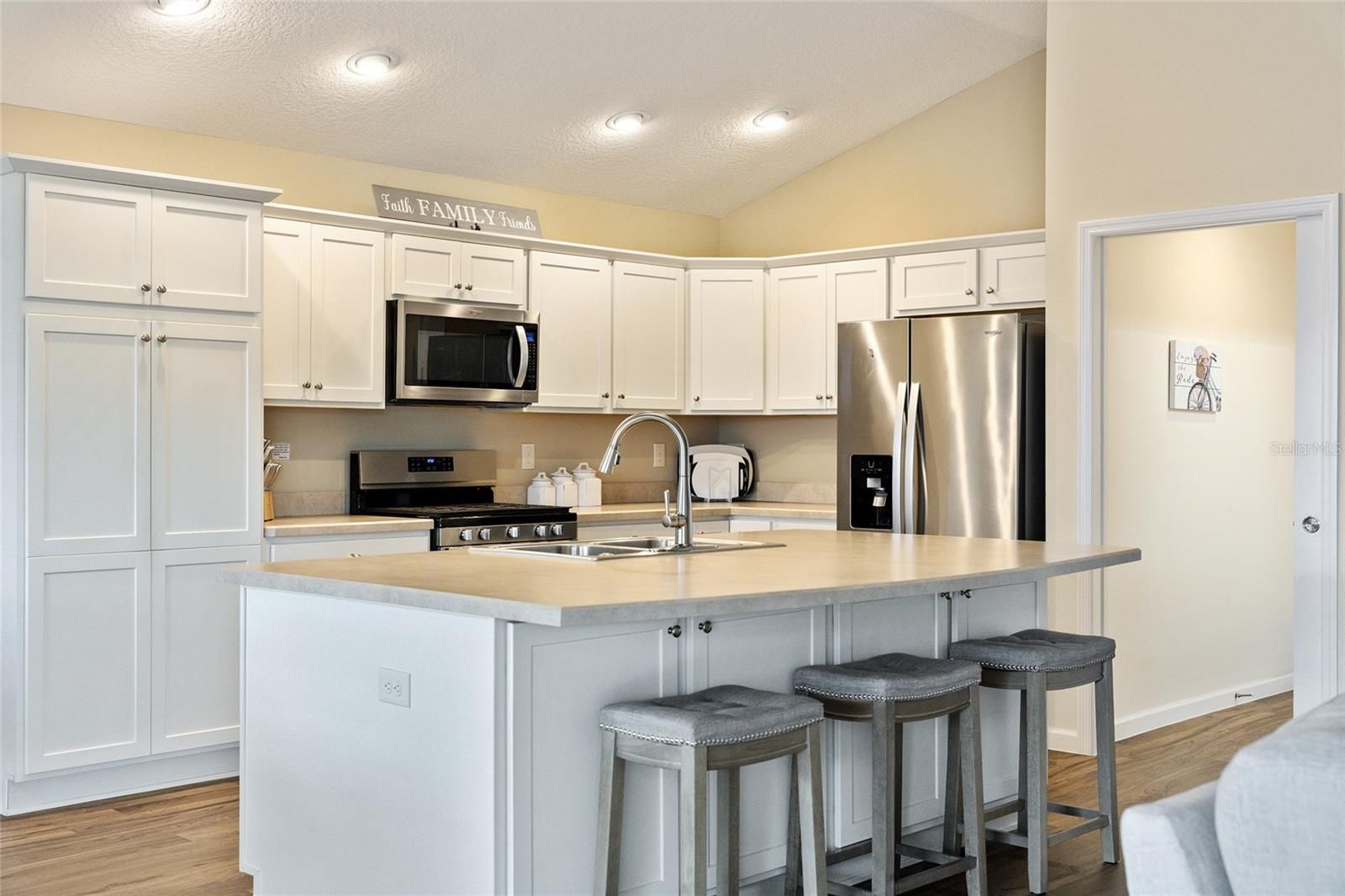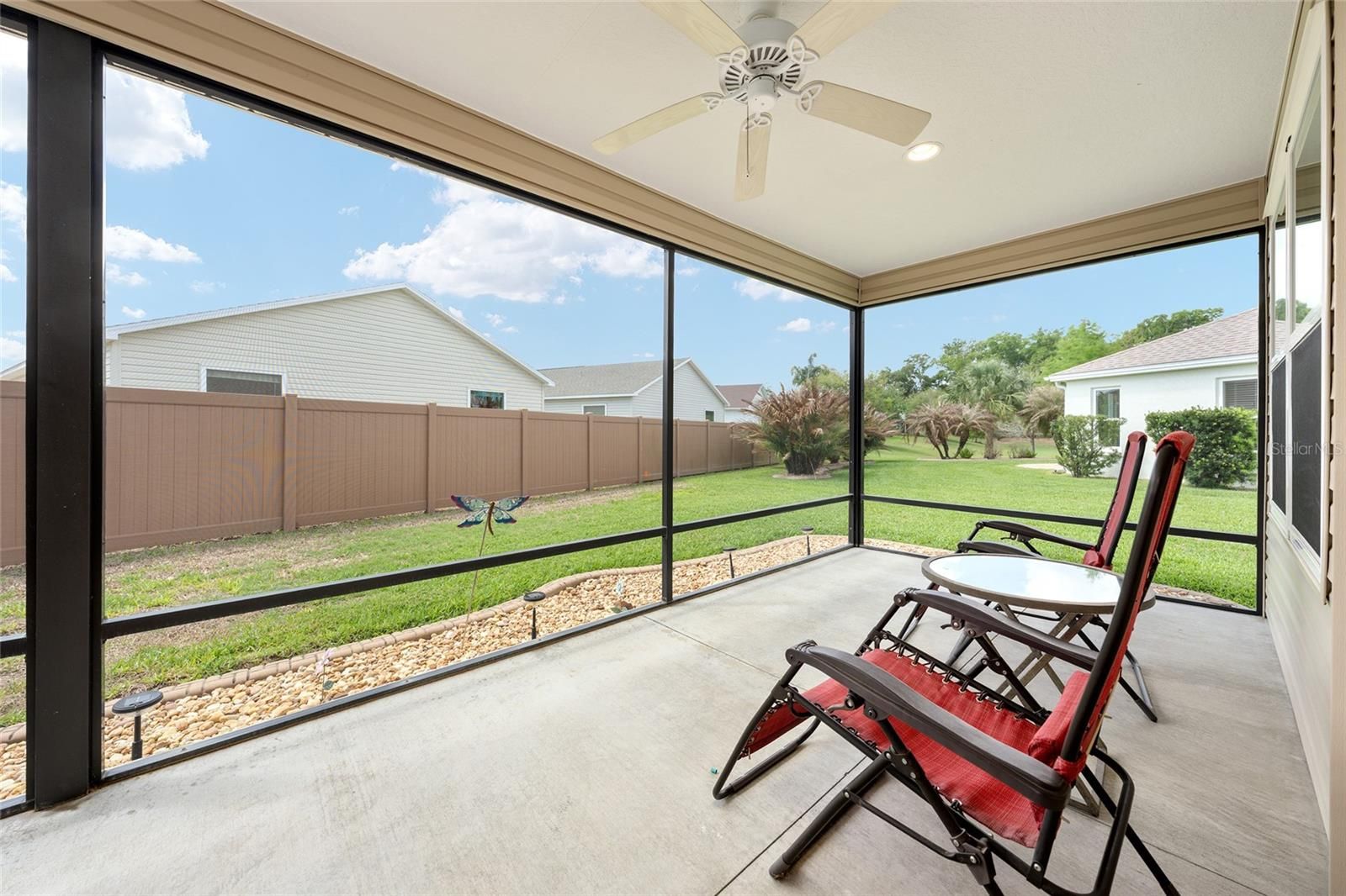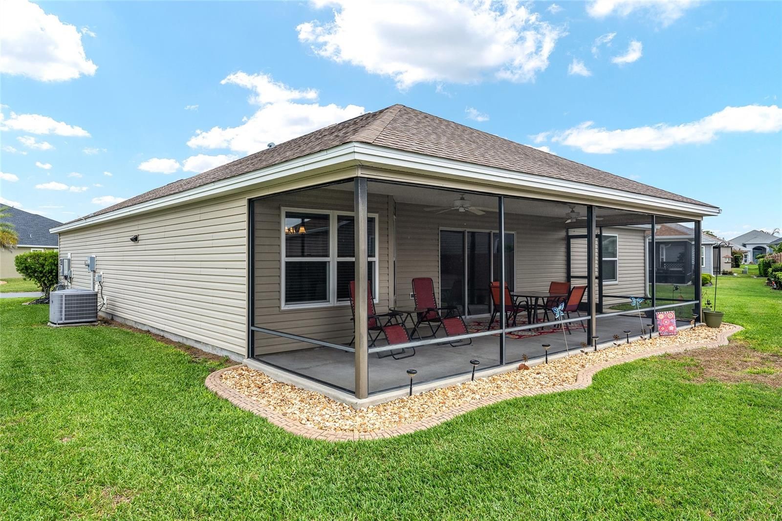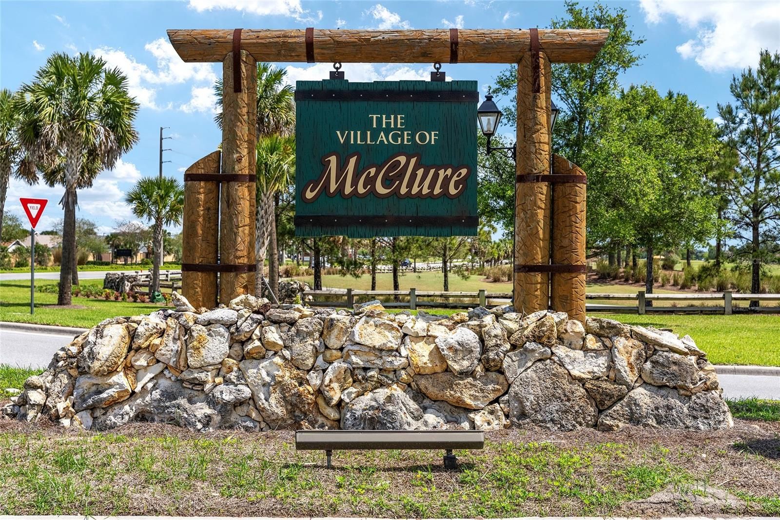 • LOCATION, LOCATION, LOCATION • In the Real Estate world, LOCATION remains one of the strongest drivers of value and appeal. Here is your opportunity to discover this gently lived in WHISPERING PINE-5 Designer home on a QUIET STREET in the VILLAGE of McCLURE, where an EXCELLENT LOCATION, a COMFORTABLE & FUNCTIONAL floor plan, and the sought-after VILLAGES LIFESTYLE come together beautifully. This 3 BR / 2 BA / 2 CAR GARAGE home offers 1,708 SF of living area on a UNIQUELY SHAPED LOT (0.149 acre) in Sumter County W/ LOWER TAXES, REAR PRIVACY from a fence/villa wall, AND lovely SUNSETS from the screen enclosed lanai w/ SW rear exposure. There may also be room for a SWIM SPA or LARGE SPA. It gets even better w/ close proximity to the new EASTPORT Town Center, MIDDLETON community, Magnolia Plaza, and convenient access to the FLORIDA TURNPIKE. CURB APPEAL is attractive w/ refreshed landscaping (4/2026), rock-filled beds, pavered curbing, an ARCHITECTURAL SHINGLE HIP ROOF (2019) w/ Boston gables, a garage door w/ windows, and a welcoming FRONT PORCH with an on-trend black front door and full-length sidelight. Step inside the FOYER and you will immediately appreciate the high VAULTED CEILINGS and spacious OPEN CONCEPT FLOOR PLAN. The combo DINING ROOM / LIVING ROOM area enjoys abundant NATURAL LIGHT and sight lines from the Foyer to Living Room & through the SLIDING GLASS DOORS to the 32’ x 11’ SCREEN ENCLOSED LANAI, an ideal setting for morning coffee, Florida’s balmy winters, or unwinding after a full day of recreation. The KITCHEN is the functional heart of the home and features WHITE CABINETS w/ crown molding, lower cabinet pullouts, a lazy susan, & a large built-in pantry. Add’l highlights include beveled-edge laminate countertops, SS APPLIANCES, including a GAS STOVE, and a large ISLAND w/ extra storage space, a dual-basin sink w/ pull-down faucet and a push-button disposal. The ISLAND also provides BAR STOOL SEATING for casual dining or conversation while entertaining. The sunny BREAKFAST NOOK flows to both the Kitchen & Living Room, creating a cheerful everyday gathering space. The split bedroom design adds privacy for owners & guests alike. The spacious PRIMARY SUITE offers vaulted ceilings, a large walk-in closet, and an ENSUITE BATHROOM w/ dual sinks/white vanity, a private water closet behind a POCKET DOOR, and a tiled ROMAN SHOWER w/ grab bar, built-in seat, & shower niche. The guest wing includes two guest bedrooms w/ closets, a nearby BATHROOM #2 w/ a tiled tub/shower combo, and a linen closet in the hallway. You will also appreciate the INDOOR LAUNDRY ROOM w/ washer, dryer, laundry sink, & overhead storage cabinetry. Other notable features include: the original 2019 ROOF, HVAC, TANKLESS HWH, & IRRIGATION SYSTEM. Again, the great LOCATION helps set this home apart. You will be close to the Everglades Regional Rec Center, Willow Tree, Sugar Cane, & Riverbend Rec Centers, Dudley Canine Park, Fenney Putt & Play, Loblolly & Longleaf Executive Courses, and the growing conveniences of this highly desirable south end area of The Villages. Whether you are heading out for recreation, golf, dining, or nightly entertainment, this address makes it easy to enjoy the world-class VILLAGES LIFESTYLE buyers come here to find. COME SEE why this home could be the perfect PERSONAL SANCTUARY in your next chapter of life. Schedule your private showing today! BOND BALANCE $26,567.46