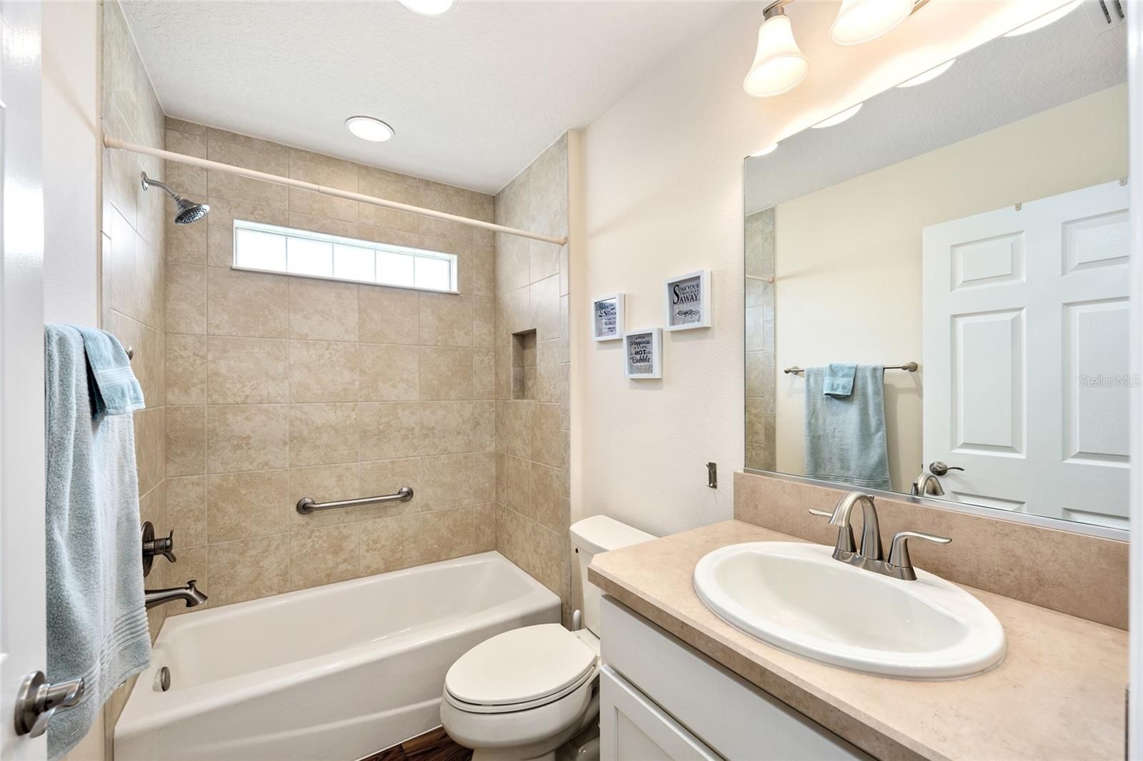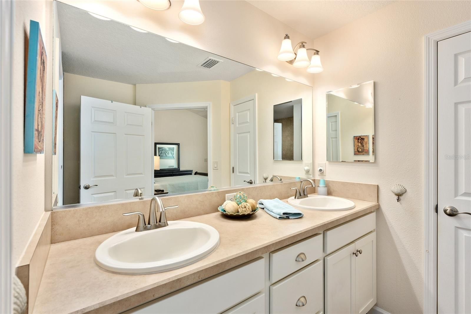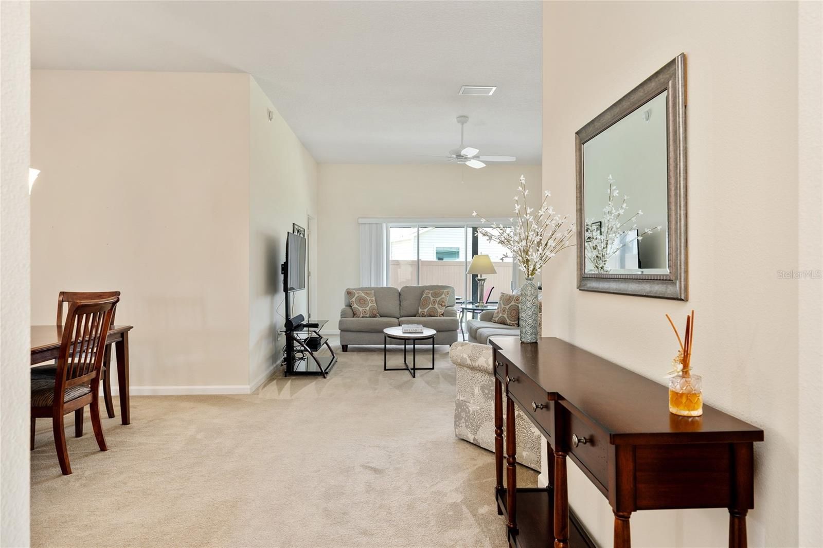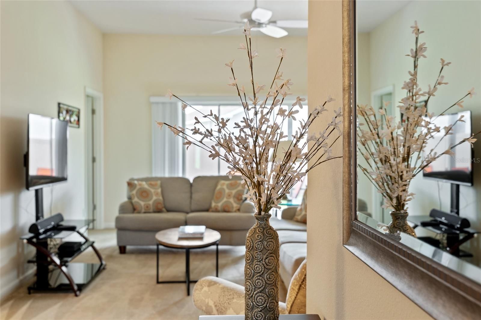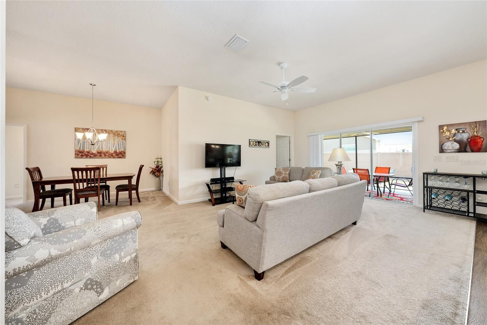 • LOCATION, LOCATION, LOCATION • In the Real Estate world, LOCATION remains one of the strongest drivers of value and appeal. Here is your opportunity to discover this gently lived in WHISPERING PINE-5 Designer home on a QUIET STREET in the VILLAGE of McCLURE, where an EXCELLENT LOCATION, a COMFORTABLE & FUNCTIONAL floor plan, and the sought-after VILLAGES LIFESTYLE come together beautifully. This 3 BR / 2 BA / 2 CAR GARAGE home offers 1,708 SF of living area on a UNIQUELY SHAPED LOT (0.149 acre) in Sumter County W/ LOWER TAXES, REAR PRIVACY from a fence/villa wall, AND lovely SUNSETS from the screen enclosed lanai w/ SW rear exposure. There may also be room for a SWIM SPA or LARGE SPA. It gets even better w/ close proximity to the new EASTPORT Town Center, MIDDLETON community, Magnolia Plaza, and convenient access to the FLORIDA TURNPIKE. CURB APPEAL is attractive w/ refreshed landscaping (4/2026), rock-filled beds, pavered curbing, an ARCHITECTURAL SHINGLE HIP ROOF (2019) w/ Boston gables, a garage door w/ windows, and a welcoming FRONT PORCH with an on-trend black front door and full-length sidelight. Step inside the FOYER and you will immediately appreciate the high VAULTED CEILINGS and spacious OPEN CONCEPT FLOOR PLAN. The combo DINING ROOM / LIVING ROOM area enjoys abundant NATURAL LIGHT and sight lines from the Foyer to Living Room & through the SLIDING GLASS DOORS to the 32’ x 11’ SCREEN ENCLOSED LANAI, an ideal setting for morning coffee, Florida’s balmy winters, or unwinding after a full day of recreation. The KITCHEN is the functional heart of the home and features WHITE CABINETS w/ crown molding, lower cabinet pullouts, a lazy susan, & a large built-in pantry. Add’l highlights include beveled-edge laminate countertops, SS APPLIANCES, including a GAS STOVE, and a large ISLAND w/ extra storage space, a dual-basin sink w/ pull-down faucet and a push-button disposal. The ISLAND also provides BAR STOOL SEATING for casual dining or conversation while entertaining. The sunny BREAKFAST NOOK flows to both the Kitchen & Living Room, creating a cheerful everyday gathering space. The split bedroom design adds privacy for owners & guests alike. The spacious PRIMARY SUITE offers vaulted ceilings, a large walk-in closet, and an ENSUITE BATHROOM w/ dual sinks/white vanity, a private water closet behind a POCKET DOOR, and a tiled ROMAN SHOWER w/ grab bar, built-in seat, & shower niche. The guest wing includes two guest bedrooms w/ closets, a nearby BATHROOM #2 w/ a tiled tub/shower combo, and a linen closet in the hallway. You will also appreciate the INDOOR LAUNDRY ROOM w/ washer, dryer, laundry sink, & overhead storage cabinetry. Other notable features include: the original 2019 ROOF, HVAC, TANKLESS HWH, & IRRIGATION SYSTEM. Again, the great LOCATION helps set this home apart. You will be close to the Everglades Regional Rec Center, Willow Tree, Sugar Cane, & Riverbend Rec Centers, Dudley Canine Park, Fenney Putt & Play, Loblolly & Longleaf Executive Courses, and the growing conveniences of this highly desirable south end area of The Villages. Whether you are heading out for recreation, golf, dining, or nightly entertainment, this address makes it easy to enjoy the world-class VILLAGES LIFESTYLE buyers come here to find. COME SEE why this home could be the perfect PERSONAL SANCTUARY in your next chapter of life. Schedule your private showing today! BOND BALANCE $26,567.46