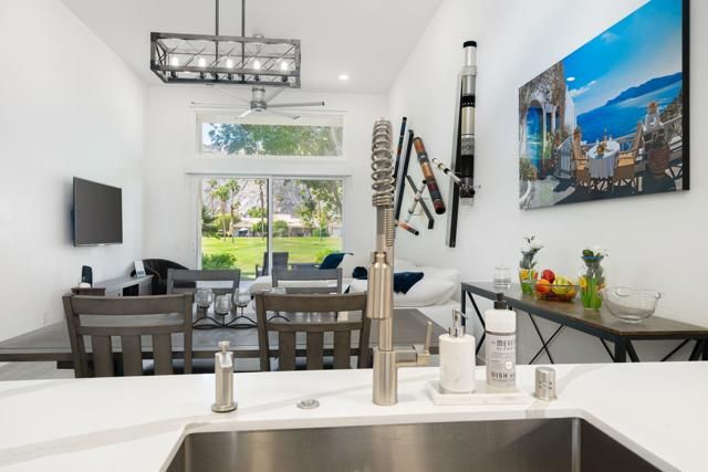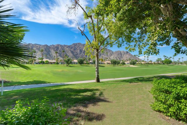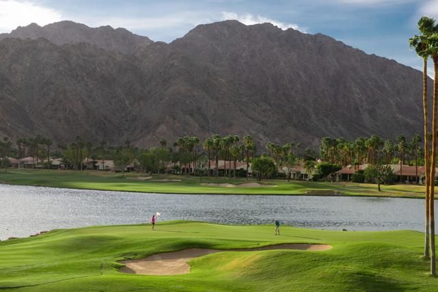 Discover the allure of modern living at 55113 Shoal Creek, situated on the picturesque 2nd fairway of the PGA Palmer Private golf course. This exquisite West-facing 2-bedroom, 2-bathroom home offers breathtaking mountain views and 1,330 square feet of well-appointed living space, seamlessly combining elegance with contemporary comfort. Step inside to discover a thoughtfully designed interior, where every detail exudes sophistication. Featuring wood-look porcelain tile flooring, smart-tech recessed LED lighting, custom motorized shades, fit to match furnishings, and art installation walls carefully planned and positioned by Breathtaking Art for your Soul artists Myra Burg & Liz Cummings. The spacious living area flows effortlessly into a sleek kitchen, adorned with quartz countertops and state-of-the-art Viking stainless steel appliances, ideal for the culinary enthusiast. The primary bedroom is a tranquil retreat, complete with an en-suite bathroom that has been tastefully updated to provide a spa-like experience. An additional bedroom and bathroom offer flexibility for guests or a home office. Notable amenities include an in-unit washer and dryer, new air conditioning system to ensure year-round comfort, and a generous garage for secure parking and storage. The community enhances your lifestyle with its inviting pool and spa, where relaxation awaits. Offered turnkey-furnished where all you need to bring is your suitcase, this home is a true gem. Perfect for full-time living, vacation home, or as an investment property. Don't miss the opportunity to experience the perfect blend of elegance and modern convenience.