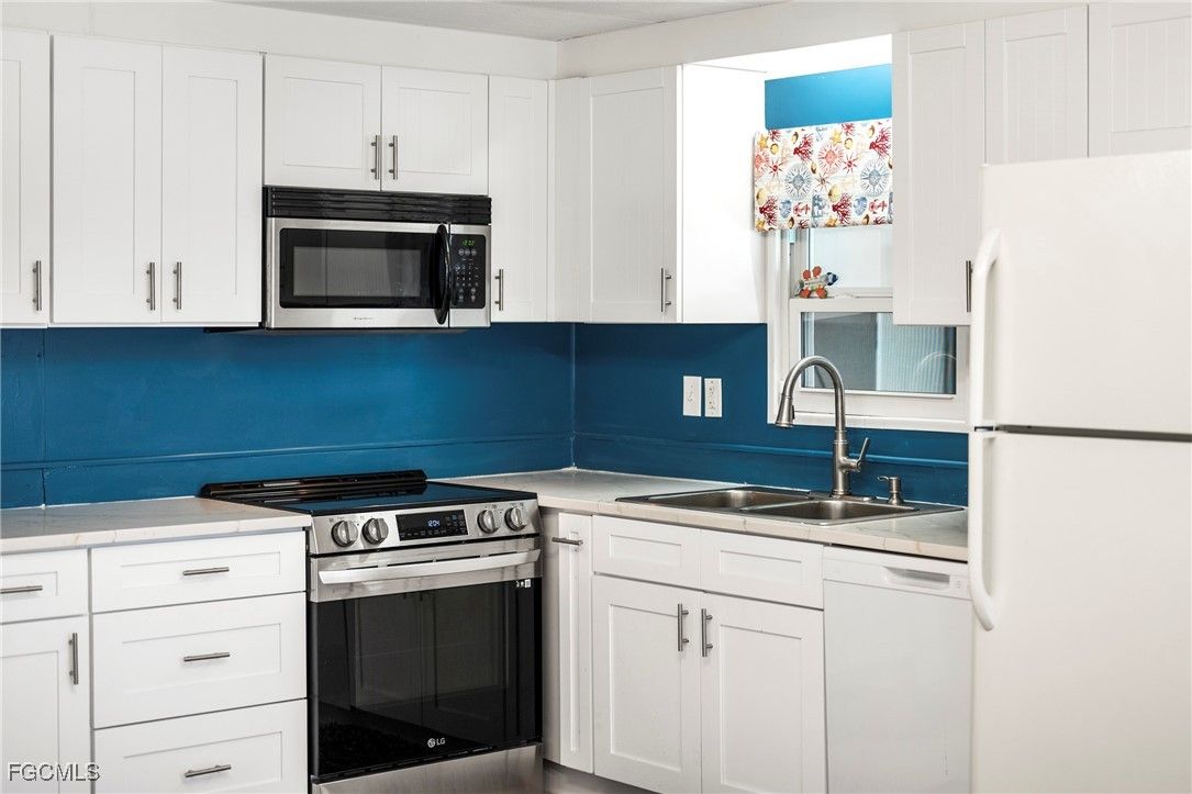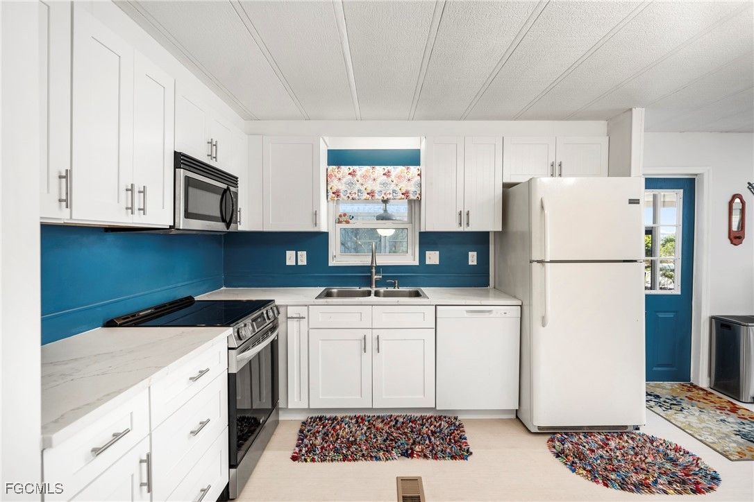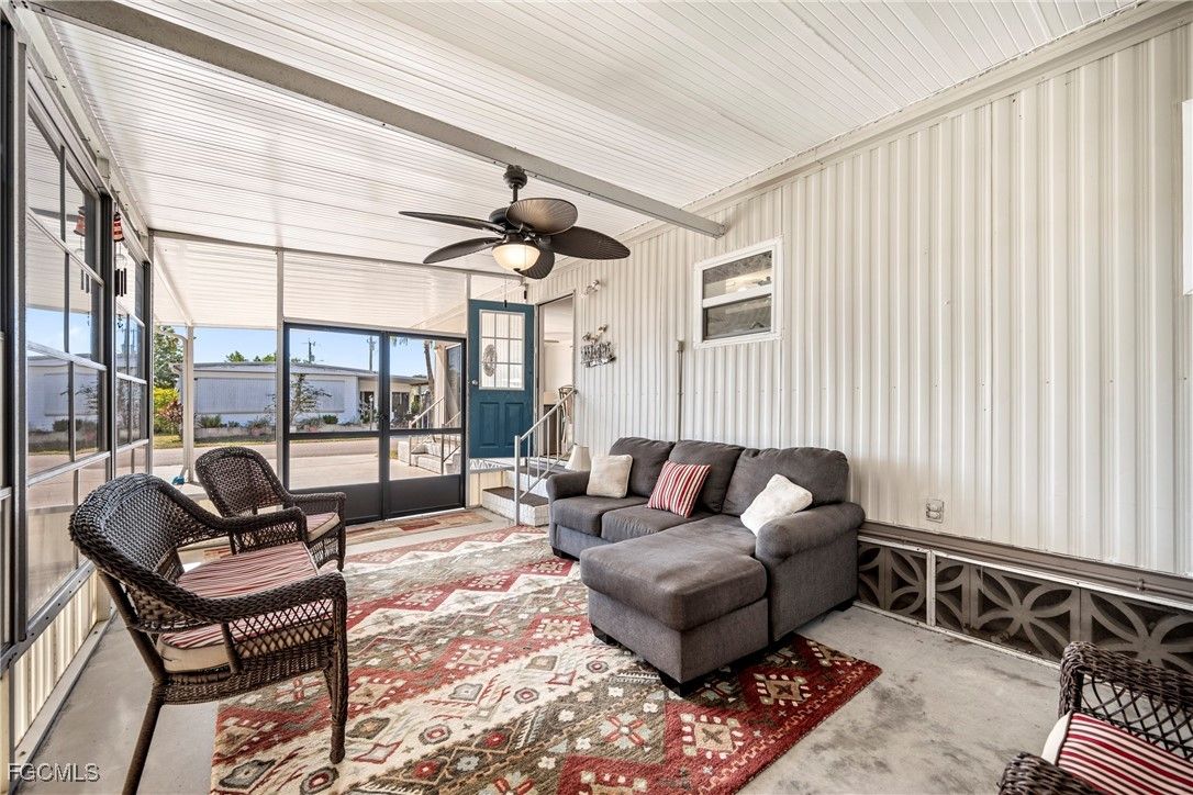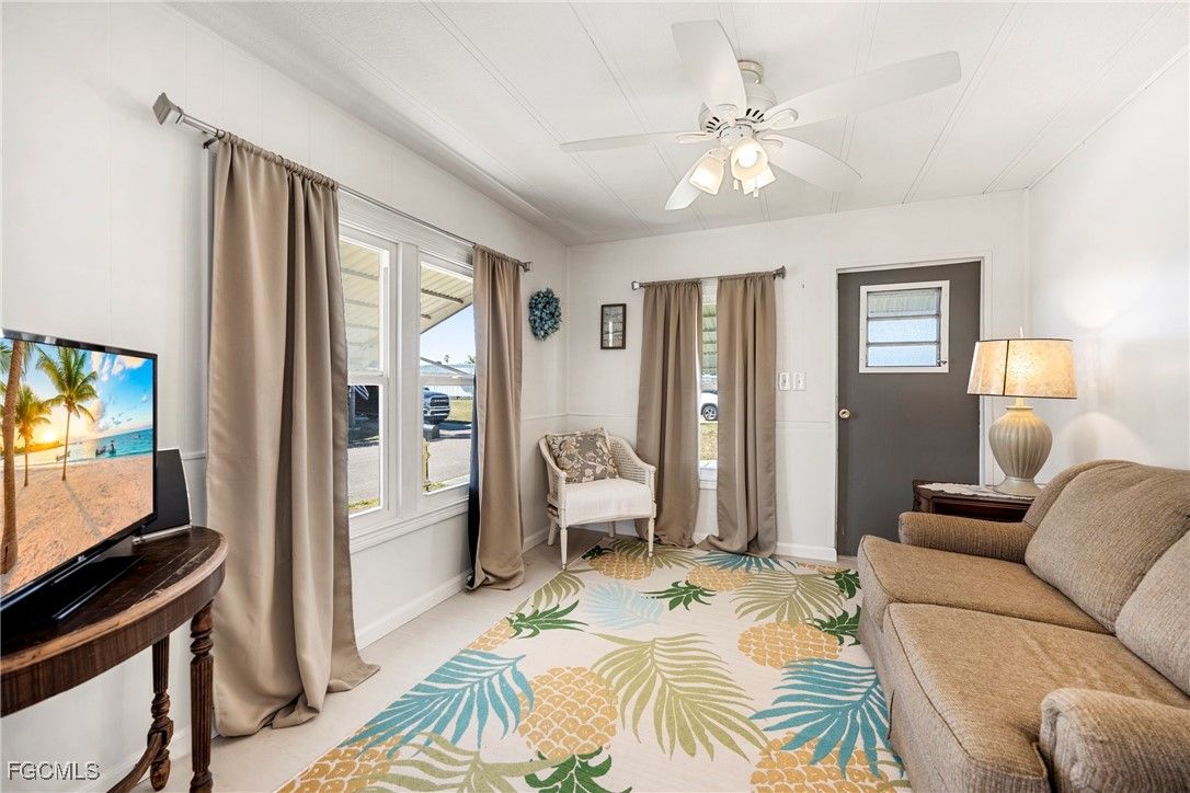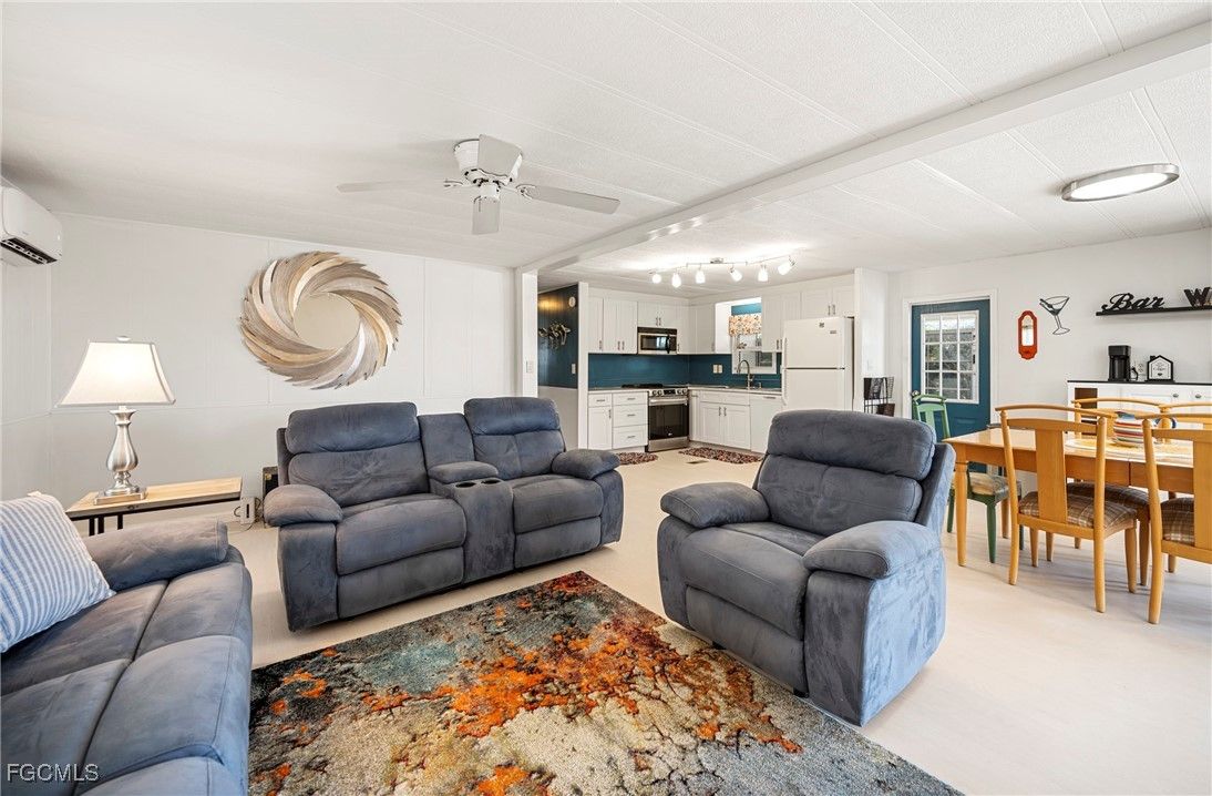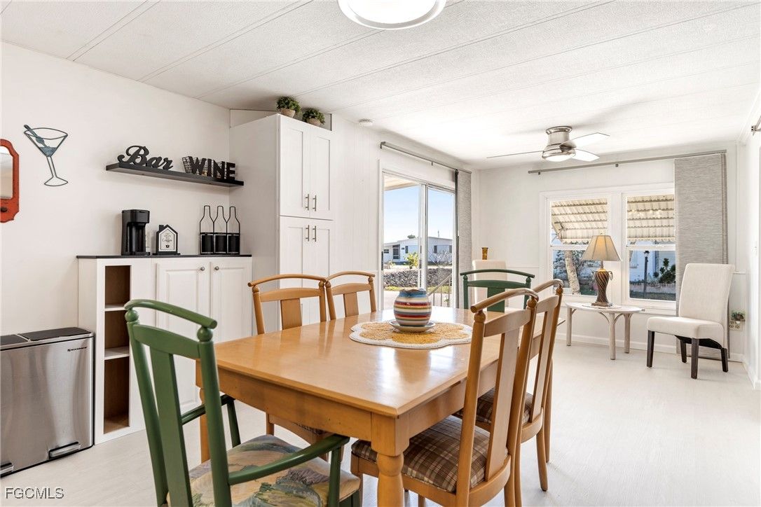 Beautifully remodeled, fully furnished manufactured home in a 55+ waterfront gulf access community in North Fort Myers, FL. This turnkey retreat features a bright, open-concept living and dining area, a chef’s kitchen with new countertops, stainless steel appliances, and stylish Florida decor. The two-bedroom, two-bath layout includes a refreshed master suite and en-suite bath, luxury vinyl plank flooring throughout, modern fixtures, and smart home-ready touches. Enjoy mornings in a private screened lanai while watching the sun rise. Set within a guard-gated, golf-cart-friendly community, residents enjoy a clubhouse, pool, fitness center, pickleball/tennis courts, and a lively social calendar, boat storage and direct access to the Caloosahatchee River. Exterior highlights include fresh paint, landscaped grounds, and convenient parking with a covered carport and storage shed. This low-maintenance home is perfectly suited for snowbirds or full-time residents seeking waterfront access, resort-style amenities, and a turnkey Florida lifestyle. Schedule a private tour to see all that this home and community have to offer.