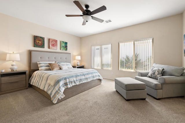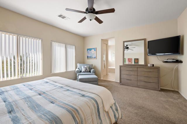 Located on the 2nd hole of the Palmer Private course at PGA West, this light, open and airy home offers 2 bedrooms, 2 baths + an office in a spacious 2,026 square feet! There is a large, well appointed kitchen with breakfast bar, and the great room features a cozy fireplace. The generous primary suite has a large bath with dual vanity and separate tub and shower, and an ample walk-in closet. Step outside to an oversized covered patio featuring a firepit and lovely views! And lastly there is a two car plus golf cart garage. This is a sought after floorplan, that rarely comes on the market. Come and experience resort living at its finest!