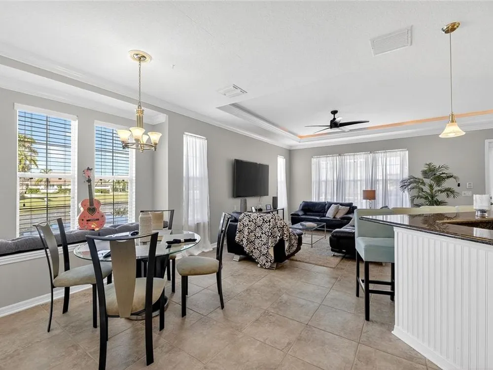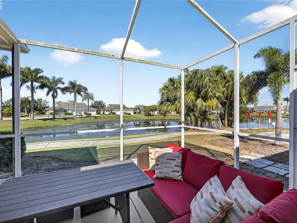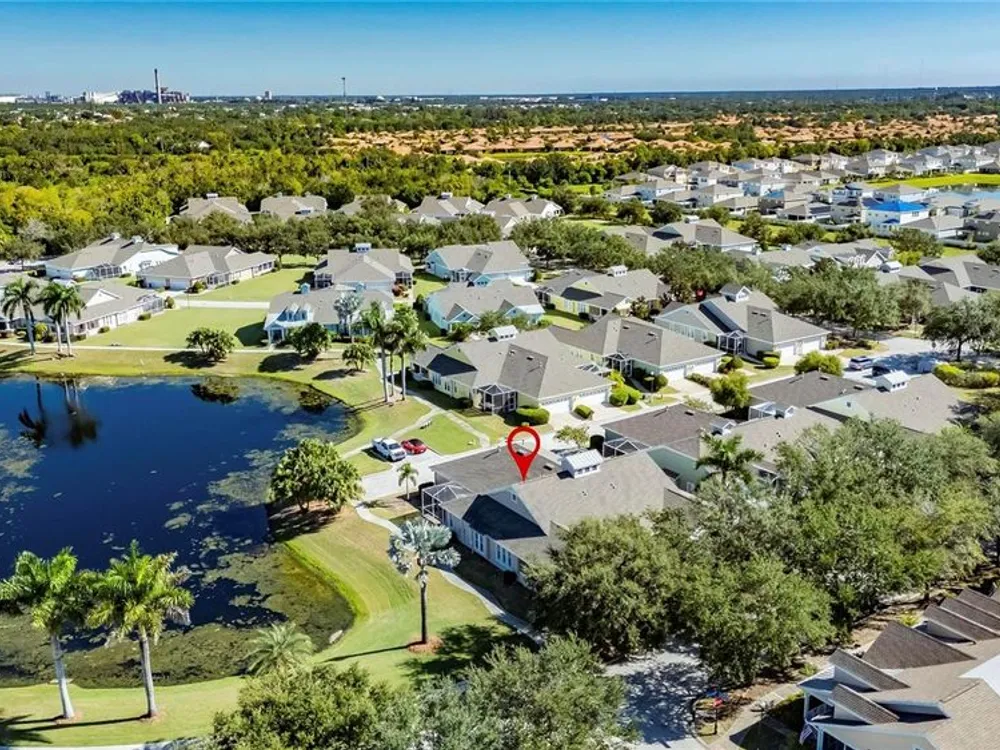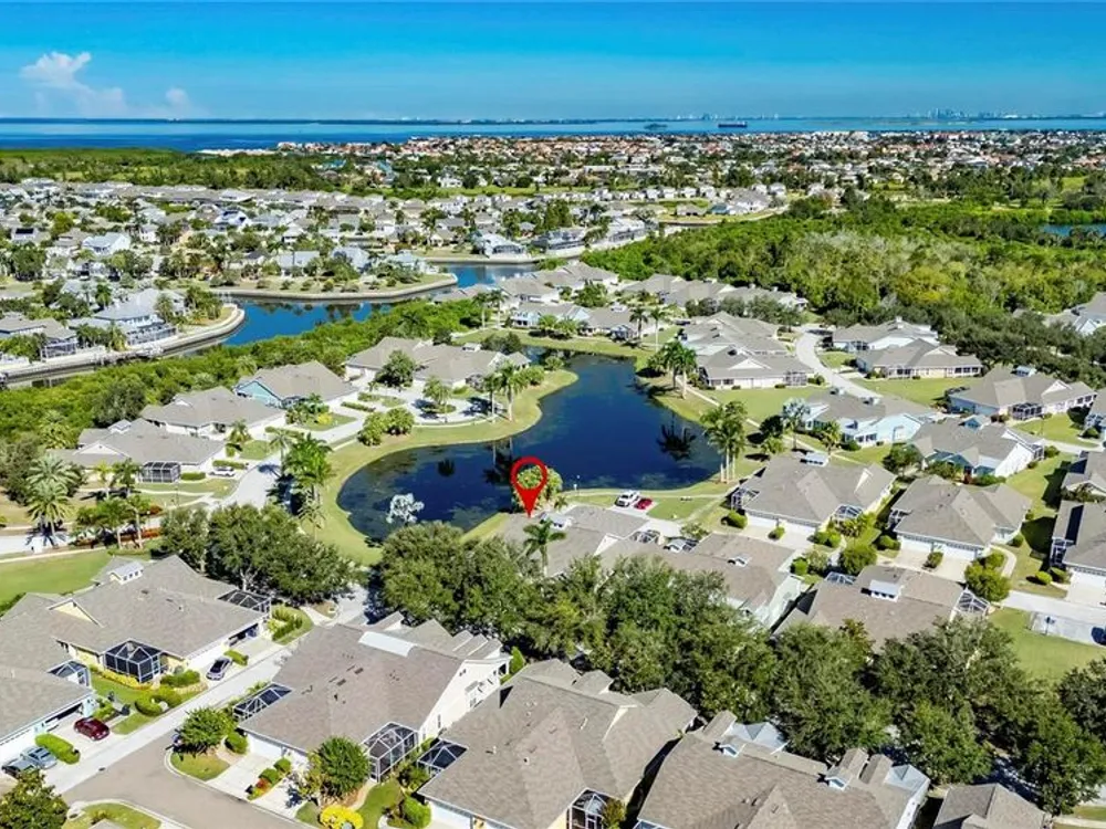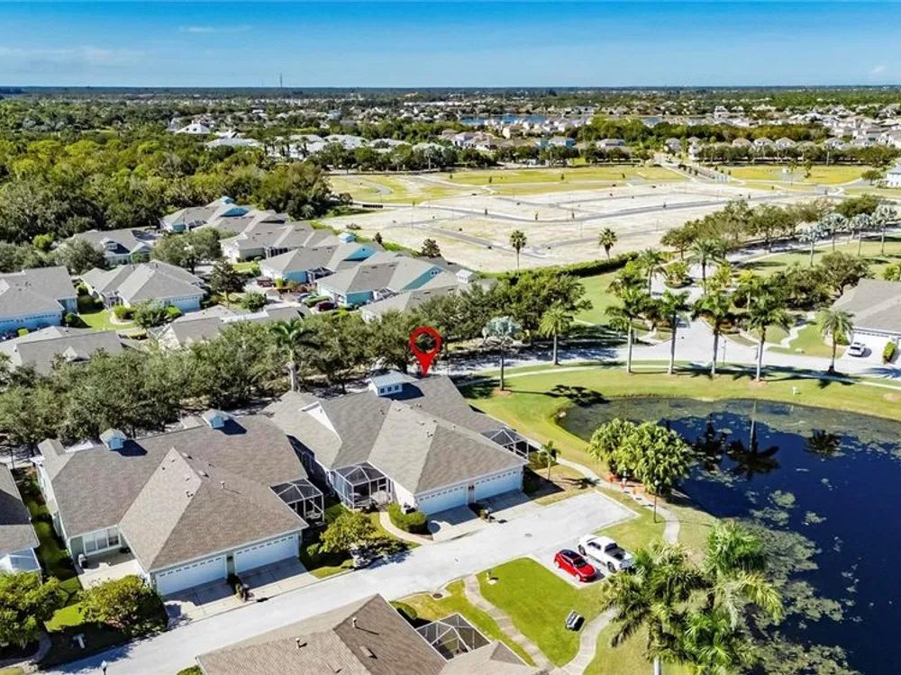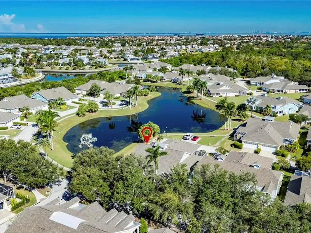 Welcome to MiraBay, where luxury and coastal tranquility meet! This beautifully maintained 3-bedroom, 2-bath villa in the coveted Sea Crest subdivision offers stunning pond views and resort-style living at its finest. Inside the Meridian floorplan, you’ll be greeted by elegant tray ceilings, stylish tile flooring, and an inviting open layout. The dining area overlooks the pond—perfect for intimate dinners or lively game nights—while the versatile living room can double as a home office or flex space. At the heart of the home, the kitchen and family room flow seamlessly together. The kitchen features a large island with breakfast bar, granite countertops, white cabinetry, and a chic tile backsplash—ideal for cooking and entertaining. Expansive windows in the family room bathe the space in natural light and open to a covered, screened lanai where you can relax and enjoy peaceful water views. The spacious primary suite is a true retreat, complete with pond views, a spa-like bath with soaking tub, dual vanities, and a walk-in closet. Two additional bedrooms and a full hall bath provide privacy and comfort for family or guests. Recent upgrades include: new roof (2022), new carpet & ceiling fans (2023), new AC & tankless water heater (Oct 2024), fresh interior paint (2024), new exterior paint (Spring 2025). Additional highlights: indoor laundry room with mud sink and storage, plus a private screened lanai perfect for enjoying Florida’s year-round sunshine. MiraBay offers unmatched amenities—sparkling pool with café, fitness center, splash pad, racquetball courts, and more—making this gated community one of the most desirable in the area. Villas here are rarely available, so don’t miss your chance—schedule a showing today!