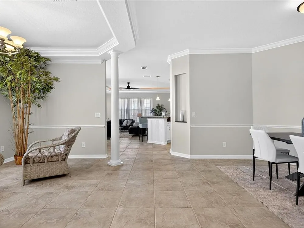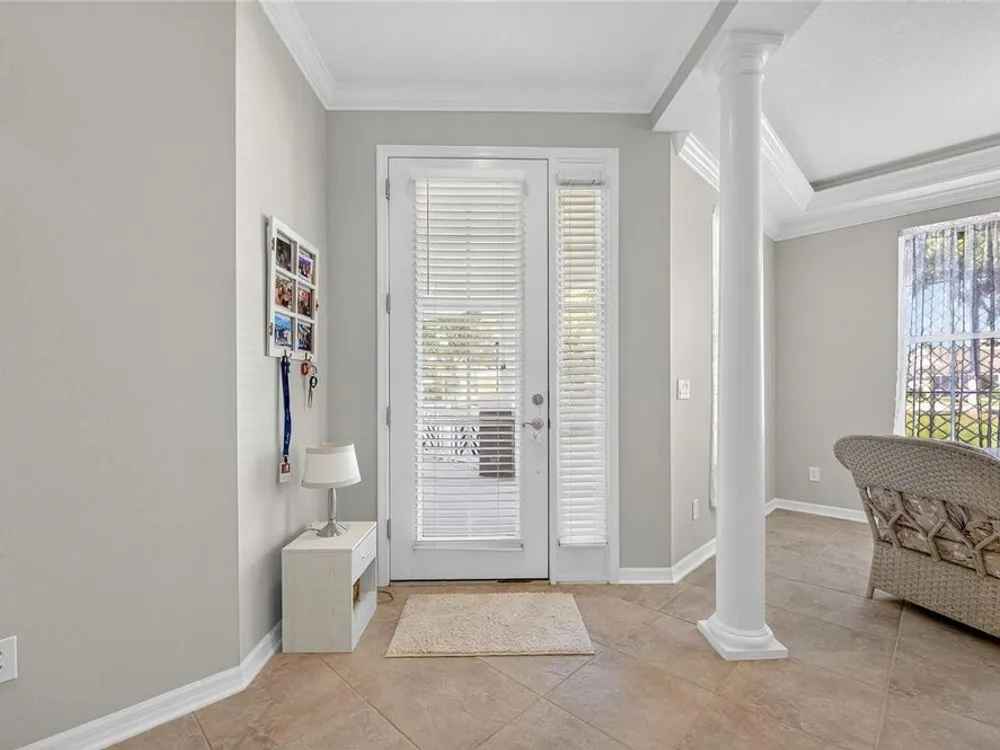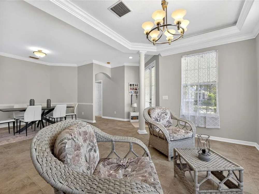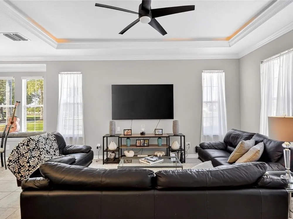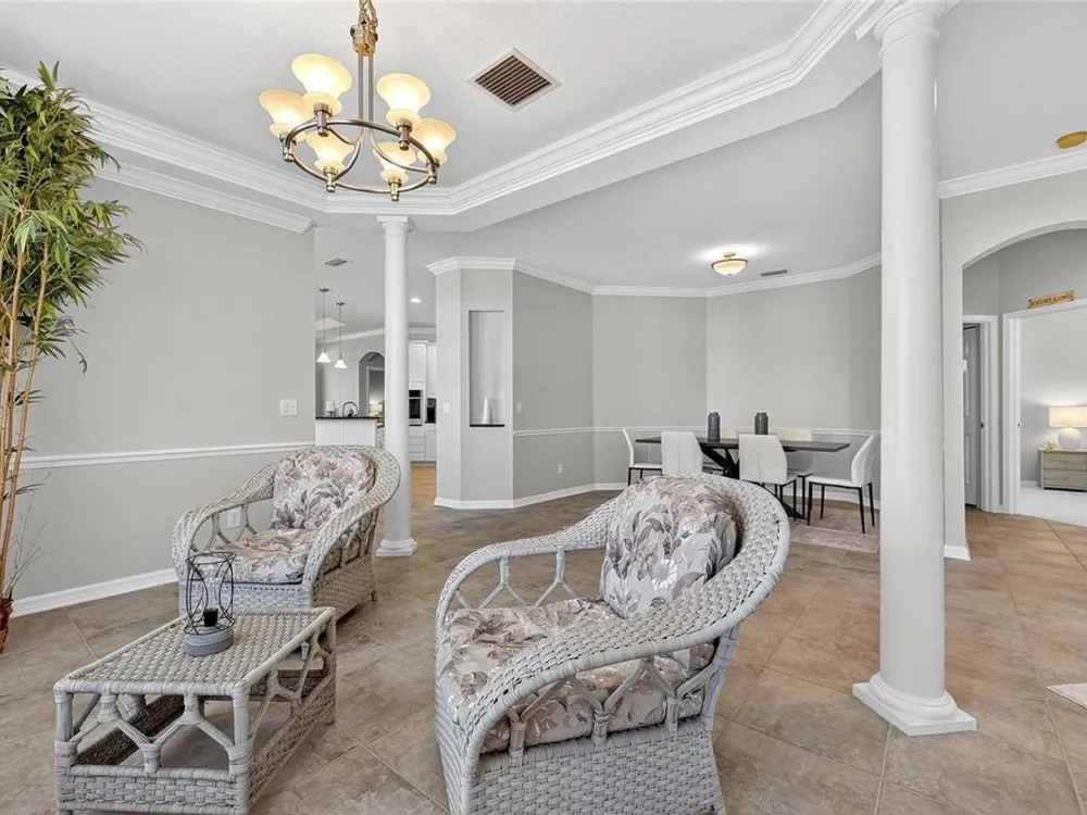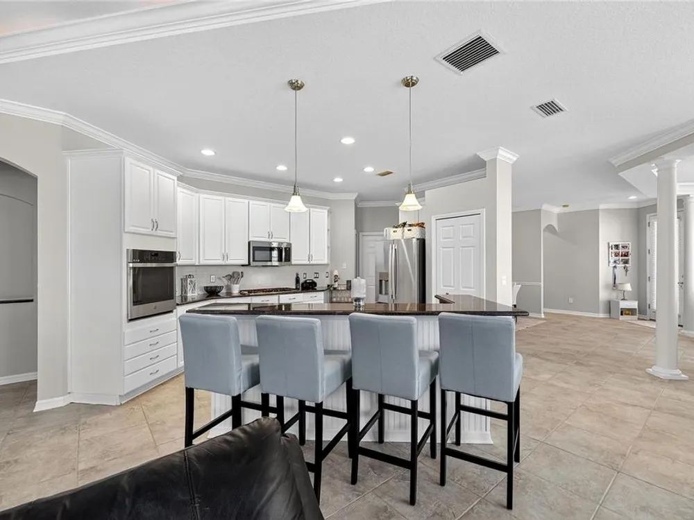 Welcome to MiraBay, where luxury and coastal tranquility meet! This beautifully maintained 3-bedroom, 2-bath villa in the coveted Sea Crest subdivision offers stunning pond views and resort-style living at its finest. Inside the Meridian floorplan, you’ll be greeted by elegant tray ceilings, stylish tile flooring, and an inviting open layout. The dining area overlooks the pond—perfect for intimate dinners or lively game nights—while the versatile living room can double as a home office or flex space. At the heart of the home, the kitchen and family room flow seamlessly together. The kitchen features a large island with breakfast bar, granite countertops, white cabinetry, and a chic tile backsplash—ideal for cooking and entertaining. Expansive windows in the family room bathe the space in natural light and open to a covered, screened lanai where you can relax and enjoy peaceful water views. The spacious primary suite is a true retreat, complete with pond views, a spa-like bath with soaking tub, dual vanities, and a walk-in closet. Two additional bedrooms and a full hall bath provide privacy and comfort for family or guests. Recent upgrades include: new roof (2022), new carpet & ceiling fans (2023), new AC & tankless water heater (Oct 2024), fresh interior paint (2024), new exterior paint (Spring 2025). Additional highlights: indoor laundry room with mud sink and storage, plus a private screened lanai perfect for enjoying Florida’s year-round sunshine. MiraBay offers unmatched amenities—sparkling pool with café, fitness center, splash pad, racquetball courts, and more—making this gated community one of the most desirable in the area. Villas here are rarely available, so don’t miss your chance—schedule a showing today!