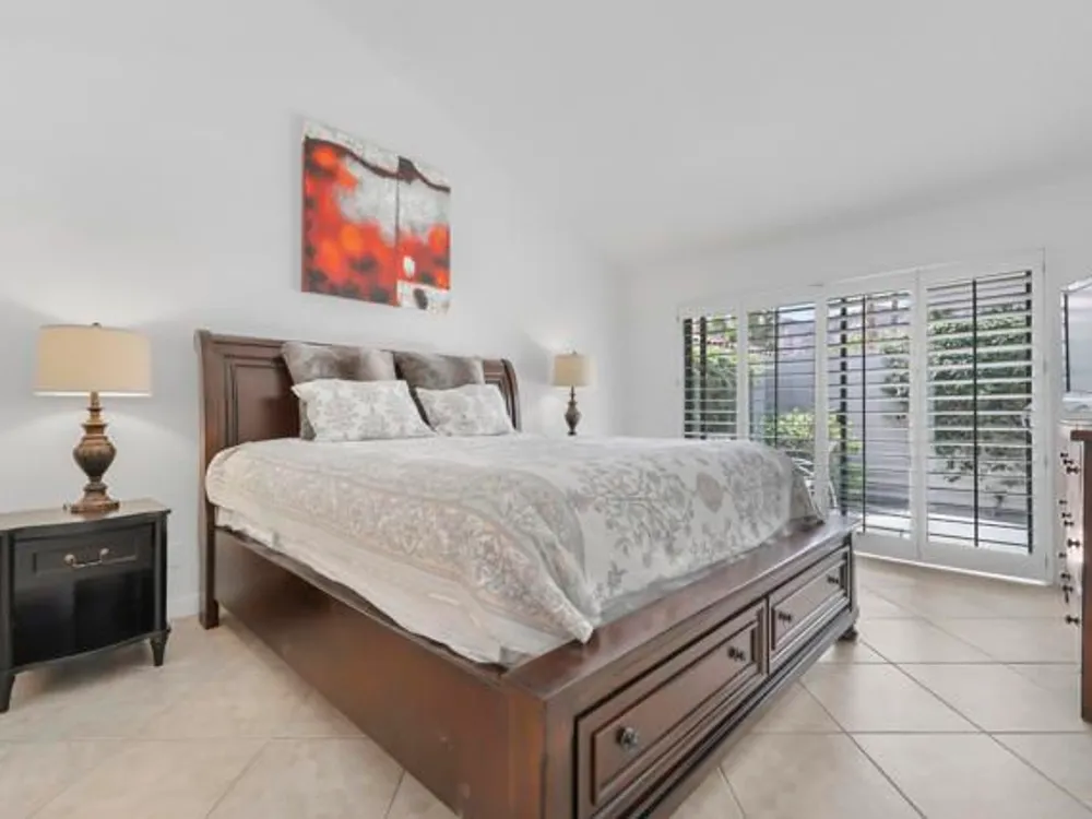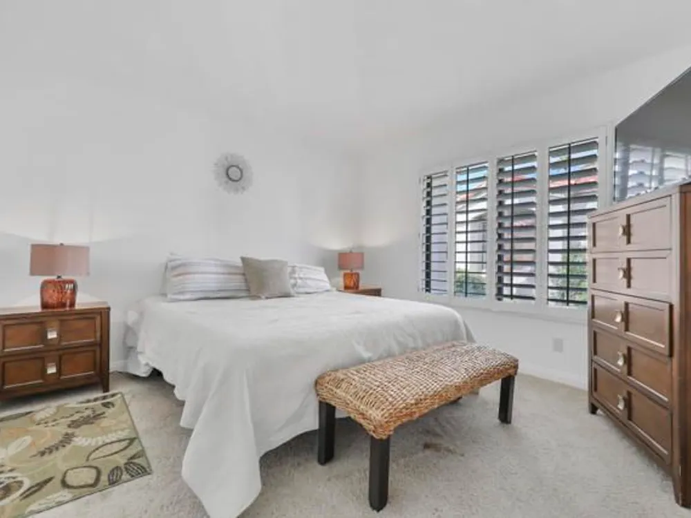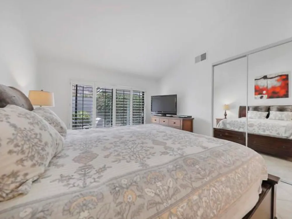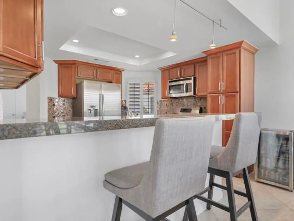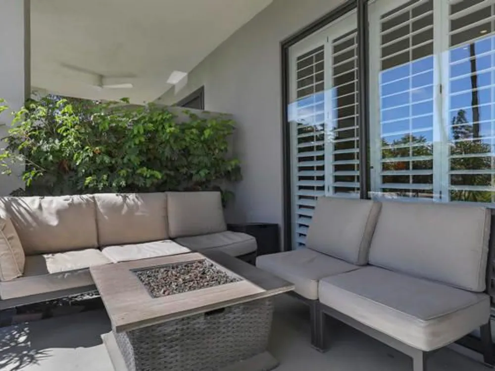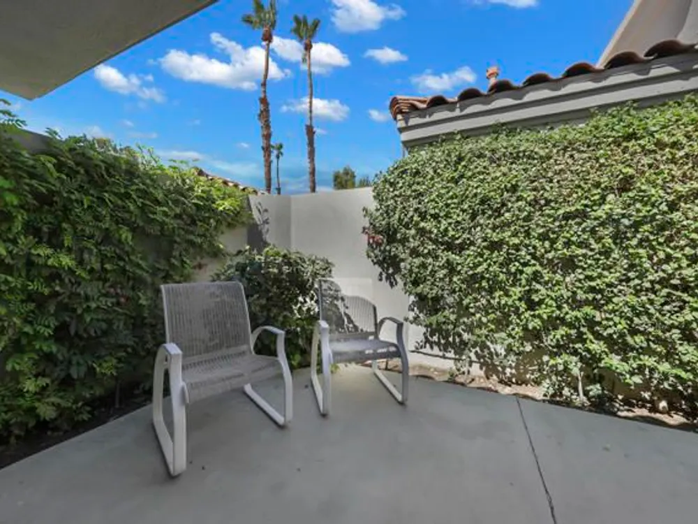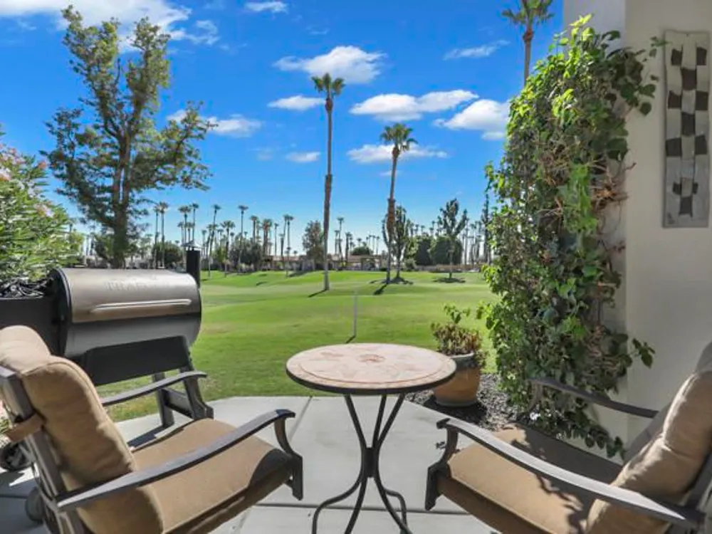 Welcome to this beautifully remodeled Champion III located on the 8th green of the prestigious Arnold Palmer Private Course at PGA West. With a serene mountain backdrop and stunning golf course views, this 3 bedroom, 2 bath condo offers the perfect blend of comfort, style, and desert elegance.Offered turnkey furnished, the home features thoughtful upgrades throughout. The kitchen has been completely renovated with sleek cabinetry, stainless steel appliances, quartz countertops, designer backsplash, and updated lighting. Vaulted ceilings and expansive windows fill the space with natural light, creating a warm and inviting atmosphere.The spacious primary suite includes a private courtyard retreat with a bistro set--ideal for morning coffee or evening relaxation. Both guest bedrooms feature brand new king-size beds, perfect for hosting family and friends. Additional upgrades include all new paint throughout, a brand new A/C (2025), new flooring, and a Pelican water softener system.Step outside to your private patio and take in the breathtaking views of the mountains and manicured fairways--perfect for entertaining or simply enjoying the peace and beauty of desert living.Ideally situated near world-class golf, tennis, pickleball, hiking, shopping, and dining, this is your chance to own a move-in ready getaway in the heart of PGA West.