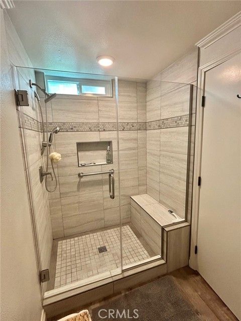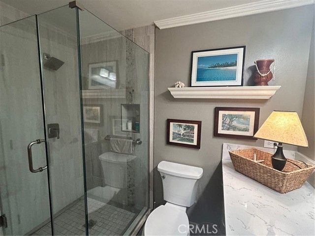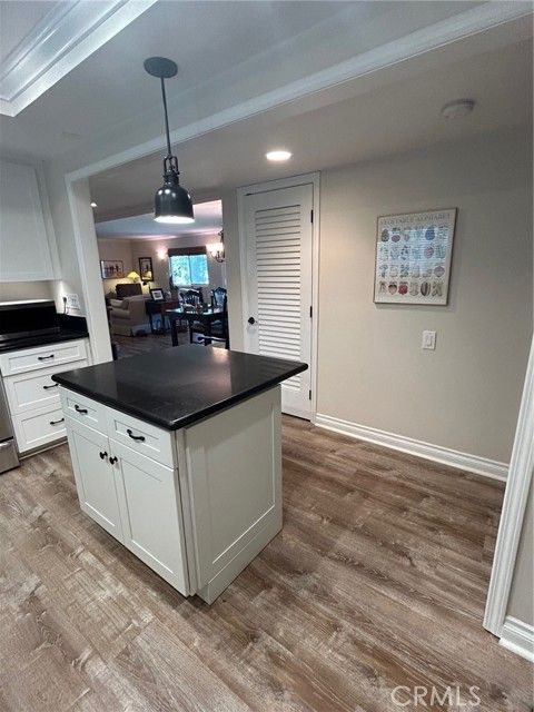 THIS BEAUTIFUL CONDO IS WORTH SEEING. The building is located on the Par 3 golf course and is the building featured in the many of the pictures used in the Laguna Woods Website. Living here will give you the best panoramic golf course views from every window. Upon entering, you will be greeted by an inviting open concept living. The ceilings have been scrapped. You will notice vinyl dual pane windows and sliders. The private updated covered patio provides serene golf course views and a walkout gate leading to the grass and gardens. The spacious living and dining areas boast neutral colors, crown molding and wood look vinyl flooring throughout. The living room also features an electric fireplace and views of the executive golf course. The Kitchen has been updated to an open concept which features white shaker cabinets, stainless appliances granite counters and an island. The bathrooms have been tastefully updated with floor to ceiling tile showers. The Primary bathroom shower features a build in seat as well. This El Matador unit features 1260 square feet. The 2 Bedrooms are on opposite ends which allow for privacy for your guests. Residents benefit from an elevator, subterranean underground parking and a common laundry room on each floor for your convenience. There is also a Rec
