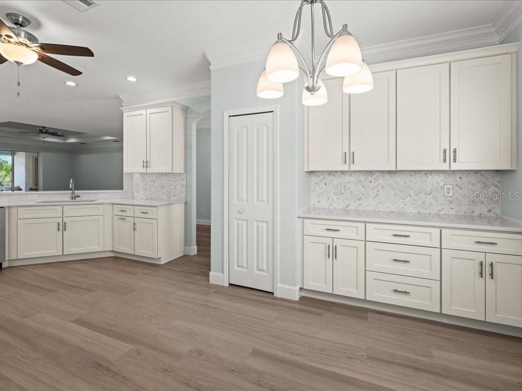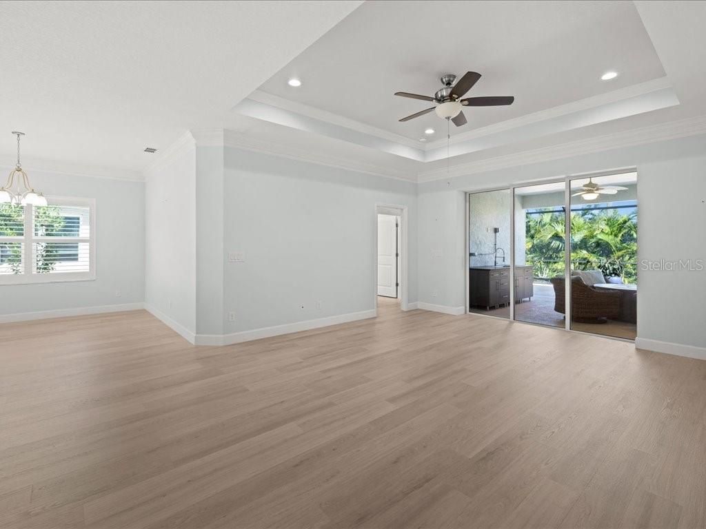 One or more photo(s) has been virtually staged. Popular Pearl floor plan home, located in one of Englewood’s most desirable communities, is packed with upgrades! Features include Luxury Vinyl Plank flooring and window treatments throughout, crown molding, impact windows and doors, and a screened entry. The open great room boasts tray ceilings and pocket sliders leading to the lanai. The upgraded kitchen offers Quartz countertops, a decorative backsplash, composite sink, pantry, and GE Café appliances. The primary suite includes a tray ceiling, walk-in closet, office/den, lanai access, and an ensuite bath with a double vanity and oversized shower with abundant storage. Enjoy the outdoor kitchen, expanded screened lanai, tropical landscaping, and a 2-car garage with attic storage. Community amenities include a clubhouse, pool, and tennis/pickleball courts. Ideally located near historic Dearborn Street’s shops and restaurants, this home is less than 15 minutes from the pristine beaches of Manasota Key and just a short drive to Boca Grande, Venice, and Nokomis beaches.