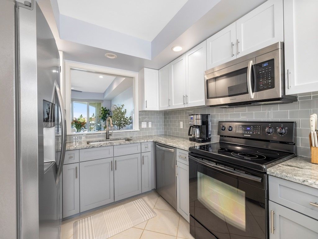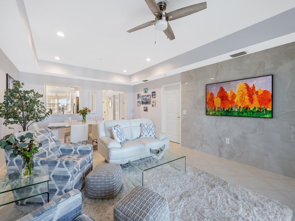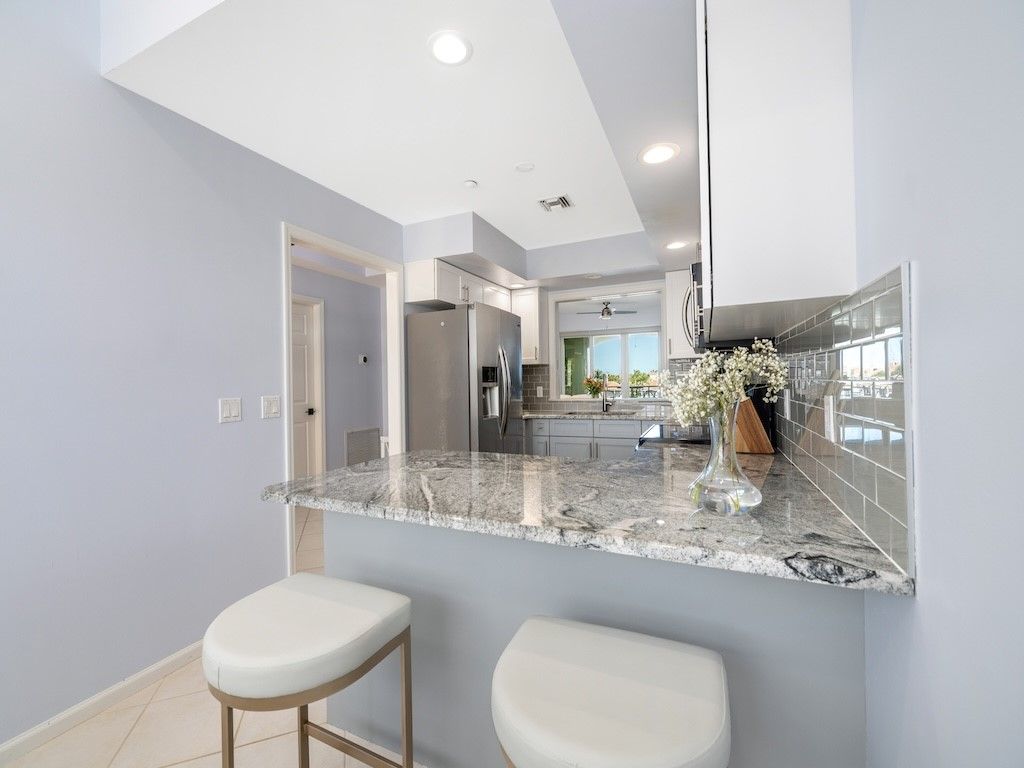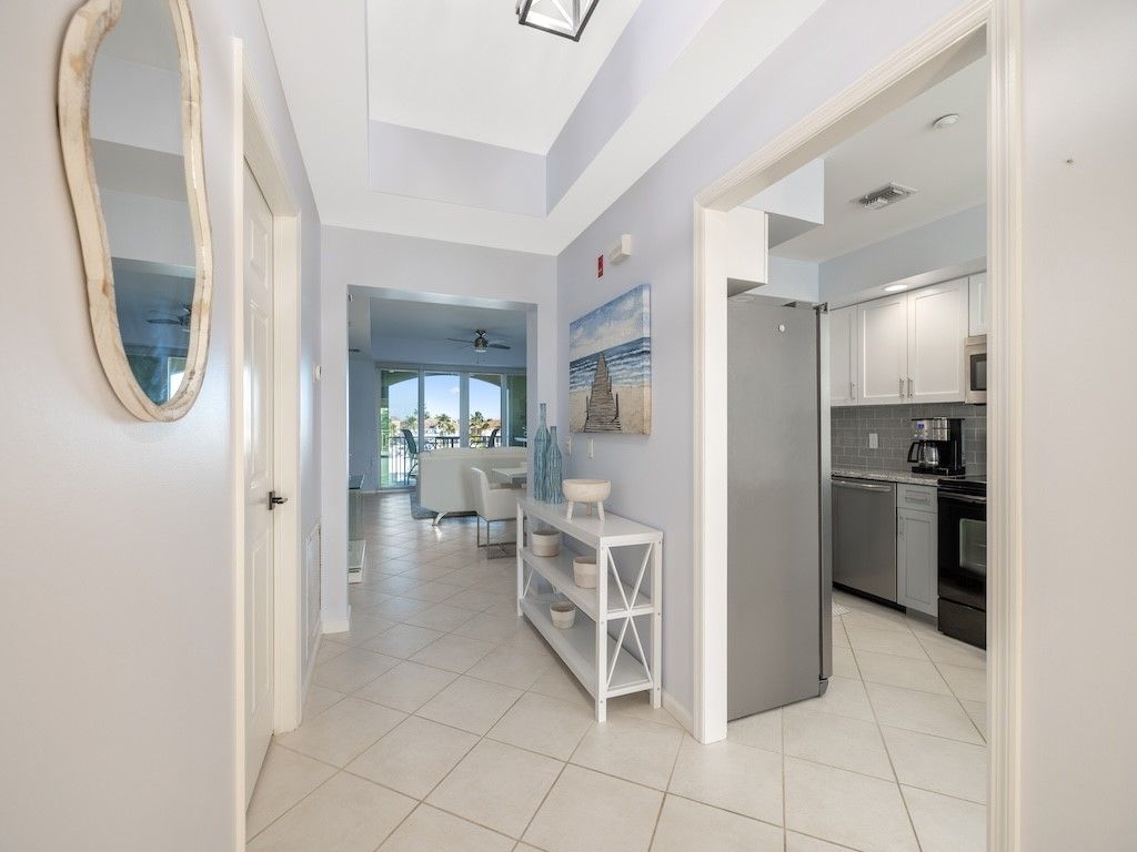 Beautifully renovated 2BR/2BA condo in gated Harbor Village at Grand Harbor. Features include new A/C, tile and luxury vinyl flooring, LED lighting, and a stunning kitchen with granite counters, custom pantry, and built-in bench. Spa-style master bath with walk-in shower and dual vanities. Enjoy marina and Intracoastal views from the balcony with impact sliders. Includes garage parking and access to resort amenities near beaches, dining, and shops in Vero Beach. Turn-key coastal living.