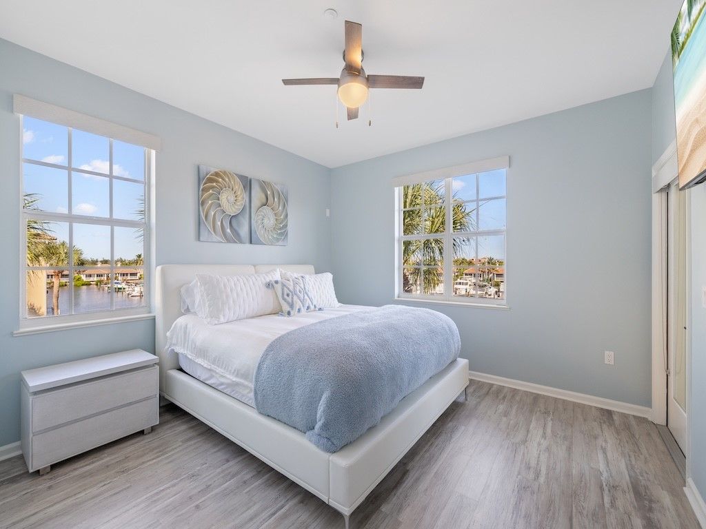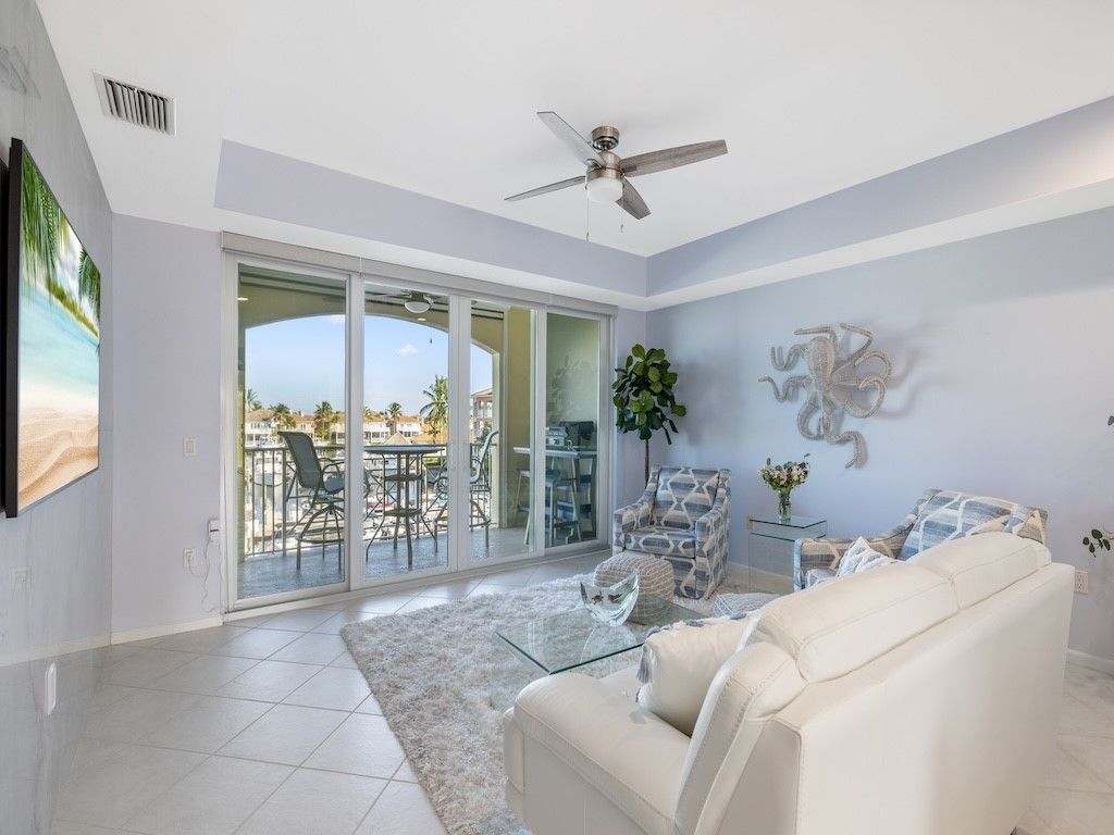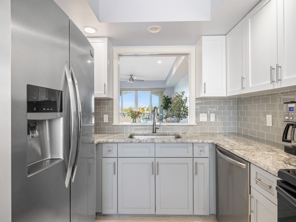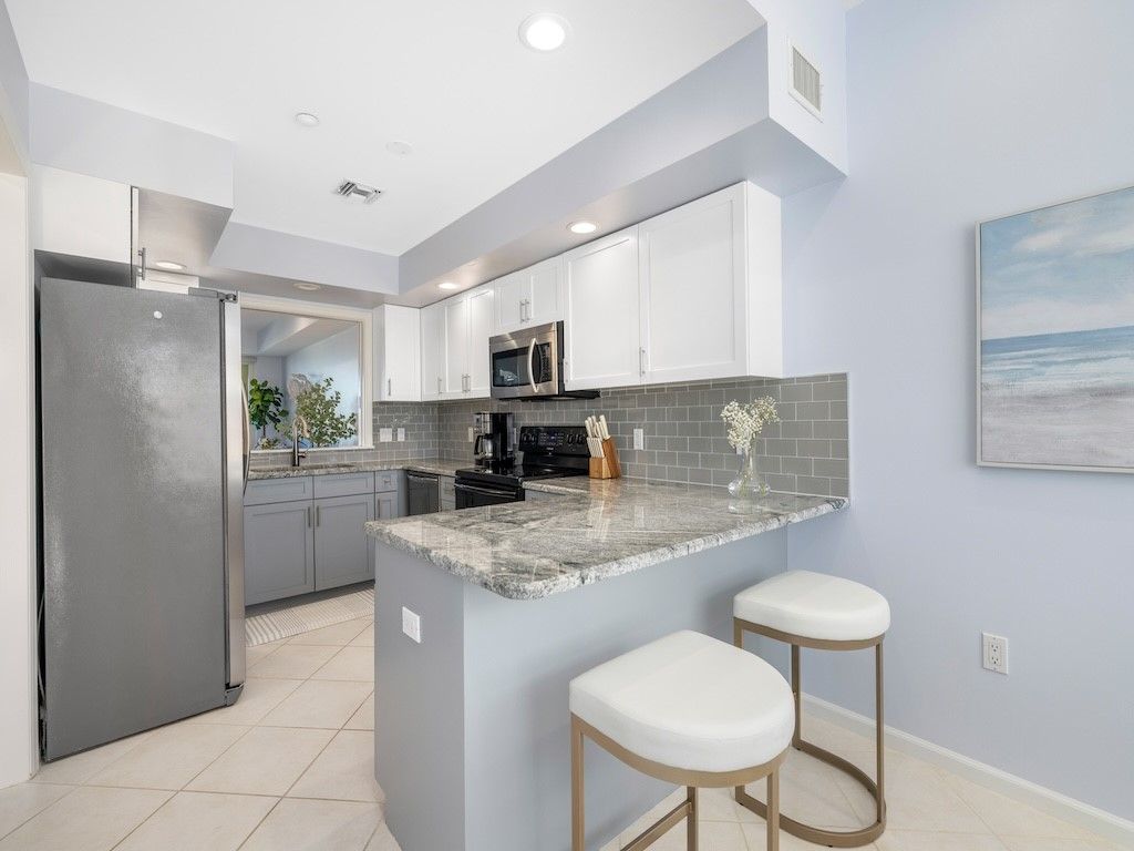 Beautifully renovated 2BR/2BA condo in gated Harbor Village at Grand Harbor. Features include new A/C, tile and luxury vinyl flooring, LED lighting, and a stunning kitchen with granite counters, custom pantry, and built-in bench. Spa-style master bath with walk-in shower and dual vanities. Enjoy marina and Intracoastal views from the balcony with impact sliders. Includes garage parking and access to resort amenities near beaches, dining, and shops in Vero Beach. Turn-key coastal living.