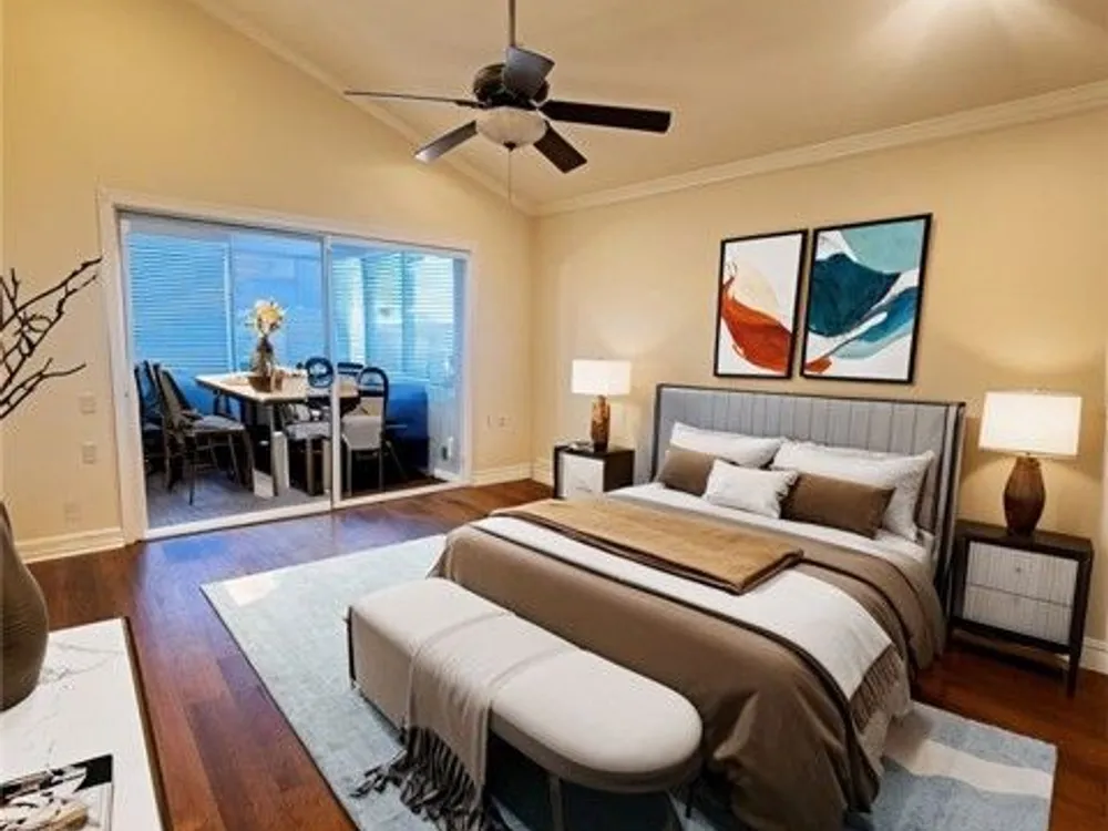 - Cathedral Ceiling(s), Ceiling Fan(s), Crown Molding, Granite Counters, High Ceilings, Recessed Lighting, Stone Counters, Unfurnished, Kitchen, Living Room, Bedroom on Main Level, Main Level Primary, Primary Bathroom, Primary Bedroom, Primary Suite