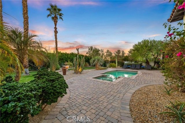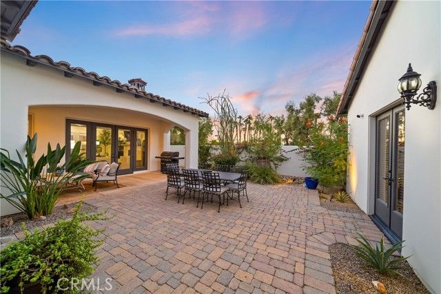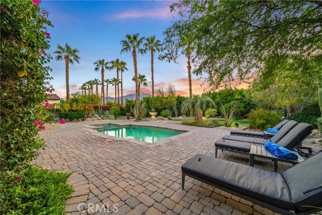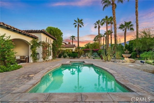 Nestled within the prestigious Norman Estates at PGA West, this meticulously maintained 3,040-square-foot home is a masterpiece of design and comfort. It offers an unparalleled lifestyle, combining modern luxury with the relaxed elegance of a resort. Every detail has been carefully considered to create a bright, airy, and inviting atmosphere, from the moment you step through the private, gated courtyard. The residence's high ceilings and thoughtfully designed open-concept layout fill every room with an abundance of natural light, creating a sense of spaciousness and tranquility. The living room serves as the heart of the home, featuring a cozy fireplace for cooler evenings and seamless access to both the front and back patios, ideal for effortless entertaining. A culinary dream, the kitchen boasts a large central island, warm wood cabinetry, and sleek granite countertops. It is equipped with top-of-the-line stainless steel appliances, including a gas cooktop, catering to the most discerning of chefs. Retreat to the secluded primary suite, which offers direct access to the serene backyard. The en-suite bathroom is a spa-like sanctuary, featuring a lavish soaking tub, a walk-in shower, dual vanities, and an expansive walk-in closet. The home includes two additional en-suite guest rooms, ensuring ultimate comfort and privacy for visitors. One is located within the main residence, while the other is a detached casita accessed from the central courtyard. The home features a very impressive custom 72 bottle wine wall for your favorite vintage. The exceptionally large backyard is a private desert oasis, complete with a refreshing pool and spa. Multiple covered and uncovered patios offer ample space for al fresco dining, sunbathing, or simply relaxing while enjoying the breathtaking mountain and sunset views. Beautifully landscaped grounds are set against a magnificent backdrop of the Santa Rosa Mountains, providing a truly spectacular setting for both relaxation and entertaining. As a resident, you will enjoy all the exclusive benefits of the La Quinta Fairways HOA, including pristine community landscaping, enhanced security, and the peaceful, meticulously maintained environment that defines this sought-after enclave. This home truly offers the epitome of upscale, single-level living in the highly desirable PGA West Greg Norman area. Welcome Home.