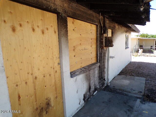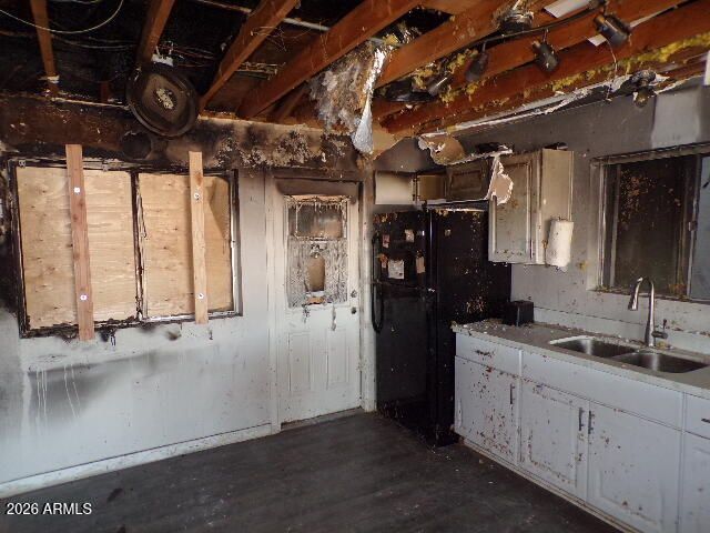 **HOUSE FIRE SALE** Home is Sold AS-IS, 2 Bedroom, 2 Bath Block Home with 1 Car Garage, North/South Exposure, Security Screen Door, Laundry Room inside Garage, Storage Shed, Good Sized Lot. 55+ Community, HOA is Voluntary.