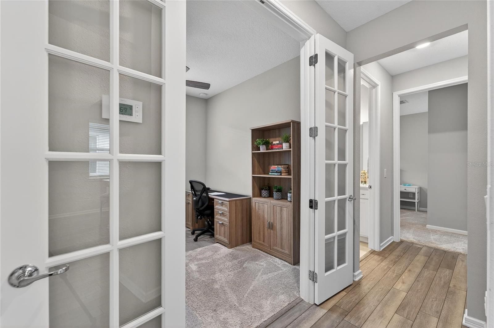 - Ceiling Fan(s), Eat-in Kitchen, In-Wall Pest Control, Open Floorplan, Smart Home, Solid-Wood Cabinets, Stone Counters, Thermostat, Walk-In Closet(s), Window Treatments