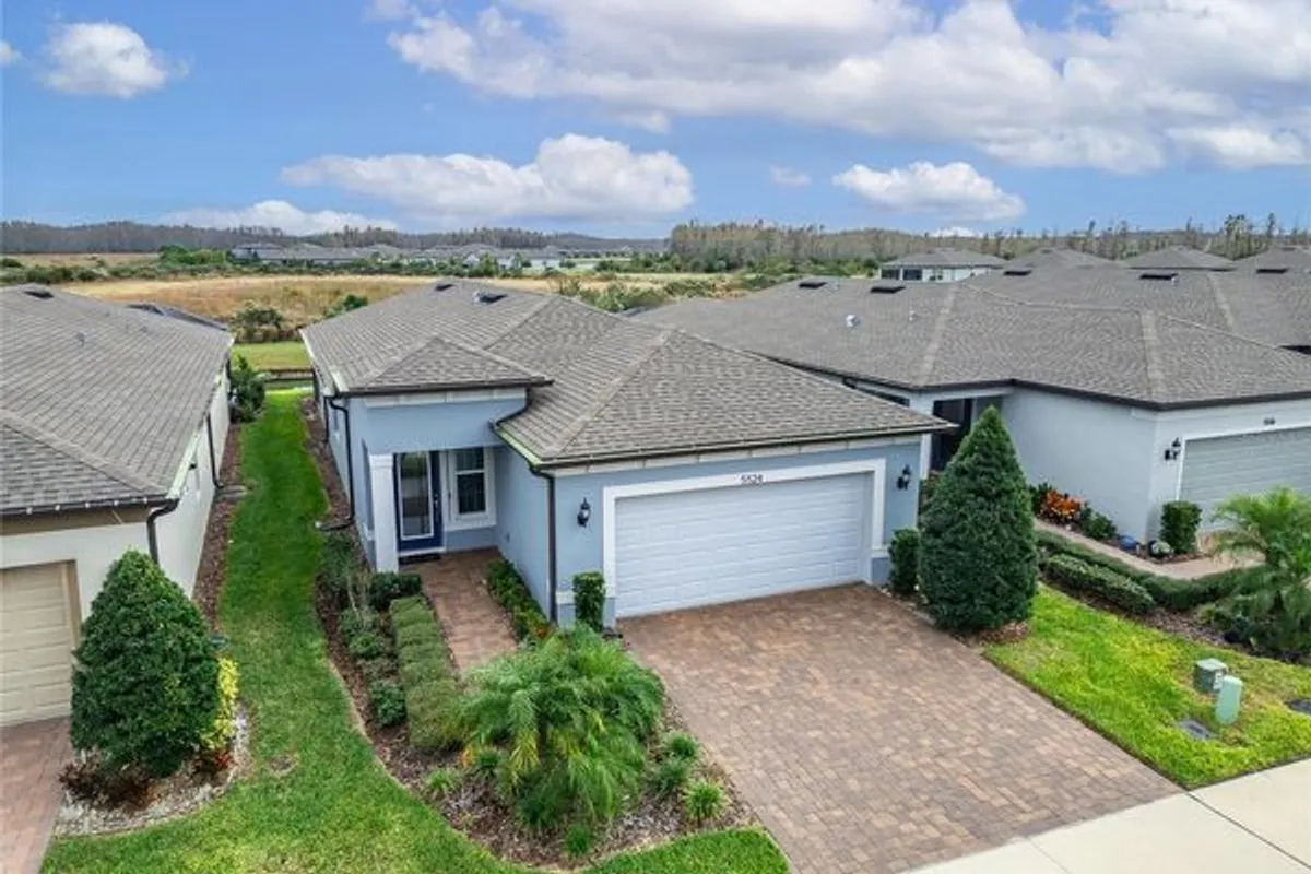 POND VIEW 3 bedroom home in ACTIVE ADULT 55+ community! Live your best life in the gated resort style community of Del Webb Bexley! You will love this three bedroom - two bathroom home (just like new - only used a few weeks each year for vacations) located on one of the quietest streets in the entire neighborhood! The kitchen is the Heart of the Home and will steal your breath away! You'll enjoy all of the storage space the tall 42 inch white cabinets provide. There is even crown molding, soft close drawers with double roll out trays and decorative end panels. GAS COOKING! Gorgeous gray glossy glass backsplash tile coordinates with the pendant lighting and stainless steel appliance package. The great room has a pocket sliding glass door that looks out over the brand new recently extended lanai where you can watch the sun rise. Enjoy the well manicured back yard and pond - there is nothing better than WATER VIEW! LED lighting package! UV light added to the A/C. Upgraded two tone paint enhances this homes beauty! There is a gas line stub out for easy outside grilling. Plumbed for a future water softener. As you enter the home from the large four foot extended two car epoxy floor garage, you will find a convenient laundry room that includes the washer and dryer. All three bedrooms have upgraded carpet and the 3rd bedroom with glass doors is currently being used as a home office/den. The primary has two large closets and is located in the back of the home where you wake up each morning to a view of the pond! Both bathrooms are spacious and have beautiful upgraded wall and floor tile. The HOA fee includes internet and cable, use and maintenance of state of the art amenities, landscaping within the common areas inside of the gates and maintenance of the landscape within your home site. The 19,000 square foot clubhouse offers residents a fitness center, ball room, multi-purpose rooms, clubs, planned activities, bistro and more! Outdoors you will enjoy bocce ball, pickle ball, a resort style zero entry heated pool with lap lanes and an additional walking resistance pool, spa, community garden and even dog park! A full time activities director and her staff will keep you as busy as you want to be!