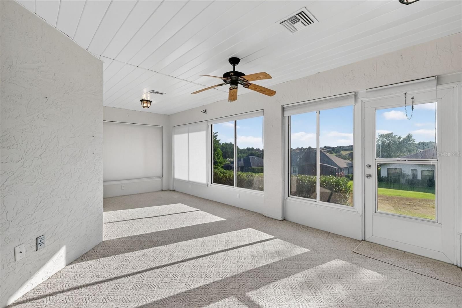 PRISTINE 3 BR / 2 BA HOME WITH FLORIDA ROOM, 2-CAR GARAGE & GOLF CART GARAGE IN THE GATED HARBOR HILLS GOLFING COMMUNITY! Welcome to Harbor Hills—an established, gated Lady Lake community celebrated for its rolling terrain, natural beauty, and peace of mind. Residents enjoy impressive optional Clubhouse amenities, including tennis, a fitness center, a junior Olympic–sized pool, a marina, and an 18-hole golf course with sweeping lake views, a pro shop, and a restaurant. Beautiful Lake Griffin—renowned for boating and top-tier fishing—is just moments away. From the moment you arrive, you'll appreciate the pristine curb appeal. Mature landscaping and a lush lawn add to the home's appeal. The roof was replaced in 2021, a newer, 4-ton heat pump in 2024, a water heater in 2025, and kitchen appliances in 2025. An expansive driveway with a parking pad, a side-entry 2-car garage, and a separate golf cart garage provide ample space for vehicles, guests, and hobbies. Step inside through the deep, covered front portico and discover a warm, welcoming interior. The open living and dining areas are perfect for hosting gatherings, enhanced by wood flooring, Plantation shutters, plant shelves, and double French doors leading to the expansive Florida room. The open-concept kitchen, dinette, and family room create the heart of the home—light-filled, comfortable, and ideal for everyday living. The kitchen offers beautiful cabinetry, ample storage drawers, a cabinet pantry, plus a full walk-in pantry. A breakfast bar and cozy dinette make casual dining or buffet-style entertaining effortless. A split-bedroom floor plan provides excellent privacy. The spacious primary suite features a tray ceiling, abundant natural light, and an en-suite bath with dual sinks, a large walk-in shower, and a generous closet. Two guest bedrooms share a well-appointed hallway bath with a tub/shower combination. A convenient double-door laundry closet with upper cabinetry adds additional storage. The expansive rear Florida room with a mini-split AC and heat unit—offers incredible flexibility year-round. Enjoy breezy meals with the windows open on cool evenings, or transform the space into a game room, fitness studio, home office, or creative retreat. Ideally situated near dining, retail, medical facilities, parks, and everyday conveniences—including The Villages—this home offers comfort, beauty, and a truly exceptional location. A lovely home in a remarkable community—ready to welcome its next owners.