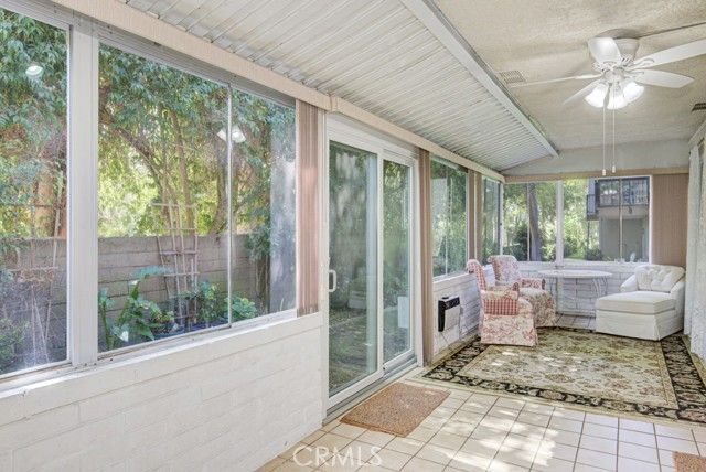 This 2bd/2ba Villa Lugano (1188 sq. ft.) is located in Laguna Woods Village - the premier 55+ active community in Orange County. The Village is near Laguna Beach and offers many great amenities such as: 27-hole golf course, tennis courts, five swimming pools, three fitness centers, seven clubhouses including Clubhouse 4 offering amazing classes in art, ceramics, wood shop, jewelry-making, and sewing, and much more. This home is a downstairs end unit with a large sunroom providing additional living space. A fireplace is showcased in the spacious living room and the dining room is large enough for a full size table and hutch. There are other great features: double-paned doors and windows, central ac/heat system, crown moulding, ceiling fans and a full size washer/dryer. There are no steps to climb - a ramp takes you to the home. There is also a patio area right outside your front outdoor for additional living space and entertaining- an opportunity to meet your neighbors. A detached single-car garage with storage cabinets with a driveway in front provides parking for your vehicles. Laguna Woods Village is a great place to live. Come and see your new home.