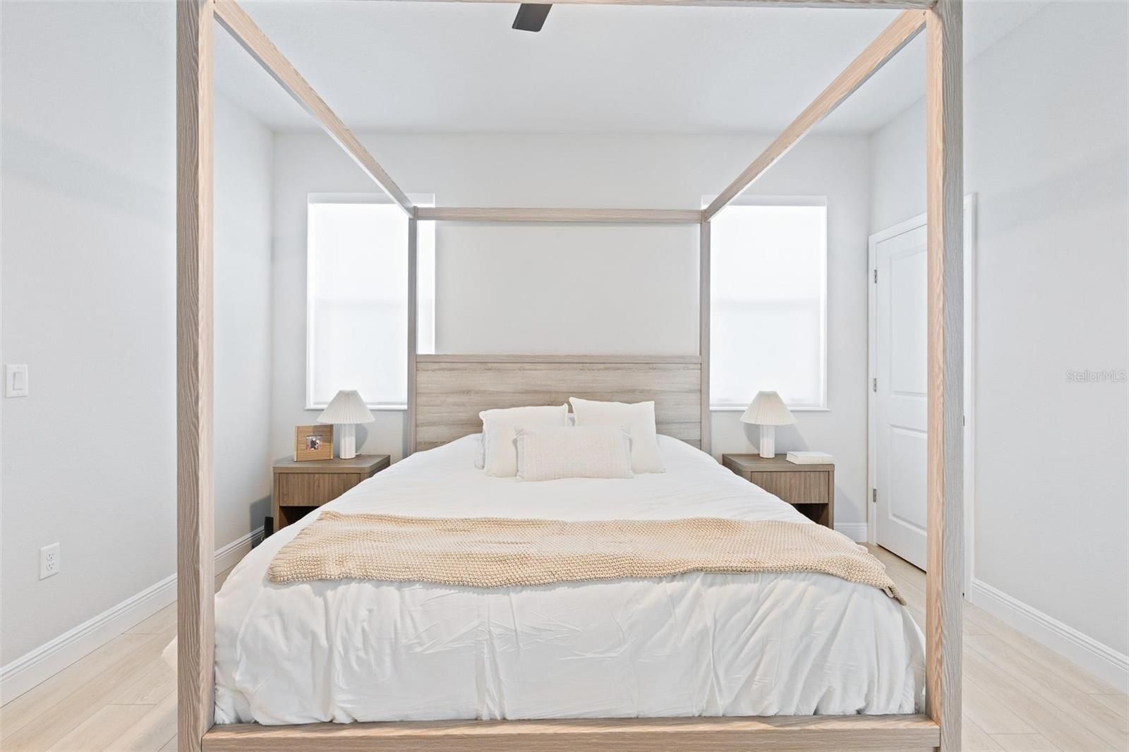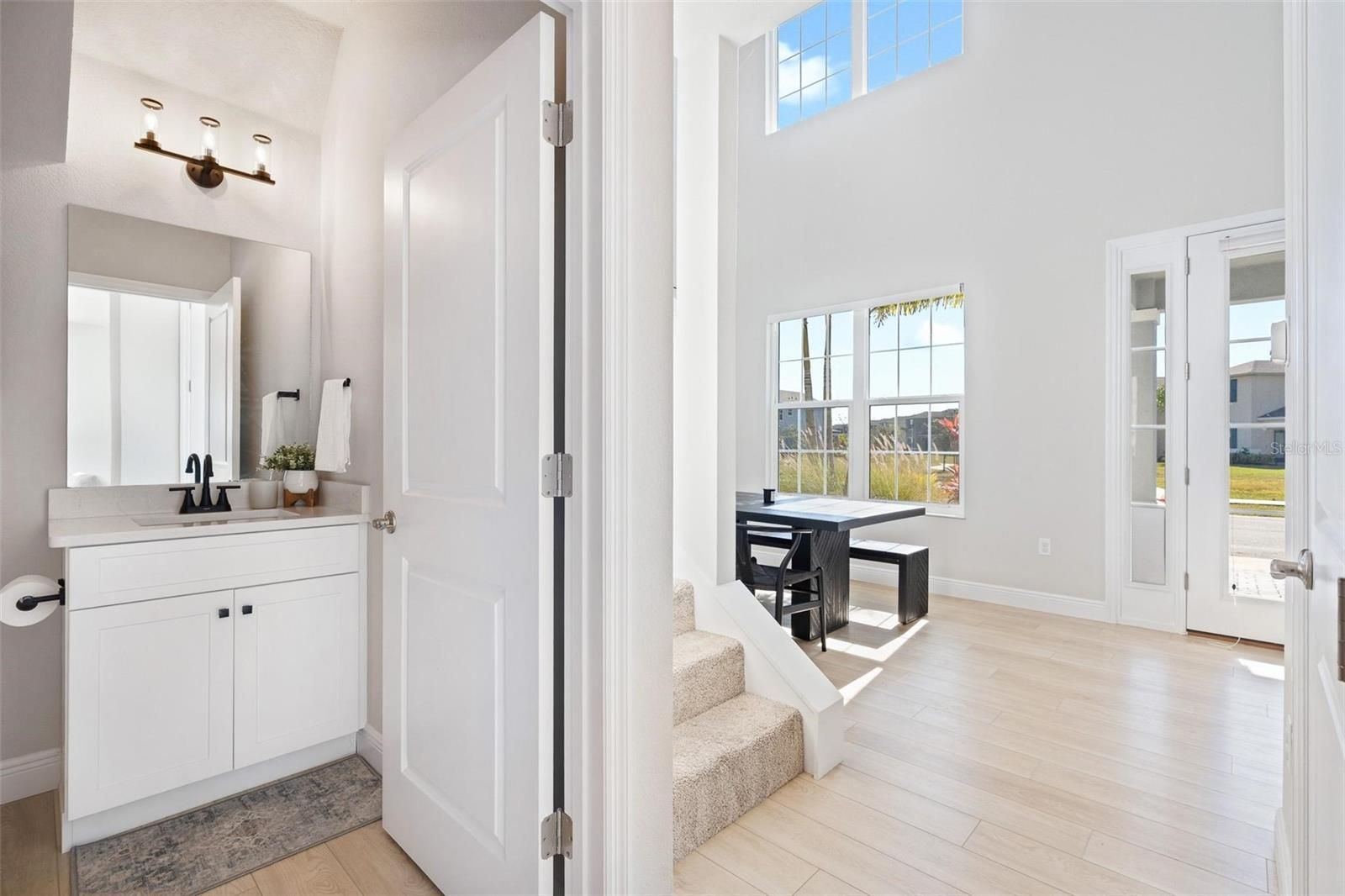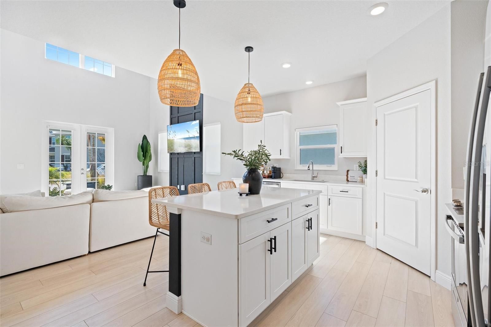 Welcome to 553 Venetian Palms Blvd, a refined Johnson Group Key West model offering effortless, resort-style living in the heart of Venetian Bay. $10,000.00 TOWARDS BUYERS CLOSING COST WITH FULL PRICE OFFER! With soaring ceilings, abundant natural light, and a thoughtfully designed floor plan, this home delivers comfort, elegance, and everyday ease, perfect for seasonal residents or those seeking a simplified Florida lifestyle! The open-concept kitchen and living space features quartz countertops, stainless steel appliances, recessed lighting, eat in kitchen space and modern finishes designed for both entertaining and relaxed daily living. The main-floor primary suite provides privacy and convenience, while additional upstairs space is ideal for guests, hobbies, or a home office. Room for a nice family dinner resides on the main level as well. Up the stairs brings us to the best view in the home. A birds eye view of that place you will call home. Additional real estate upstairs includes the perfect loft, idea for an office/sitting space plus beds 2/3 with guest bathroom with dual sinks, shower/tub combo and sleek finishes. The only carpet in the home are bedrooms 2/3. Enjoy true low-maintenance living with full lawn care included, allowing you to spend more time enjoying the lifestyle instead of upkeep. The 240V electric plug in the 2 car garage adds future-ready convenience, and the community’s golf-cart-friendly design makes getting around easy and enjoyable. Located in Venetian Bay in New Smyrna Beach, residents enjoy championship golf, on-site restaurants and shops, tennis and pickleball courts, scenic walking and biking paths, and a vibrant town center—all just minutes from the beach, historic Canal Street, and everyday conveniences. This is refined coastal living with a lock-and-leave feel.