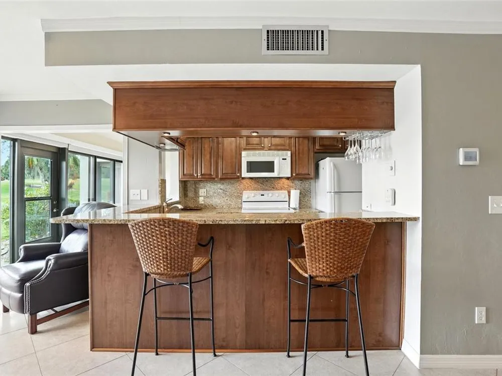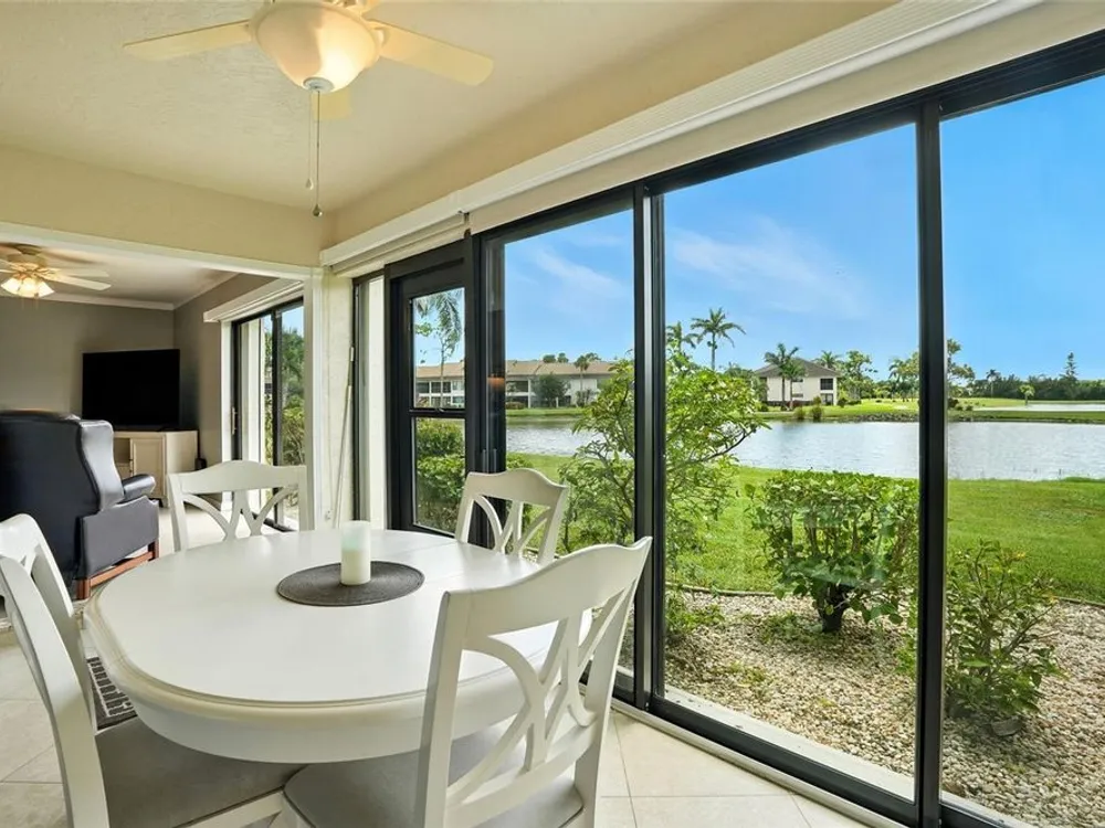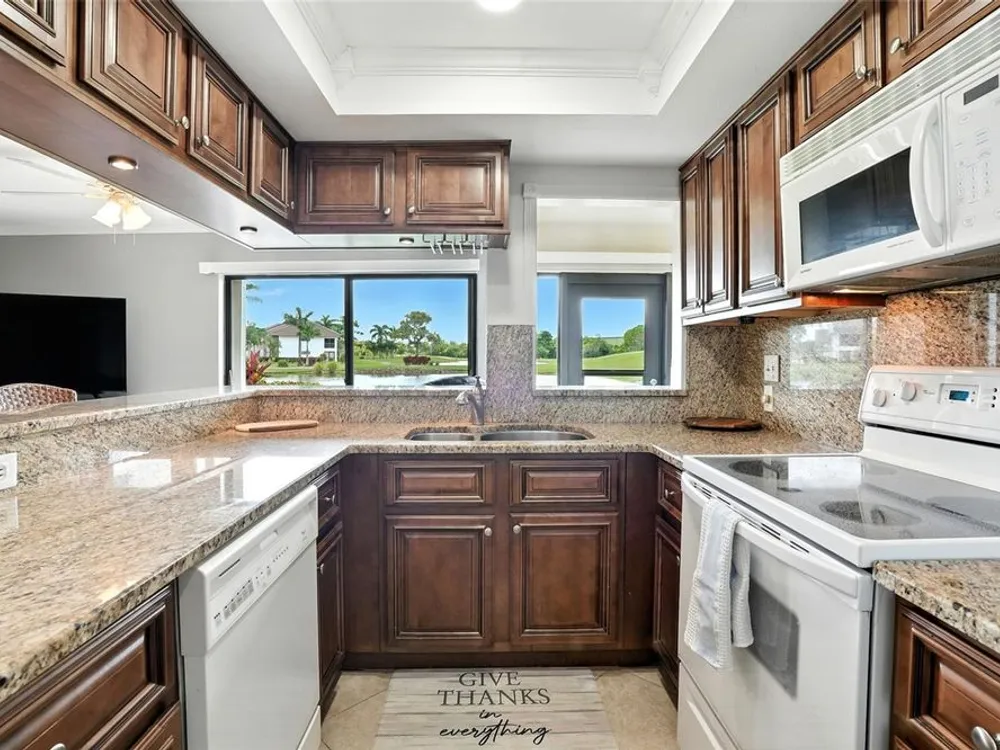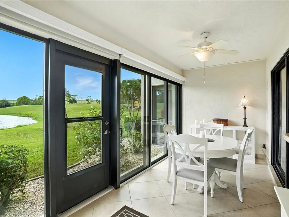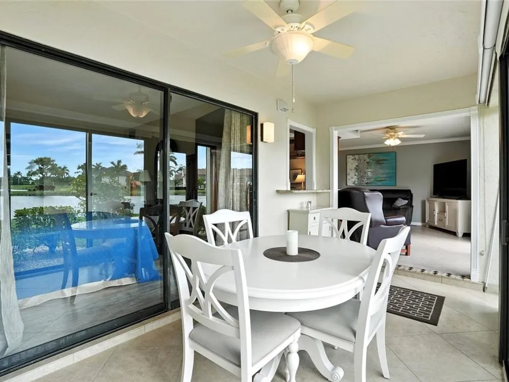 NO DAMAGE OR FLOODING FROM ANY HURRICANES!! Nestled in the heart of Fort Myers’ prestigious Hideaway Country Club, this radiant Merion Village condo beckons with unparalleled elegance and serene vistas. Awake each morning to breathtaking, unobstructed views of a glistening twin lake and the lush, rolling fairways of an award-winning 18-hole golf course, masterfully designed to inspire. This first-floor sanctuary boasts a versatile sunroom/solarium, bathed in natural light, offering year-round comfort and additional living space—perfect for morning coffee or evening relaxation. Fortified with automatic roll-down hurricane shutters on all sliding doors, this home offers peace of mind and proudly emerged unscathed from Hurricane Ian and all prior storms. Step inside to discover a sophisticated neutral palette, ready for your personal touch, complemented by rich wood cabinetry that infuses warmth into the gourmet kitchen. Granite countertops cascade seamlessly paired with matching appliances and abundant storage for effortless entertaining. Both bathrooms exude luxury with granite finishes, the guest bath elevated by matching wood cabinetry, while the expansive primary suite offers a generous walk-in closet for ultimate convenience. An in-unit washer/dryer ensures daily ease, leaving more time to indulge in the resort-style amenities that define Hideaway living: championship golf, pristine tennis courts, a sparkling community pool, a state-of-the-art fitness center, and a stunning new clubhouse featuring a pro shop, restaurant, and bar. Just minutes from RSW Airport, premier shopping, eclectic dining, a modern movie theater, and the renowned Barbara B. Mann Performing Arts Center, this condo is a gateway to the vibrant Fort Myers lifestyle. Seize the chance to own a slice of paradise in one of the city’s most coveted communities—where luxury meets tranquility at its finest and in Desirable Zone "X".