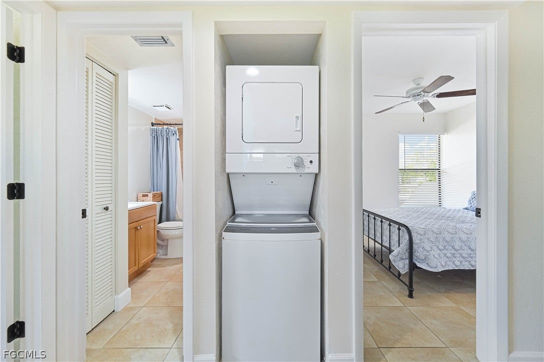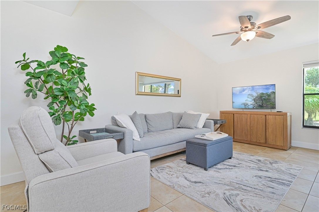 Welcome to the Hideaway Country Club. The community offers resort-style amenities, including a vibrant clubhouse, on-site restaurant, swimming pool, fitness center, tennis courts, golf course, and endless activities. This bright, open second floor condo overlooks a stunning golf course. Come check out this spacious 2 bedrooms, 2 bathrooms unit with vaulted ceilings, granite countertops, and title throughout, with neutral tones creating a warm and cozy feeling. Your covered parking space is only steps away. Golf course memberships are voluntary. The Hideaway is nestled centrally in Fort Myers, just off 41 with easy access to a variety of shops, restaurants, and entertainment venues. If you are looking for the security of a gated community, this could be your home.