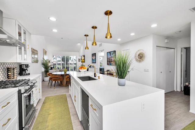This home has been opened up to create a one of a kind, architecturally redesigned, modern masterpiece. Fully furnished including art. Ready to move right in! Expansive golf course and mountain views from the 11th hole of the Private Palmer golf course. Light and bright with soaring ceilings, wet bar with wine cooler, all new cabinets, stone countertops and beautiful tile plank floors.Large front patio off the kitchen features BBQ area and sensational mountain views. Back terrace is newly fenced and sits right on the golf course.Two primary suites with spa like elegance. Just steps away from a community pool. Air conditioned garage with lots of storage and epoxy flooring. Turn Key!!HOA includes cable, Internet roof, exterior paint, landscaping and earthquake insurance. One of the finest golf communities in the desert. Enjoy the luxury of PGA West. Your perfect oasis.. It's a MUST SEE.