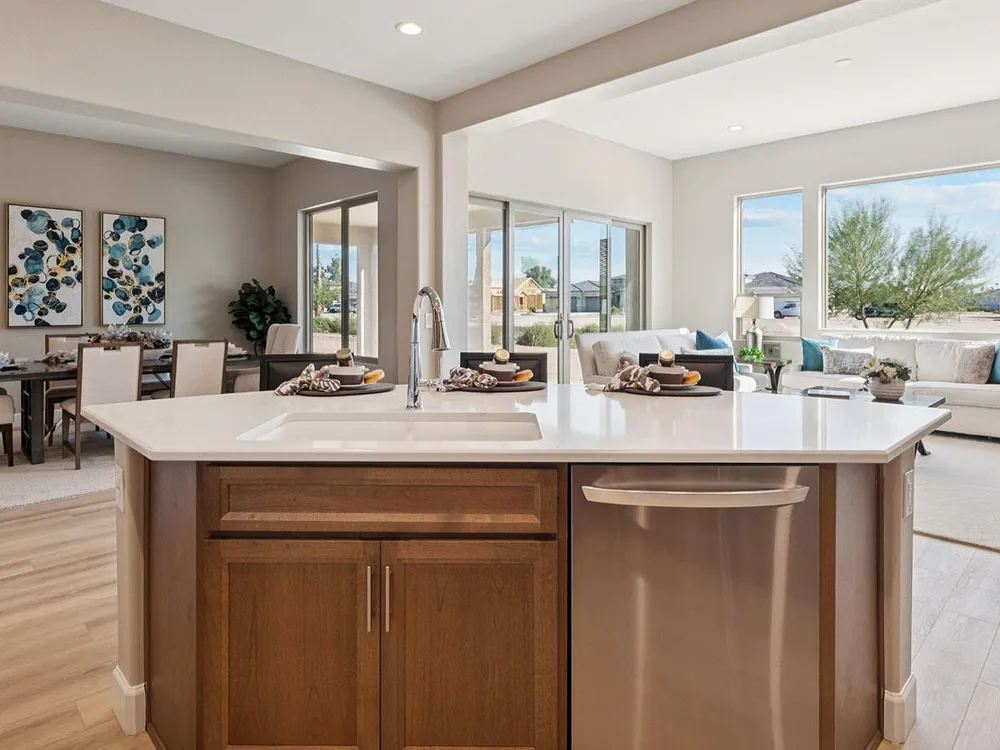 The home is complete and ready for an immediate move in, is one of our most popular floor plans. You'll appreciate the beautifully upgraded and well thought out finishing touches selected by our design team. Robson Ranch was voted one of the top 50 best master planned communities in the county by Where to Retire magazine. Robson Ranch is centrally located between Phoenix and Tucson and offers world-Class, resort-style amenities including: New Clubhouse w/Ballroom/Auditorium, Championship Golf, Heated Indoor and Outdoor Pools, 16 Pickleball Courts, Tennis, Fitness & Creative Arts Centers, Restaurant, Softball Fields, Dog Park & Much more.