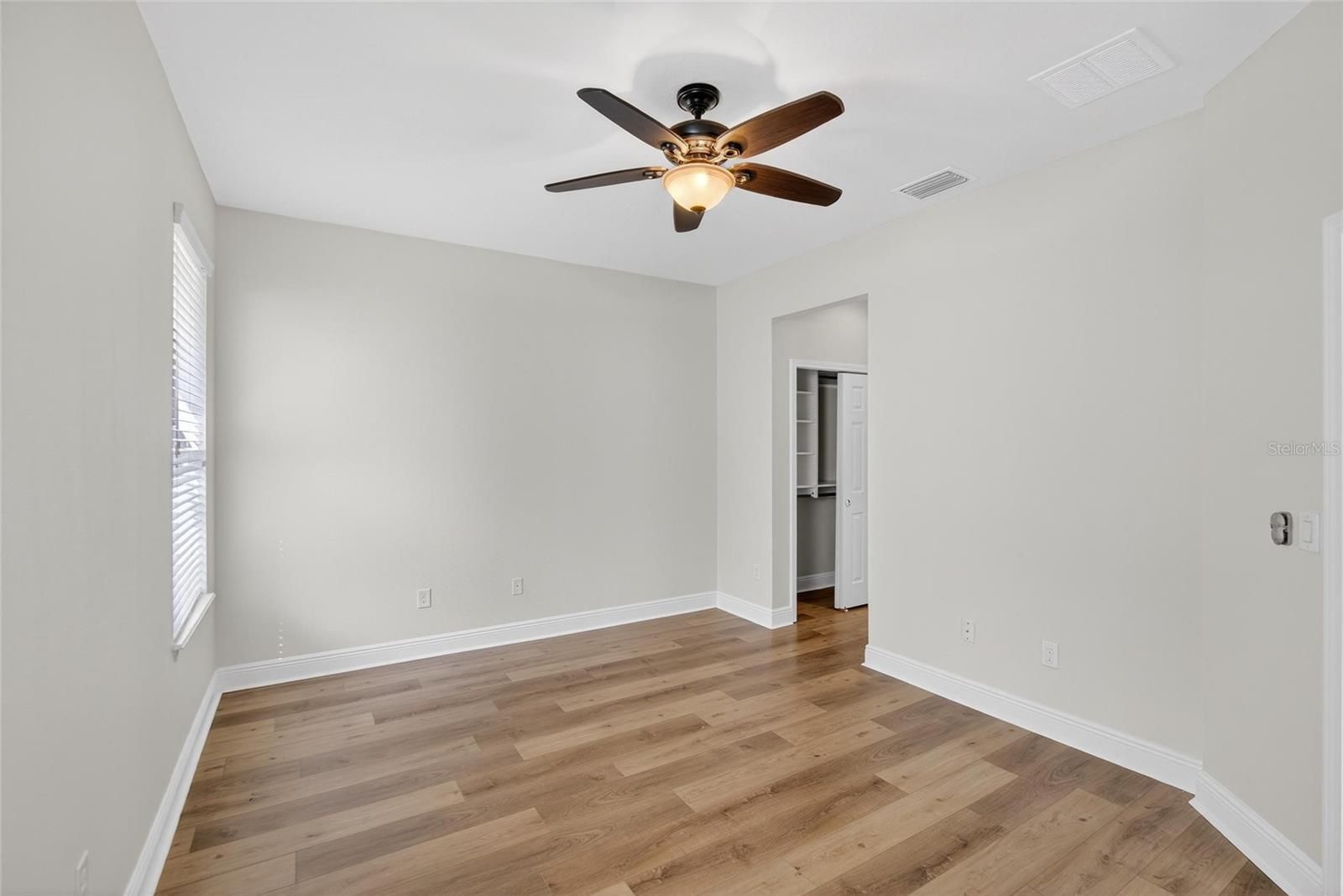 - Ceiling Fan(s), In-Wall Pest Control, Living/Dining Room, Main Level Primary, Solid Surface Counters, Solid-Wood Cabinets, Split Bedrooms, Thermostat, Walk-In Closet(s), Window Treatments