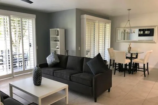 The BEST PRICED 3 BEDROOM at PGA West! Get ready to fall in love with this vibrant, upgraded ground-level condo perfectly positioned on the 5th fairway of the Nicklaus Tournament Course--home of the American Express Golf Tournament! Enjoy front-row seating for the action and soak in jaw-dropping western mountain and fairway views right from your private back patio.This 3-bedroom, 2-bath gem is full of energy and style, featuring fresh modern paint, granite countertops in the kitchen and baths, plantation shutters, ceiling fans, and a newer HVAC system to keep things cool year-round.Whether you're hosting guests or enjoying a quiet morning coffee, this space is built for the ultimate desert lifestyle.Includes a spacious 2-car detached garage with plenty of room. Just mere steps to one of the many pools & spas. Offered fully furnished, it's truly move-in ready--just bring your toothbrush!Don't miss this rare opportunity to own a slice of golf course paradise!