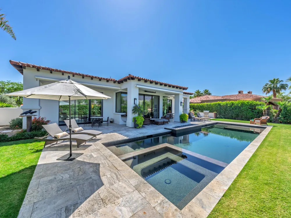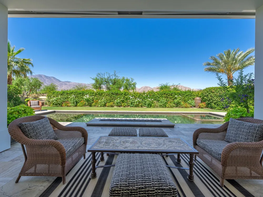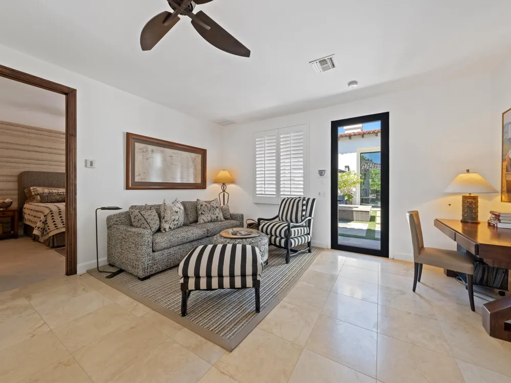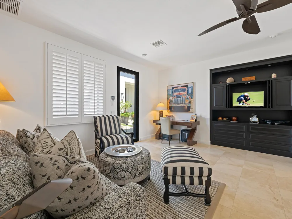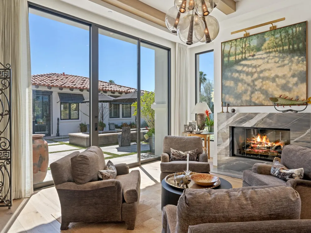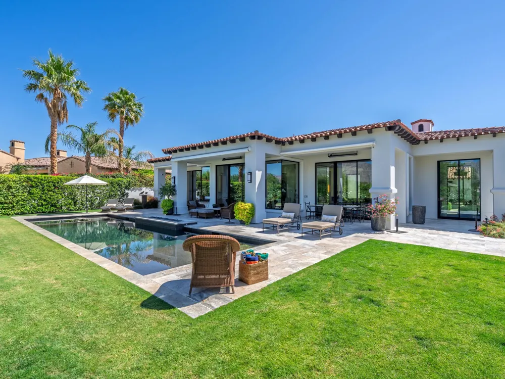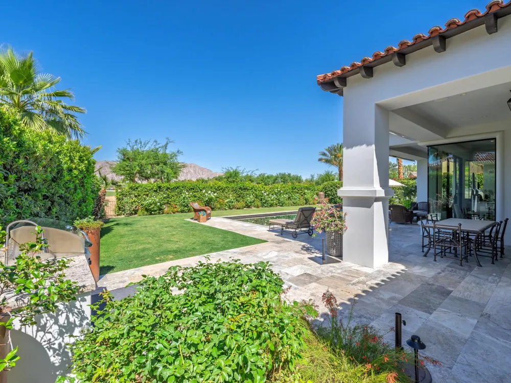 Architectural Masterpiece in PGA West Greg Norman - Rebuilt from the Ground Up and Finished in 2022. Come inside a home so exquisite it belongs in the pages of Architectural Digest. Located on a premier lot in the prestigious Greg Norman enclave of PGA West, this one-of-a-kind estate was completely rebuilt from the foundation up with no expense spared. Every inch of this residence reflects thoughtful design and uncompromising quality—an achievement rarely seen in the desert. From the moment you enter, you're greeted by soaring ceilings, impeccable finishes, and a layout that blends modern sophistication with comfort. The floor-to-ceiling glass wine cellar serves as a dramatic focal point, while expansive Fleetwood doors and windows blur the lines between indoors and out. No detail was overlooked—from the Savant smart home system and Lutron lighting, to solar panels, retractable awnings, outdoor heaters, and more. The estate also features a spacious two-room casita, perfect for guests or extended stays, complete with its private laundry room, offering exceptional comfort and privacy. The chef's kitchen, spa-like baths, and custom cabinetry throughout are all crafted to the highest standards. Whether entertaining or enjoying a quiet evening, every space has been designed to impress and inspire. Outdoors, discover a private oasis framed by breathtaking mountain views. Unwind around the custom firepit, enjoy al fresco dining at the built-in BBQ, or pluck fresh fruit from your Meyer lemon tree. With extreme privacy and thoughtfully curated landscaping, this retreat is a true sanctuary. Offered furnished per inventory, this home is move-in ready for immediate enjoyment. If you are searching for the finest house in PGA West, with a level of craftsmanship and design rarely found, this is it. Inquire for more details and an in depth feature list. PGA West is know around the world for it's 6 top notch golf course and finest amenities including 3 clubhouses, state of the art fitness center, Tennis/Pickle ball courts, bocce, restaurants, & so much more.