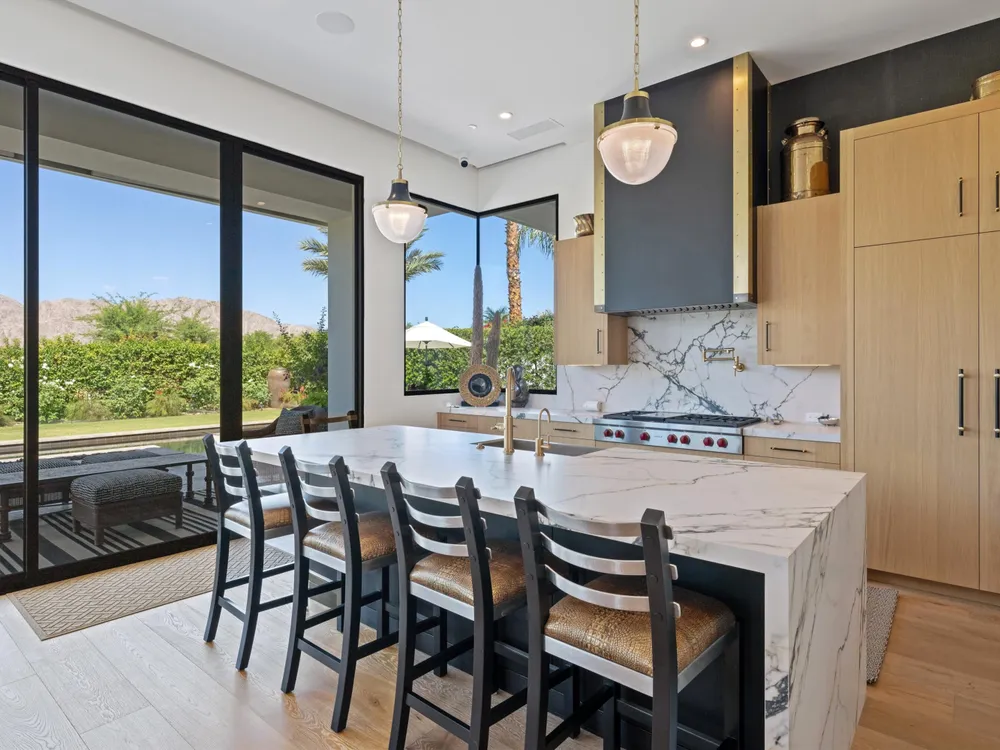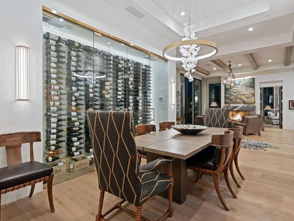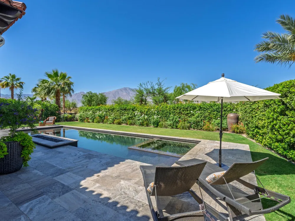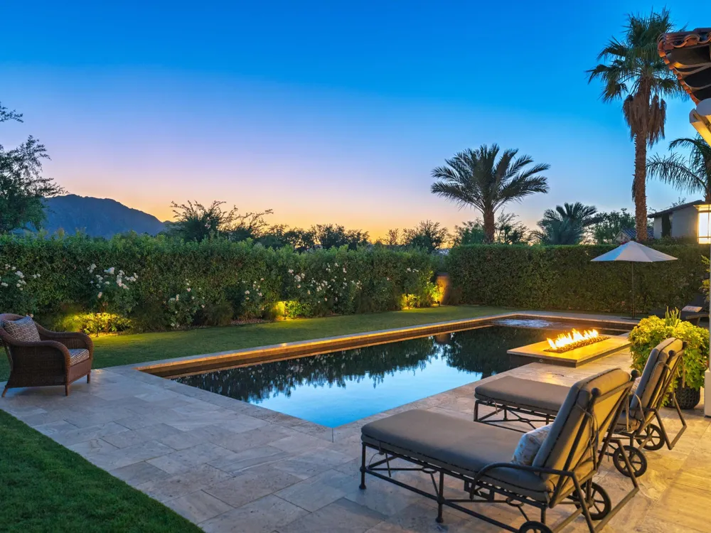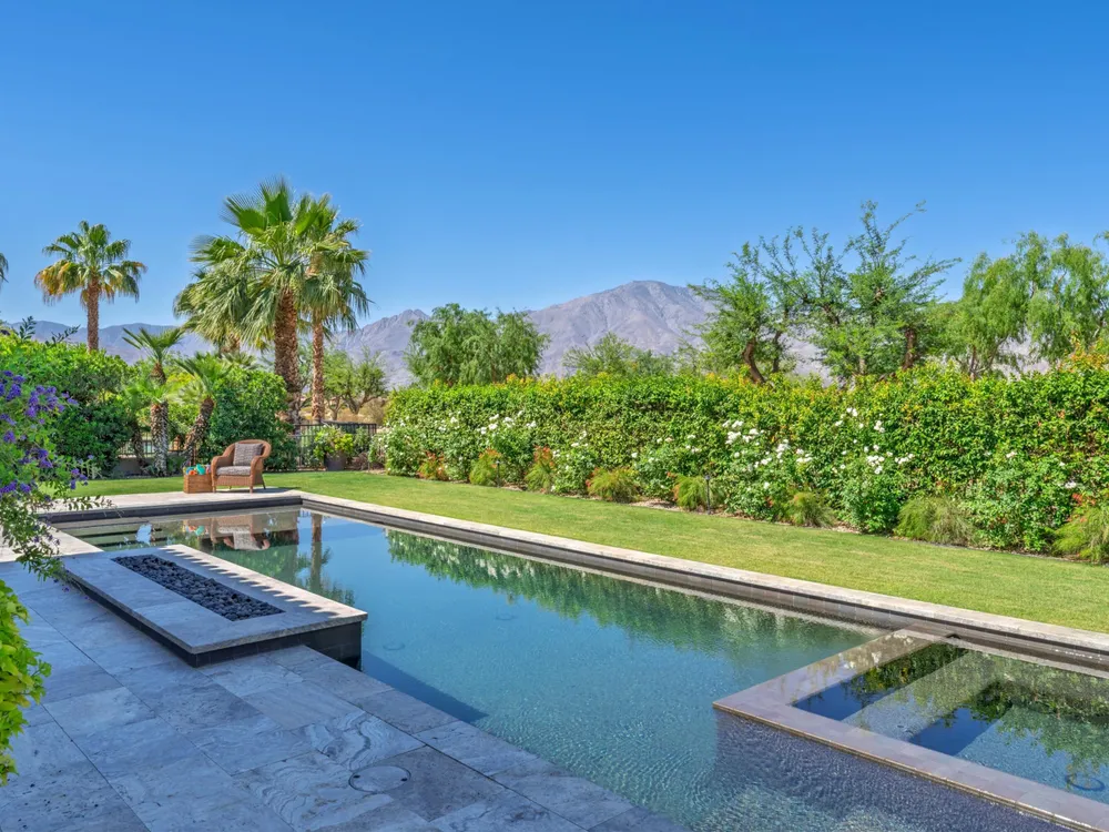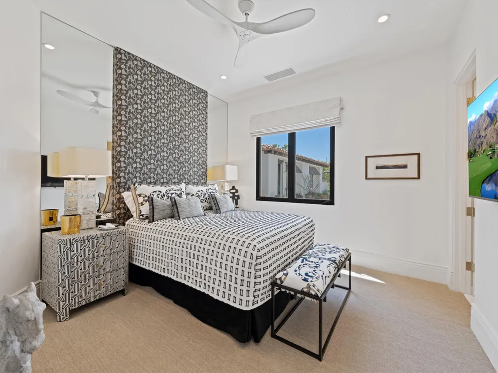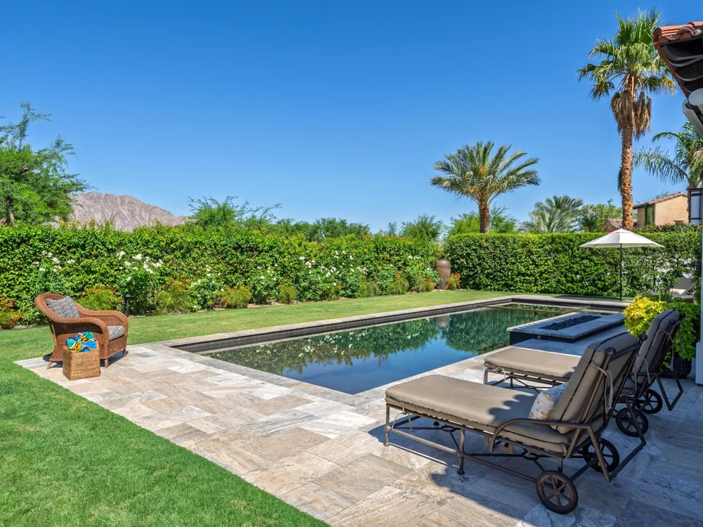 Architectural Masterpiece in PGA West Greg Norman - Rebuilt from the Ground Up and Finished in 2022. Come inside a home so exquisite it belongs in the pages of Architectural Digest. Located on a premier lot in the prestigious Greg Norman enclave of PGA West, this one-of-a-kind estate was completely rebuilt from the foundation up with no expense spared. Every inch of this residence reflects thoughtful design and uncompromising quality—an achievement rarely seen in the desert. From the moment you enter, you're greeted by soaring ceilings, impeccable finishes, and a layout that blends modern sophistication with comfort. The floor-to-ceiling glass wine cellar serves as a dramatic focal point, while expansive Fleetwood doors and windows blur the lines between indoors and out. No detail was overlooked—from the Savant smart home system and Lutron lighting, to solar panels, retractable awnings, outdoor heaters, and more. The estate also features a spacious two-room casita, perfect for guests or extended stays, complete with its private laundry room, offering exceptional comfort and privacy. The chef's kitchen, spa-like baths, and custom cabinetry throughout are all crafted to the highest standards. Whether entertaining or enjoying a quiet evening, every space has been designed to impress and inspire. Outdoors, discover a private oasis framed by breathtaking mountain views. Unwind around the custom firepit, enjoy al fresco dining at the built-in BBQ, or pluck fresh fruit from your Meyer lemon tree. With extreme privacy and thoughtfully curated landscaping, this retreat is a true sanctuary. Offered furnished per inventory, this home is move-in ready for immediate enjoyment. If you are searching for the finest house in PGA West, with a level of craftsmanship and design rarely found, this is it. Inquire for more details and an in depth feature list. PGA West is know around the world for it's 6 top notch golf course and finest amenities including 3 clubhouses, state of the art fitness center, Tennis/Pickle ball courts, bocce, restaurants, & so much more.