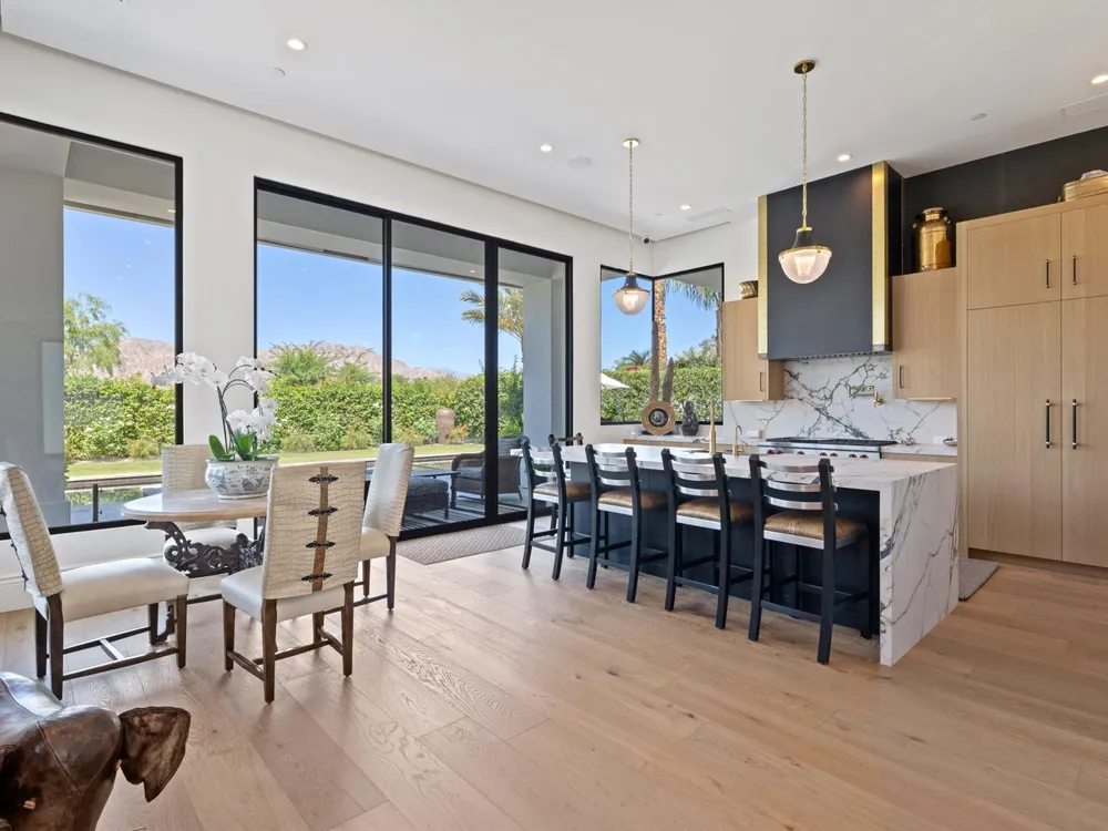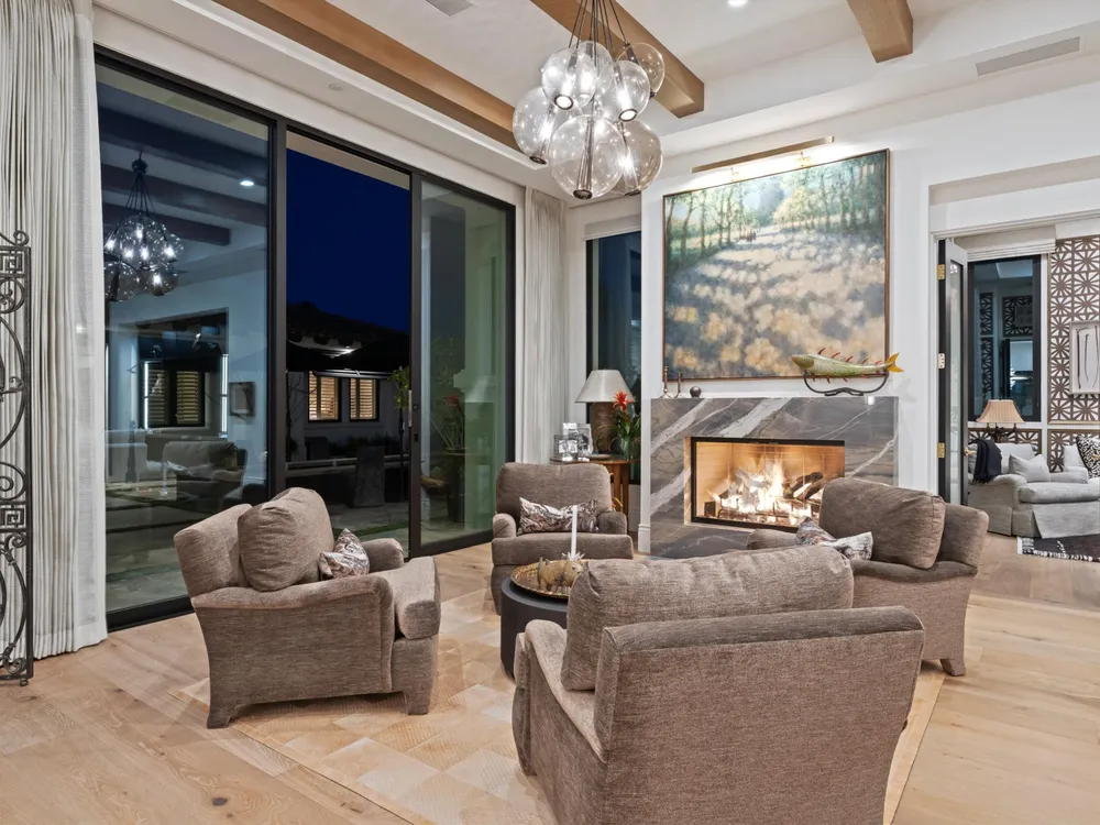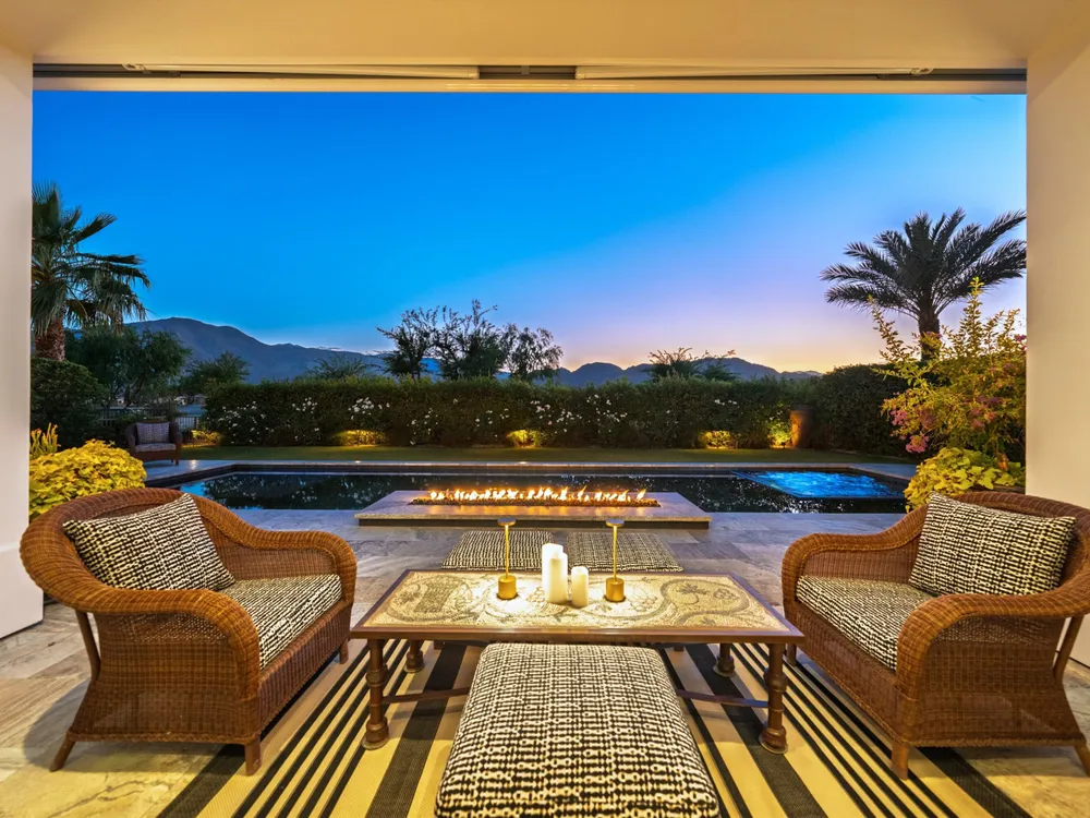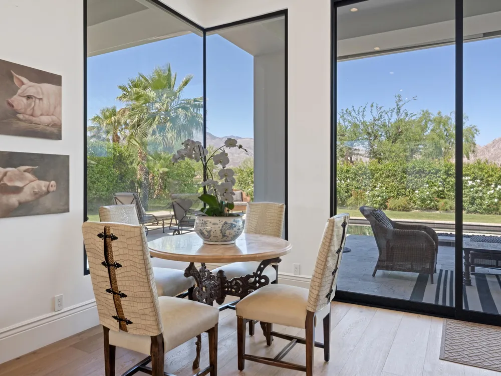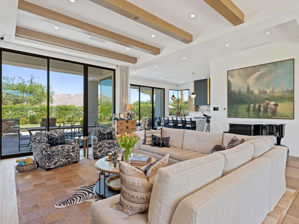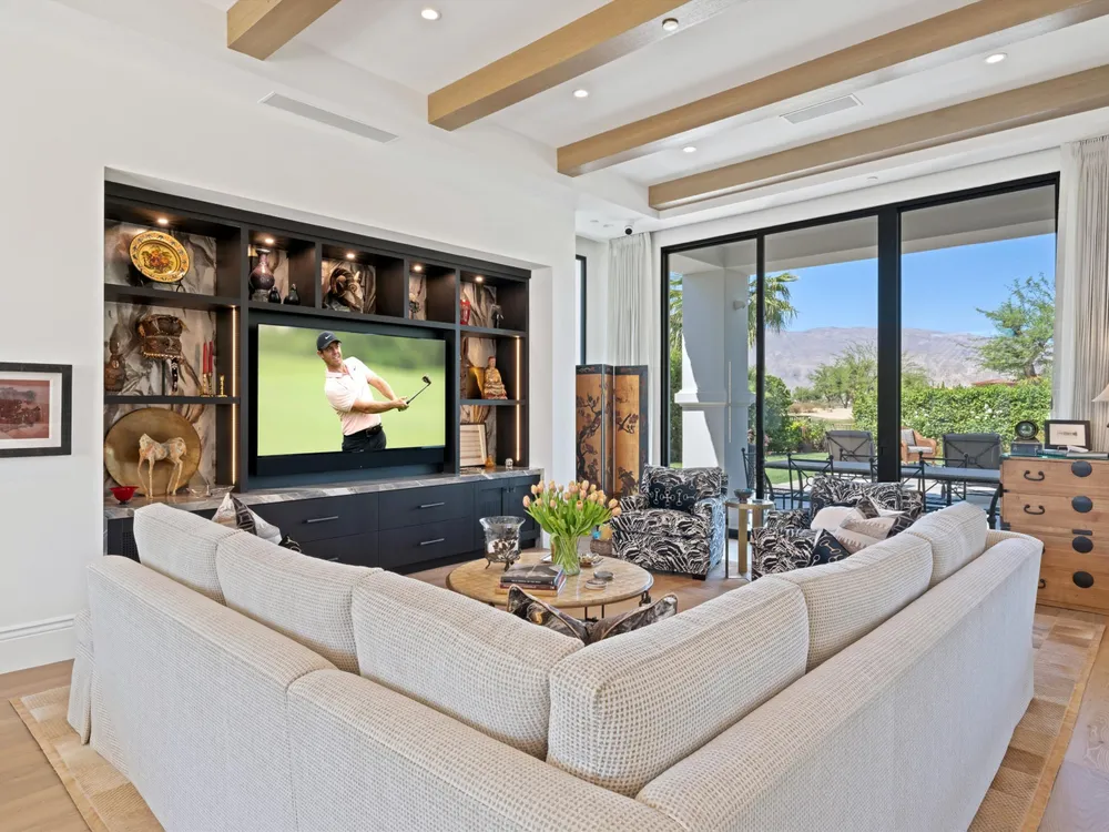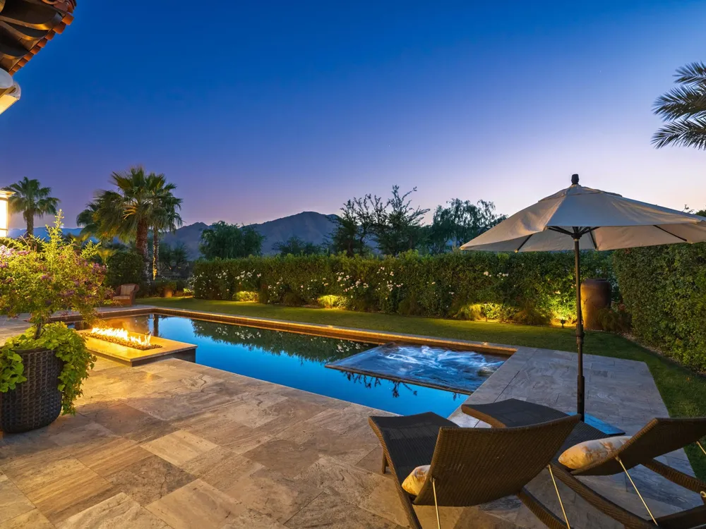 Architectural Masterpiece in PGA West Greg Norman - Rebuilt from the Ground Up and Finished in 2022. Come inside a home so exquisite it belongs in the pages of Architectural Digest. Located on a premier lot in the prestigious Greg Norman enclave of PGA West, this one-of-a-kind estate was completely rebuilt from the foundation up with no expense spared. Every inch of this residence reflects thoughtful design and uncompromising quality—an achievement rarely seen in the desert. From the moment you enter, you're greeted by soaring ceilings, impeccable finishes, and a layout that blends modern sophistication with comfort. The floor-to-ceiling glass wine cellar serves as a dramatic focal point, while expansive Fleetwood doors and windows blur the lines between indoors and out. No detail was overlooked—from the Savant smart home system and Lutron lighting, to solar panels, retractable awnings, outdoor heaters, and more. The estate also features a spacious two-room casita, perfect for guests or extended stays, complete with its private laundry room, offering exceptional comfort and privacy. The chef's kitchen, spa-like baths, and custom cabinetry throughout are all crafted to the highest standards. Whether entertaining or enjoying a quiet evening, every space has been designed to impress and inspire. Outdoors, discover a private oasis framed by breathtaking mountain views. Unwind around the custom firepit, enjoy al fresco dining at the built-in BBQ, or pluck fresh fruit from your Meyer lemon tree. With extreme privacy and thoughtfully curated landscaping, this retreat is a true sanctuary. Offered furnished per inventory, this home is move-in ready for immediate enjoyment. If you are searching for the finest house in PGA West, with a level of craftsmanship and design rarely found, this is it. Inquire for more details and an in depth feature list. PGA West is know around the world for it's 6 top notch golf course and finest amenities including 3 clubhouses, state of the art fitness center, Tennis/Pickle ball courts, bocce, restaurants, & so much more.