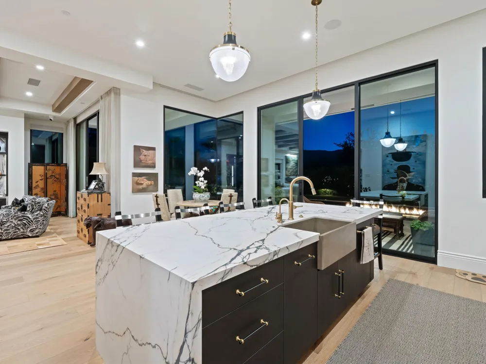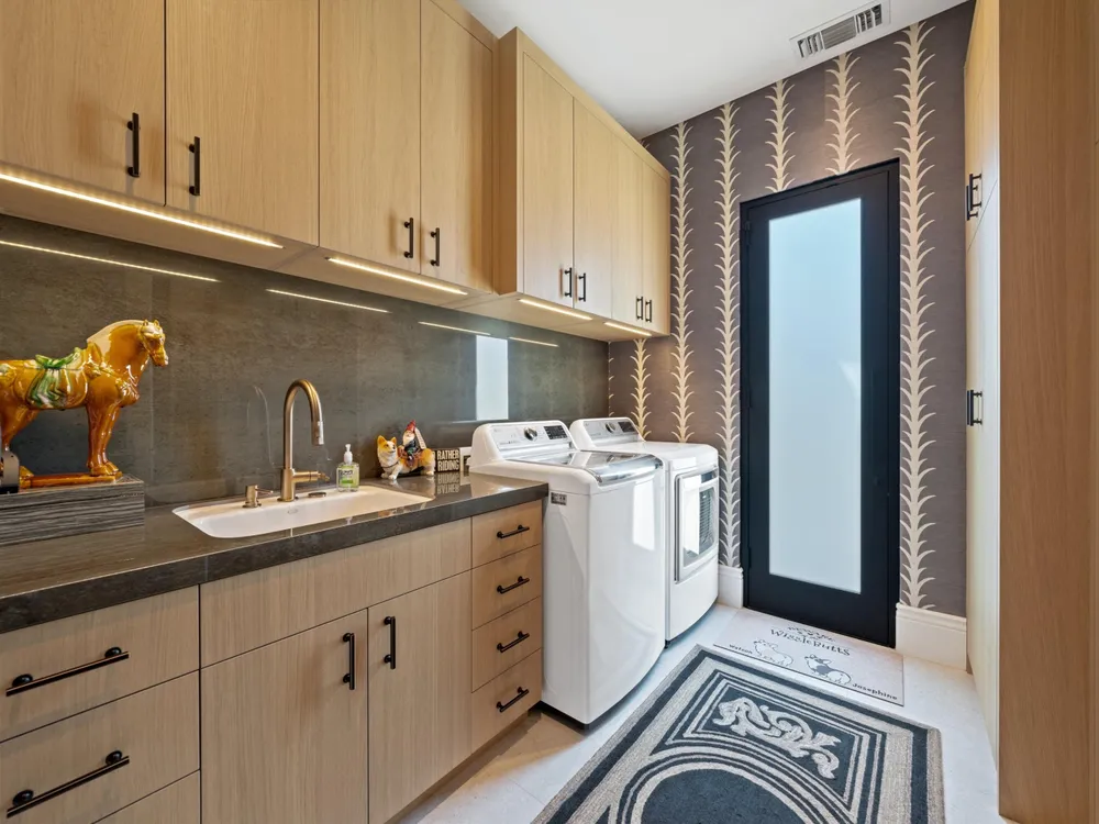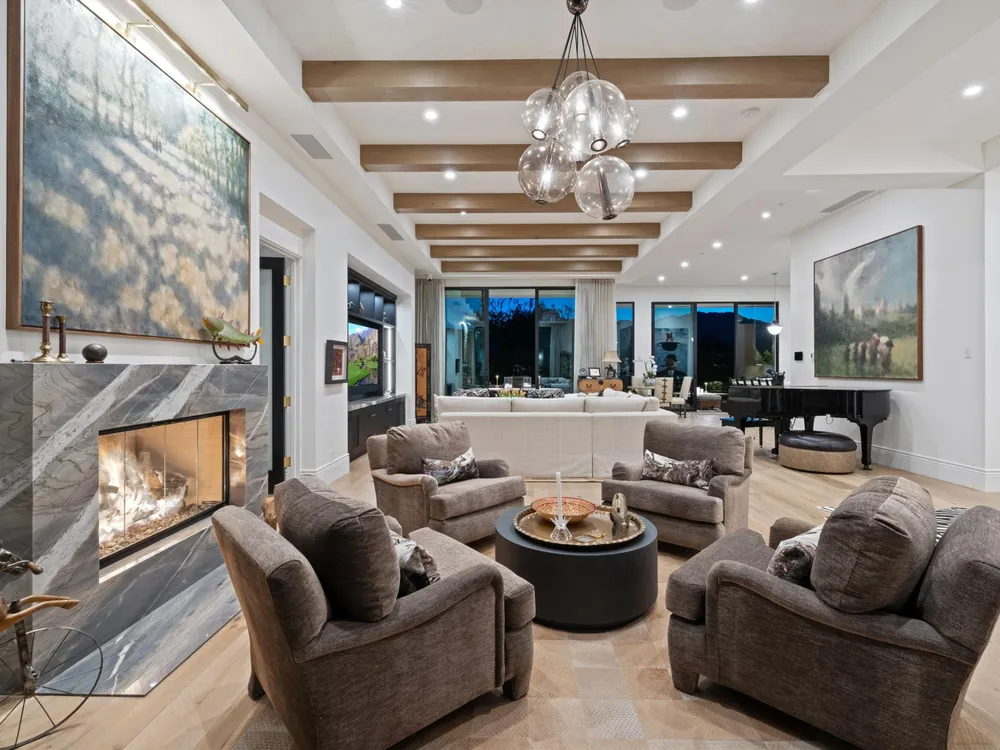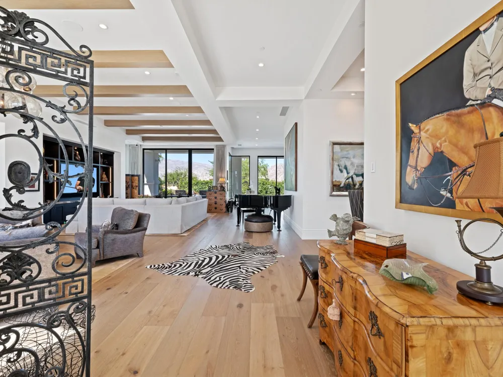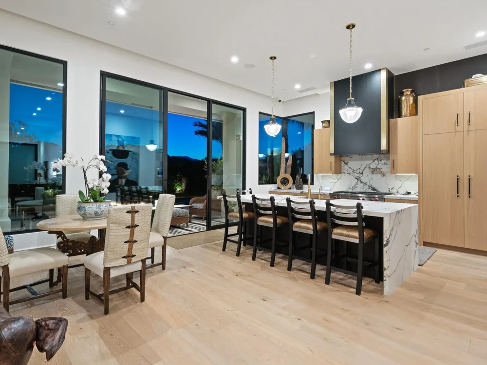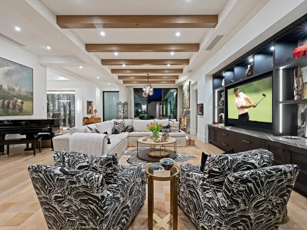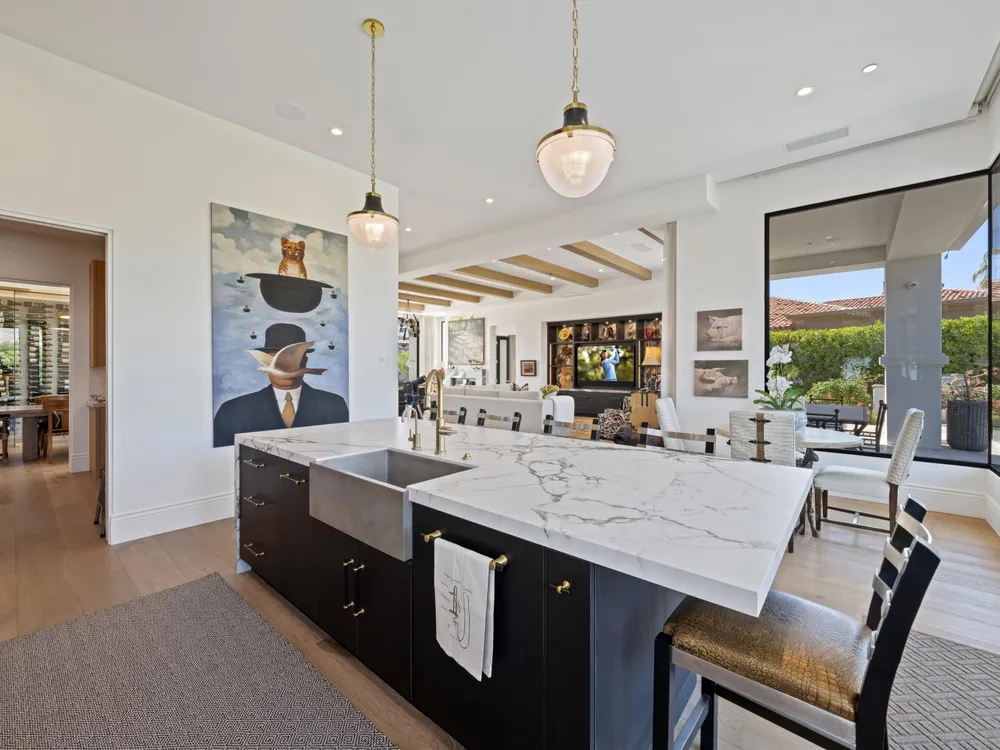 Architectural Masterpiece in PGA West Greg Norman - Rebuilt from the Ground Up and Finished in 2022. Come inside a home so exquisite it belongs in the pages of Architectural Digest. Located on a premier lot in the prestigious Greg Norman enclave of PGA West, this one-of-a-kind estate was completely rebuilt from the foundation up with no expense spared. Every inch of this residence reflects thoughtful design and uncompromising quality—an achievement rarely seen in the desert. From the moment you enter, you're greeted by soaring ceilings, impeccable finishes, and a layout that blends modern sophistication with comfort. The floor-to-ceiling glass wine cellar serves as a dramatic focal point, while expansive Fleetwood doors and windows blur the lines between indoors and out. No detail was overlooked—from the Savant smart home system and Lutron lighting, to solar panels, retractable awnings, outdoor heaters, and more. The estate also features a spacious two-room casita, perfect for guests or extended stays, complete with its private laundry room, offering exceptional comfort and privacy. The chef's kitchen, spa-like baths, and custom cabinetry throughout are all crafted to the highest standards. Whether entertaining or enjoying a quiet evening, every space has been designed to impress and inspire. Outdoors, discover a private oasis framed by breathtaking mountain views. Unwind around the custom firepit, enjoy al fresco dining at the built-in BBQ, or pluck fresh fruit from your Meyer lemon tree. With extreme privacy and thoughtfully curated landscaping, this retreat is a true sanctuary. Offered furnished per inventory, this home is move-in ready for immediate enjoyment. If you are searching for the finest house in PGA West, with a level of craftsmanship and design rarely found, this is it. Inquire for more details and an in depth feature list. PGA West is know around the world for it's 6 top notch golf course and finest amenities including 3 clubhouses, state of the art fitness center, Tennis/Pickle ball courts, bocce, restaurants, & so much more.