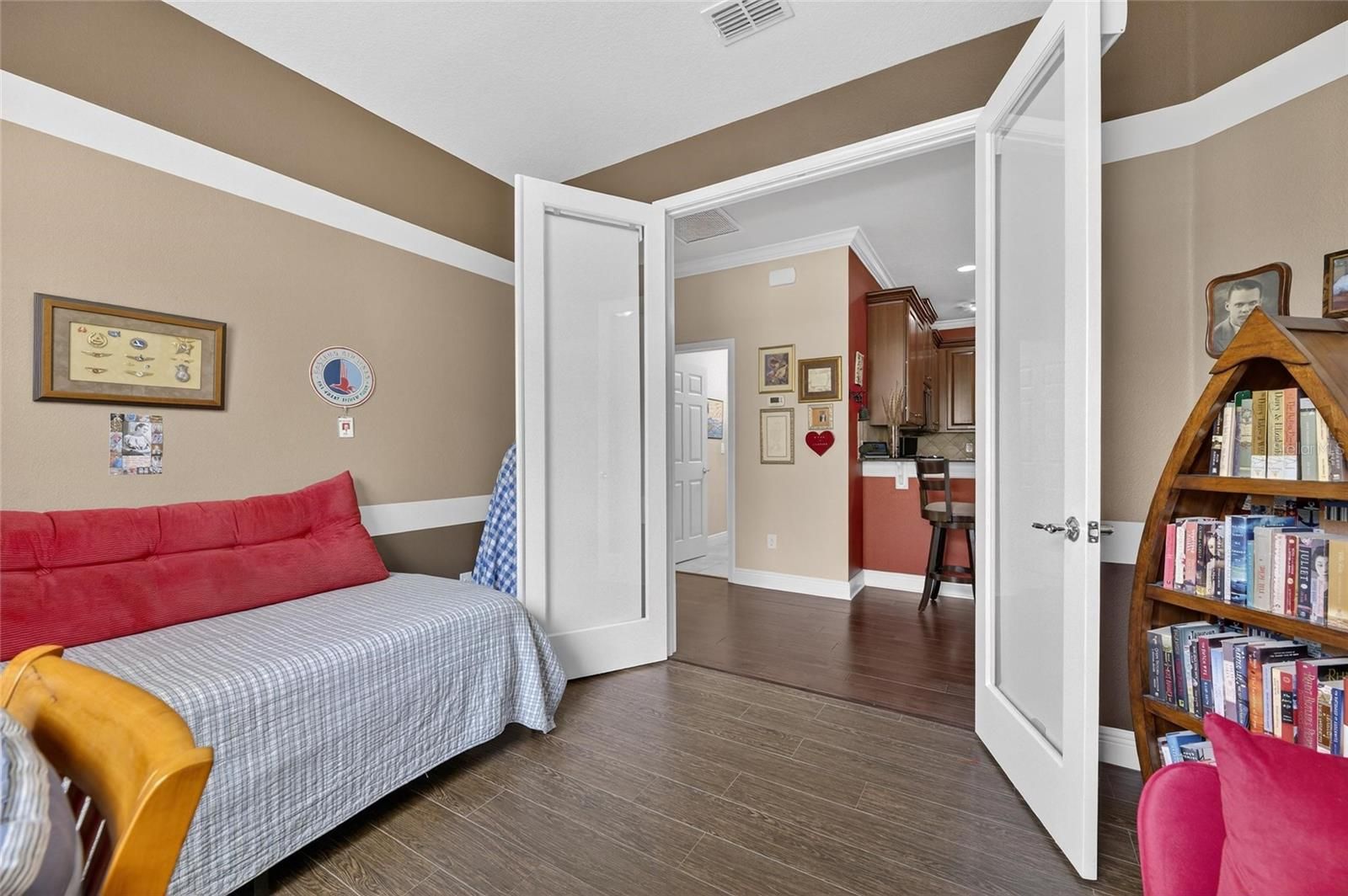 - Crown Molding, Living/Dining Room, Open Floorplan, Main Level Primary, Solid Surface Counters, Solid-Wood Cabinets, Split Bedrooms