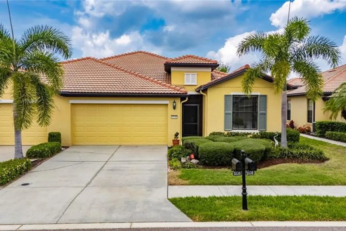 Step into a lifestyle you’ve been waiting for in the highly desirable Del Webb Southshore Falls, where comfort, elegance, and vibrant community living come together in perfect harmony. From the moment you arrive, the screened entry welcomes you with a tranquil WATER VIEW that instantly sets this home apart. Inside, the residence showcases thoughtful upgrades throughout—rich cherry wood flooring, crown molding, and a seamless layout designed for both everyday living and effortless entertaining. With NO CARPETING ANYWHERE, the home offers both style and easy maintenance. The well-appointed kitchen serves as the heart of the home, featuring CUSTOM 42” CHERRY WOOD CABINETRY, GRANITE COUNTERTOPS, STAINLESS STEEL APPLIANCES, and a convenient BREAKFAST BAR for casual dining. It opens beautifully into the spacious living and dining areas, where natural light pours in and sliding glass doors lead to your PRIVATE LANAI—creating the perfect indoor-outdoor flow. The OWNER’S SUITE is a peaceful retreat, complete with a customized WALK-IN CLOSET and a spacious EN-SUITE BATH with DUAL SINKS and a modern glass-enclosed WALK-IN SHOWER. A separate GUEST SUITE provides comfort and privacy for visitors, while the versatile DEN WITH GLASS DOORS offers the ideal space for a home office, hobby room, or quiet reading area. What truly elevates this home is the SERENE WATERFRONT SETTING—best enjoyed from your PRIVATE LANAI, now featuring a HOT TUB, creating the perfect space to relax, unwind, and enjoy Florida living year-round, whether you're sipping morning coffee or hosting friends in the sunshine. Beyond the home itself, you’re investing in a RESORT-STYLE LIFESTYLE. Residents enjoy access to a stunning clubhouse, fitness center, pools, sports courts, and a full calendar of social events and clubs designed to keep you active, connected, and inspired every day. With major updates already completed—including a NEWER A/C (2020) and WATER HEATER (2023)—this home offers peace of mind along with exceptional value. THIS IS MORE THAN JUST A HOME—IT’S A LIFESTYLE UPGRADE. Properties with this level of care, scenic views, and access to premier amenities are rare. Experience it in person and see why this one stands out from the rest.