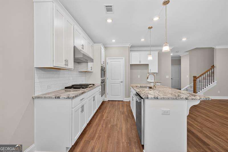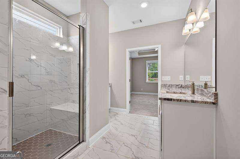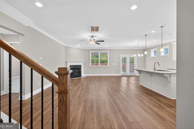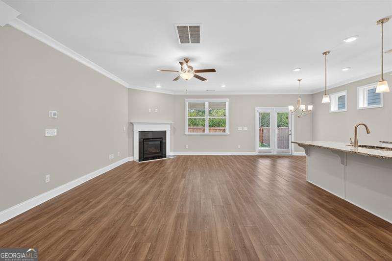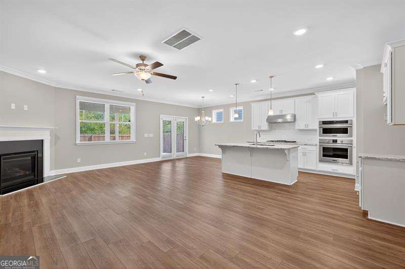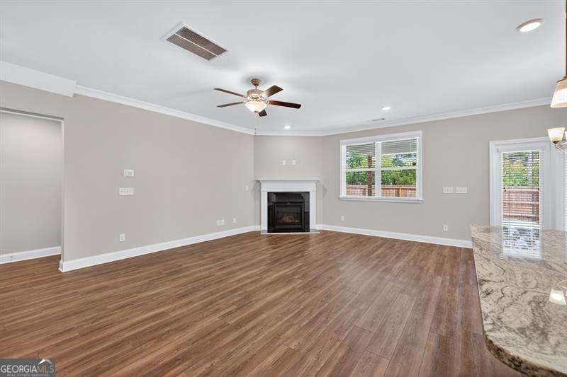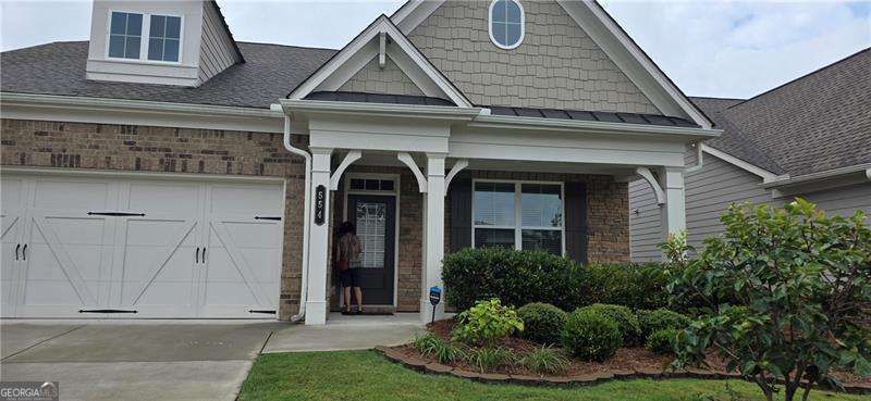 Better than New- Ranch home, Brick and Stacked Stone Front plus a Brick Apron that surrounds the entire home, Concrete Siding, Stepless entry, Completely level lot, Covered Front and Rear Porches, Custom Landscaping includes Fruit Trees in (Front yard Persimmon & Back yard has Hosui Pear, Grapes, Apple, and Peach Trees) also 9 Hydrangea Flowering Bushes along the side and rear yard to complement the mature builder landscape, 6 foot Wood Fenced yard with Wide Gate access for complete Privacy in Backyard. The interior features are Open Foyer entrance, Luxury LVP Hardwood style flooring entire main level, Bright Open concept with Large Level 3 Granite Island Tiled Backsplash in Brick pattern, Can Lights and Pendant Lighting, Tons of Cabinet space, Elite Stainless Steel Appliance package with 5 Burner Gas Cooktop Wall Oven and Microwave and Stainless Steel Tub Dishwasher , Large Tiled Laundry/Mudroom on main level, 2 bedroom plus a Flex Room/3rd bedroom on main level with Double French Doors, Iron blasters on Hardwood Handrail, Corner Fireplace, Large Walk in Pantry, Generous sized Master Suite with Trey Ceiling and Fan, Fully Tiled Bath Granite tops and Oversized Shower w/shaving seat ledge. Upstairs includes 1 bedroom and 1 bath, plus Giant Open Loft area for an In law Suite and Large Entertaining area/Movie Room, also a large Un-finished Attic over the garage area for storage or Finish space later. The HOA fee includes Lawn Care, and Exterior house painting every 5 years. Great Low maintenance 55+ Community, Aspen Grove community is close to any daily conveniences, including Publix, Kroger, and Walgreens for Grocery & Pharmacy, Also close to Eastside Medical Center and Emory Healthcare, as well as many restaurants, breweries and shops. Walking, Biking and Fishing at Tribble Mill Park, Bay Creek Park, Alexander Park, and Vines Park. Golfers can go to Country Club of Gwinnett, Summit Chase Country Club, and Cedar Lake Golf Club. Super clean home and easy living.