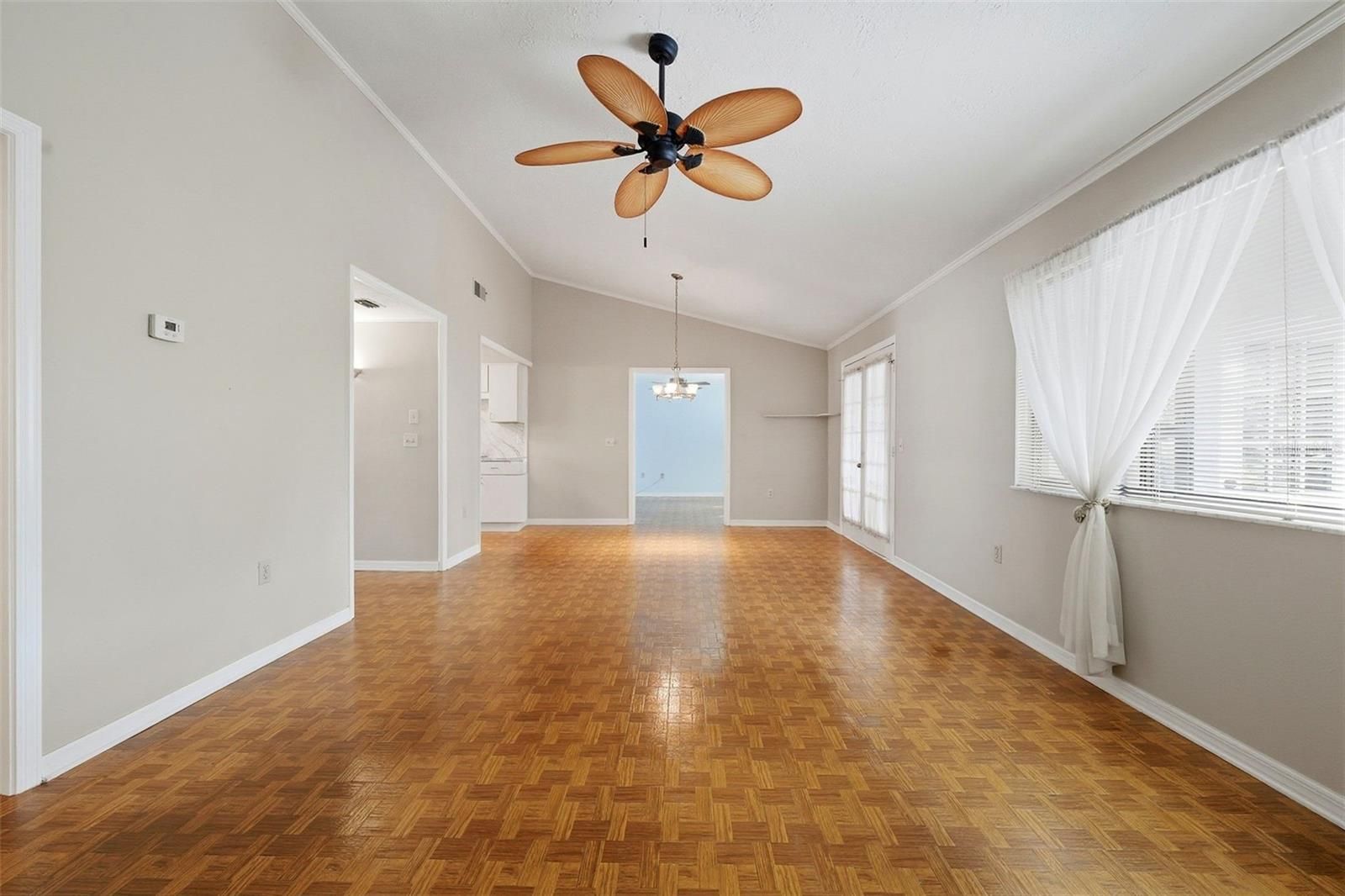 - Ceiling Fan(s), Crown Molding, Eat-in Kitchen, Living/Dining Room, Main Level Primary, Tray Ceiling(s), Walk-In Closet(s), Window Treatments