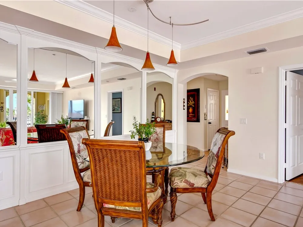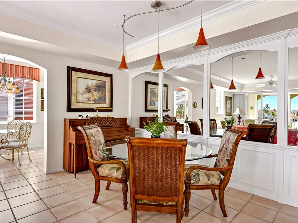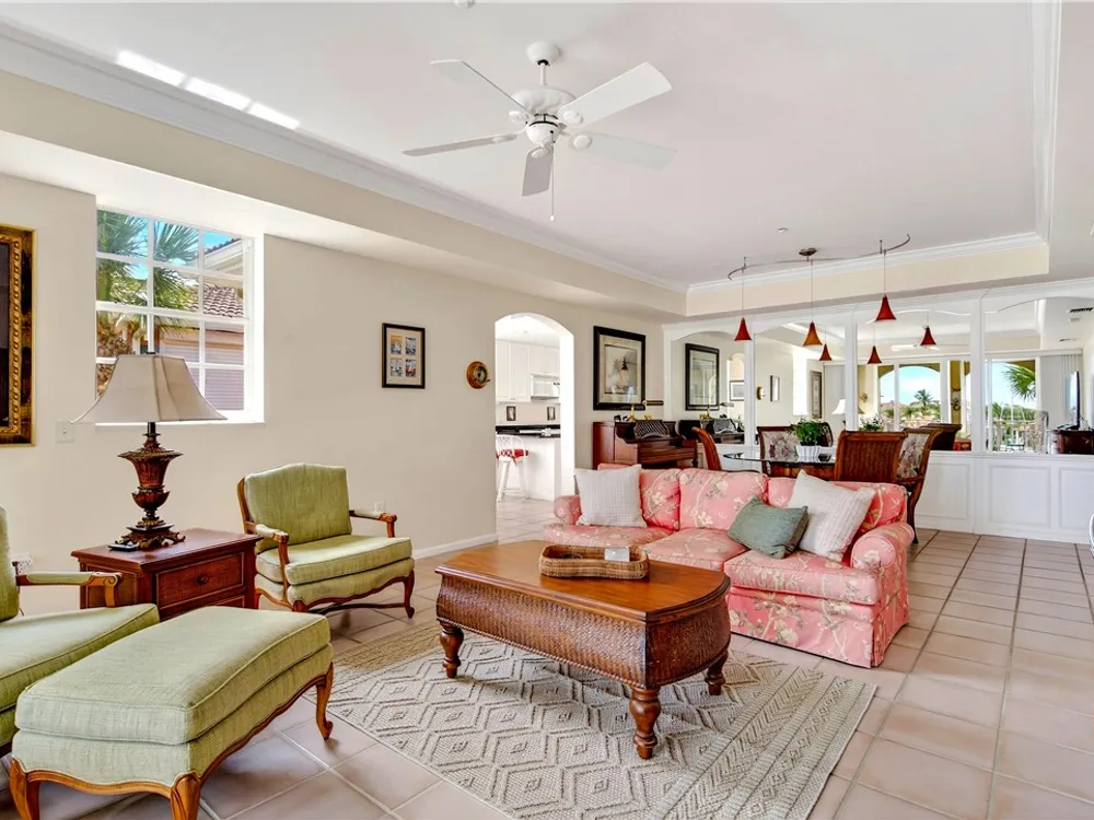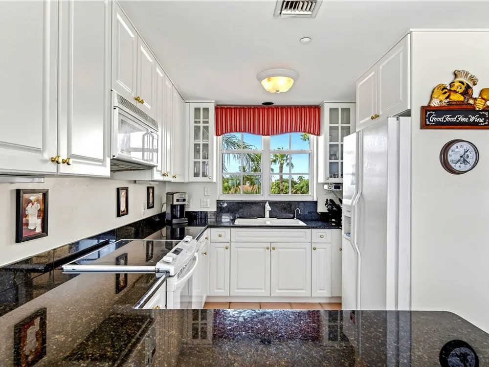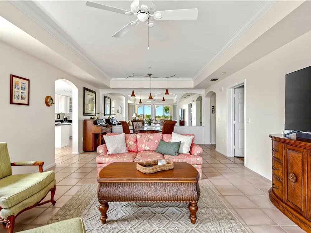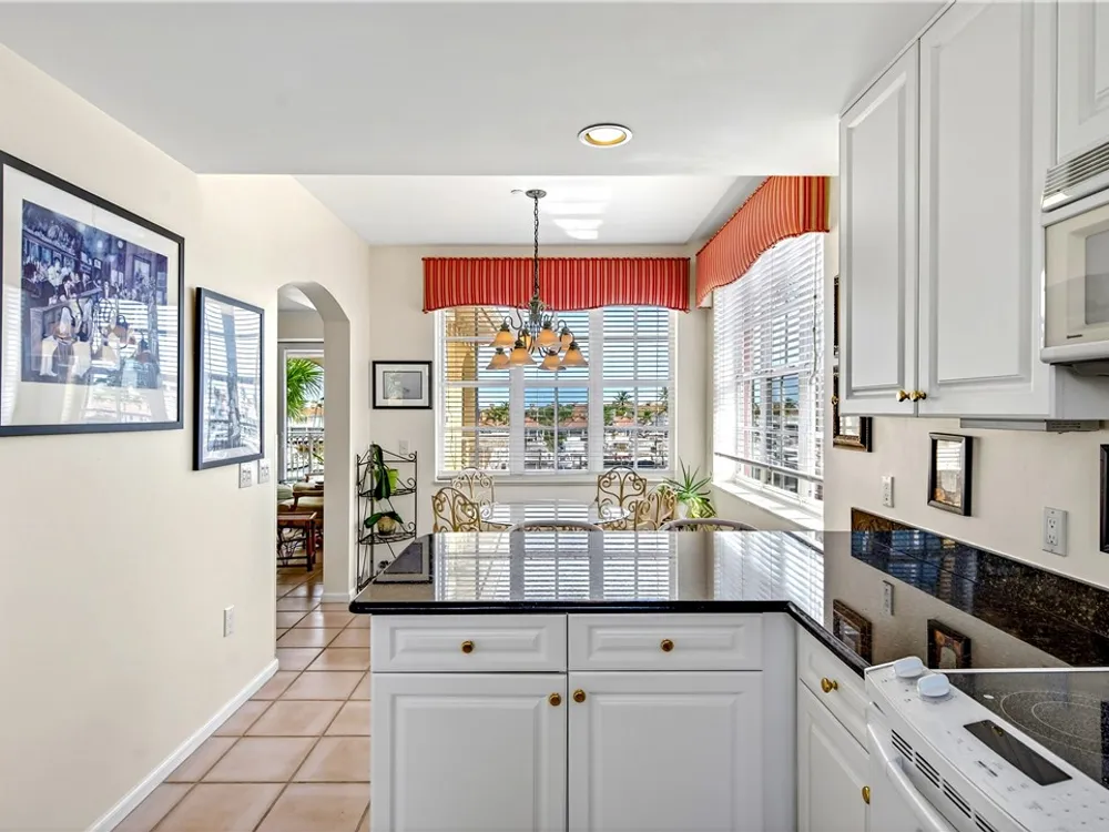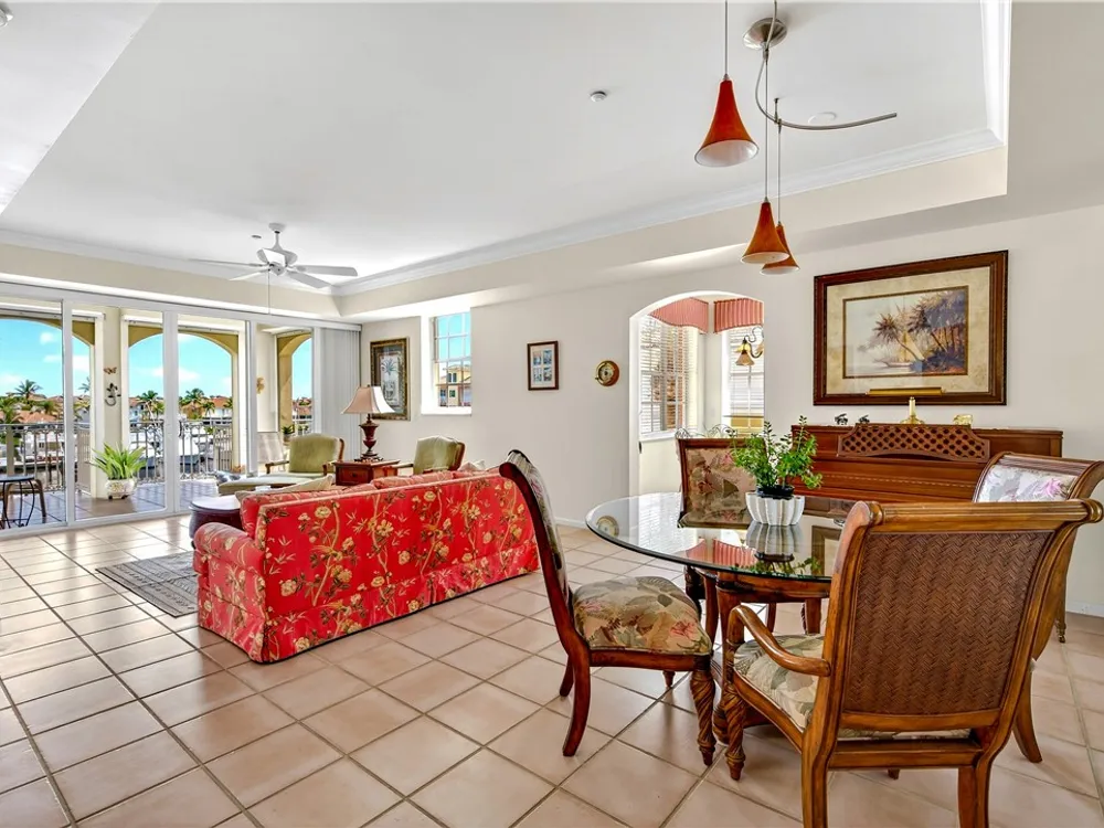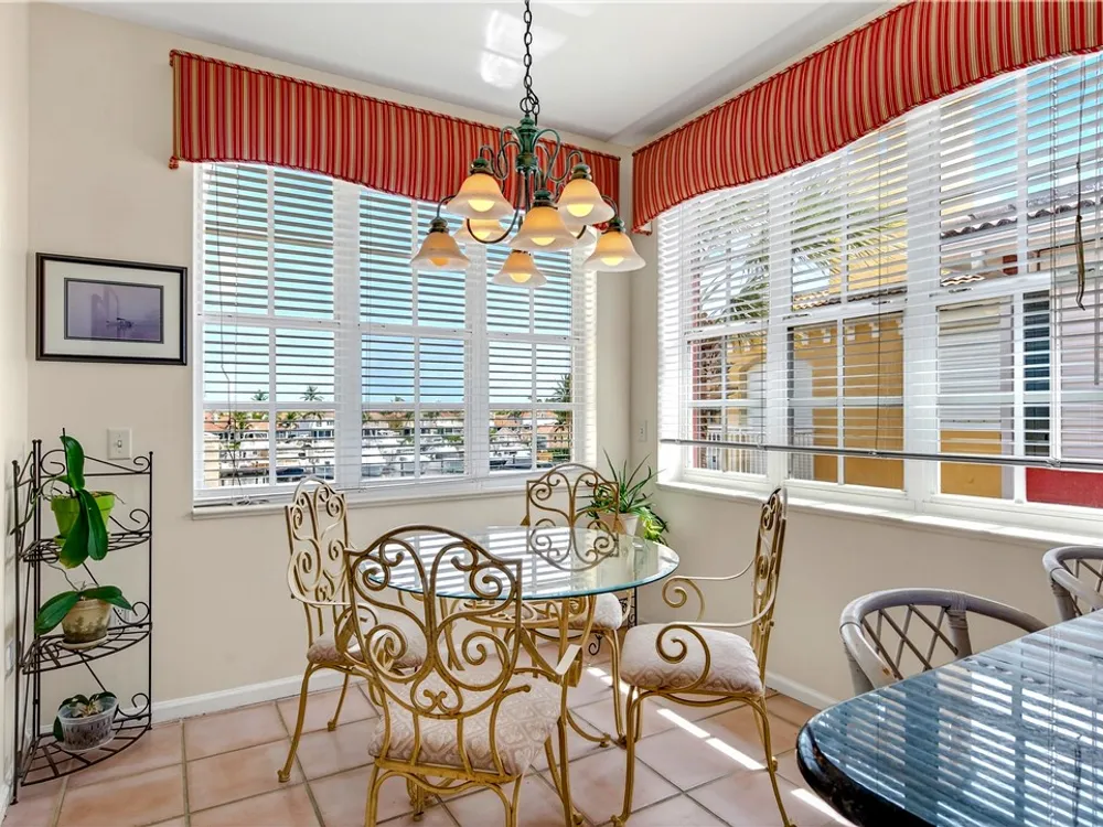 Rarely available three-bedroom penthouse with stunning views of the Marina to the east and golf to the west. Upgrades include tankless hot water system, with whole house water purification, impact glass, shutters and granite kitchen countertops. The condo was re-piped in 2023 and exterior painted in 2024. Steps to elevator and community pool. Discounted Grand Harbor Club membership available.